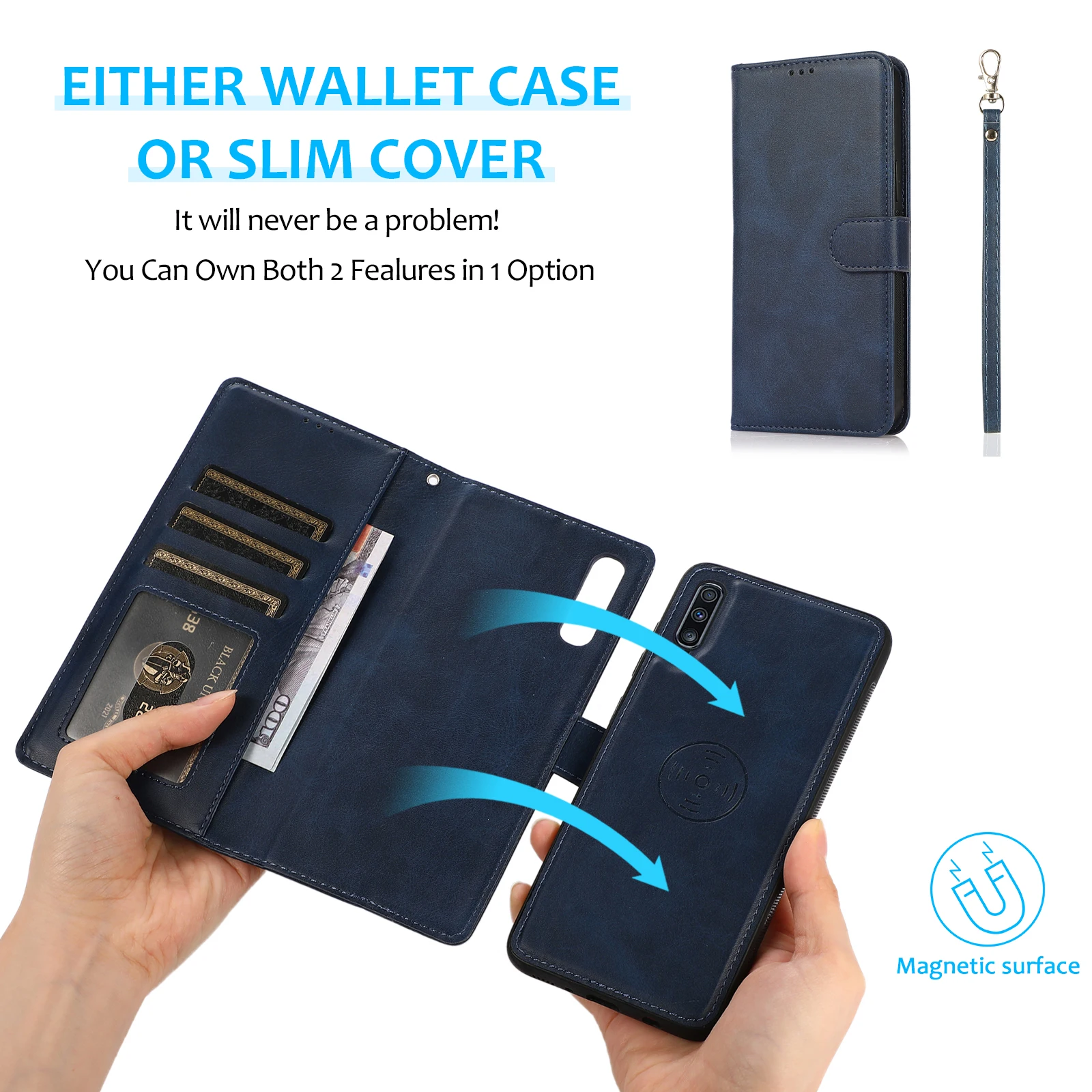 Comprar Funda magnética de cuero con ranura para tarjetas desmontable para Samsung Galaxy S24 Ultra, A15, A54, A14, S23, S22, S21 FE, A52