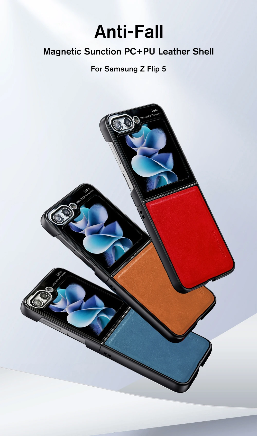 Comprar Funda magnética de cuero para Samsung Galaxy Z Flip5 5G, TPU suave, a prueba de golpes, Coque Samsung Samung Flip.5 Flip 5 Z5 ZFlip5 5G
