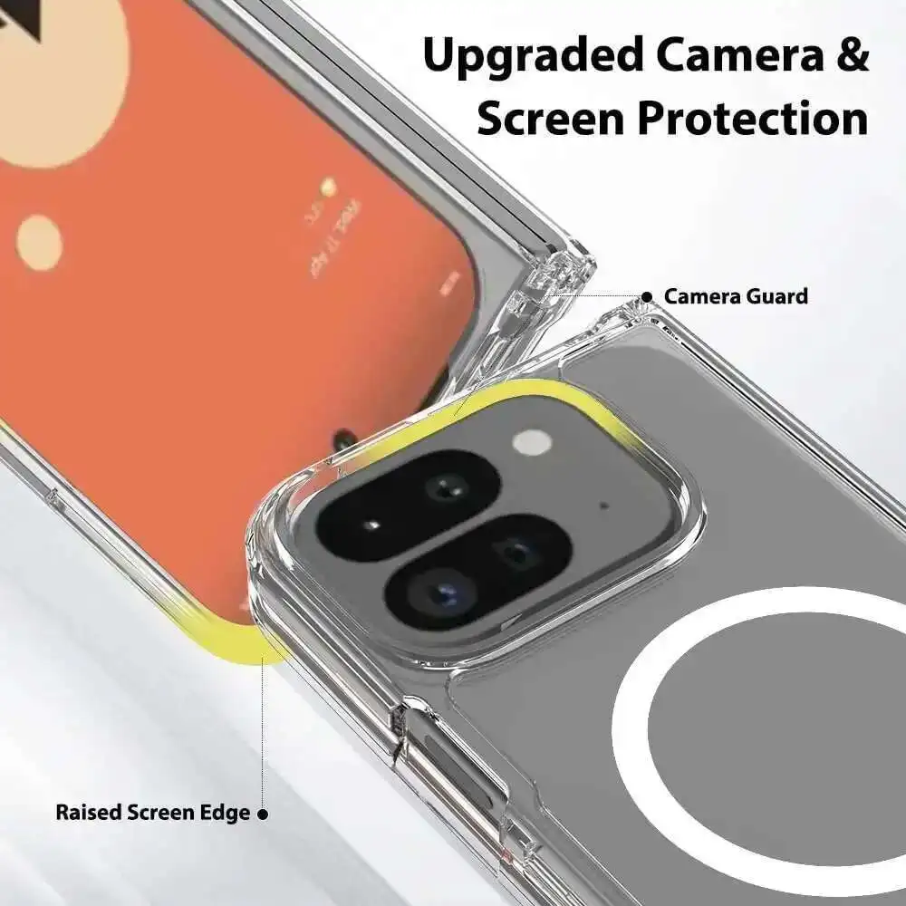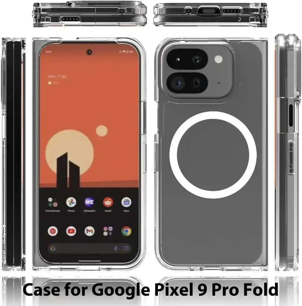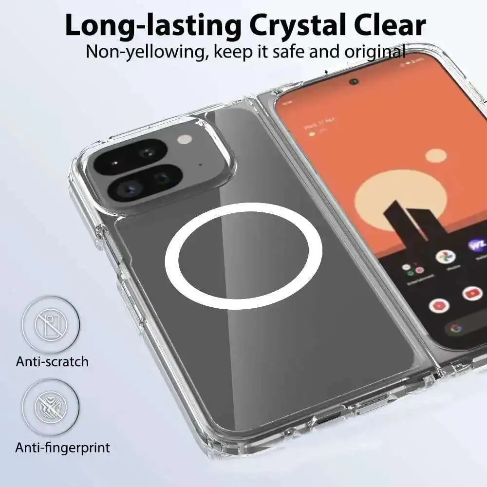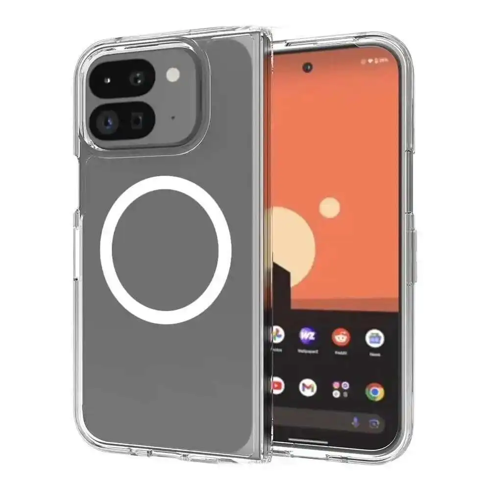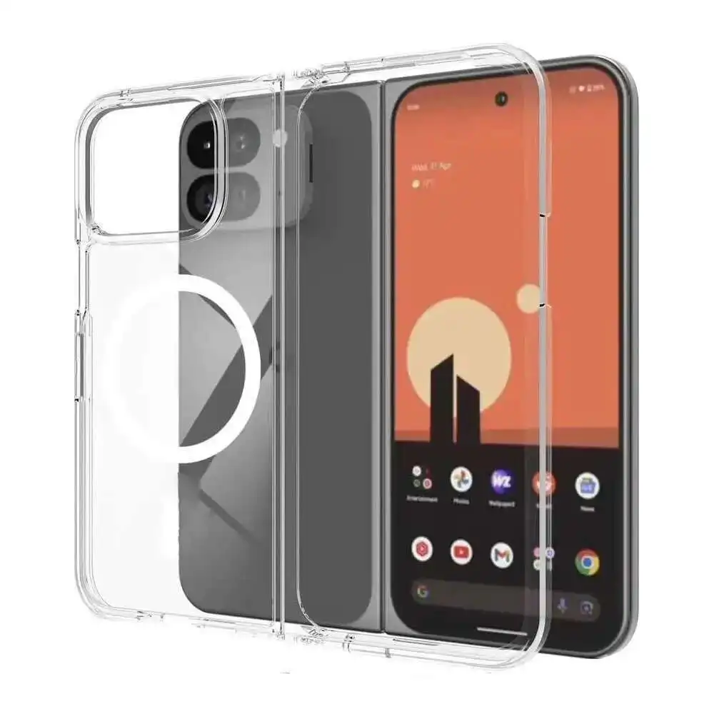 Funda transparente para teléfono Magsafe con carga inalámbrica magnética, funda trasera de plástico duro para Google Pixel 9 Pro Fold