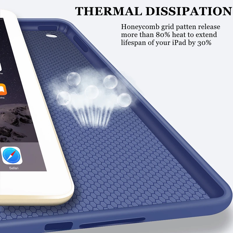 Soft TPU back shell protect for your iPad from shocks, drops and impacts. Soft microfiber lining with PU leather exterior, prevent your tablet from scratched.