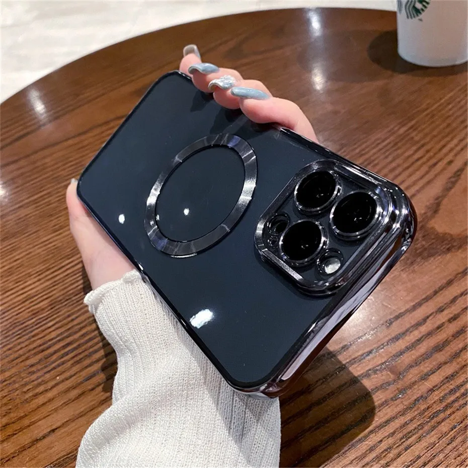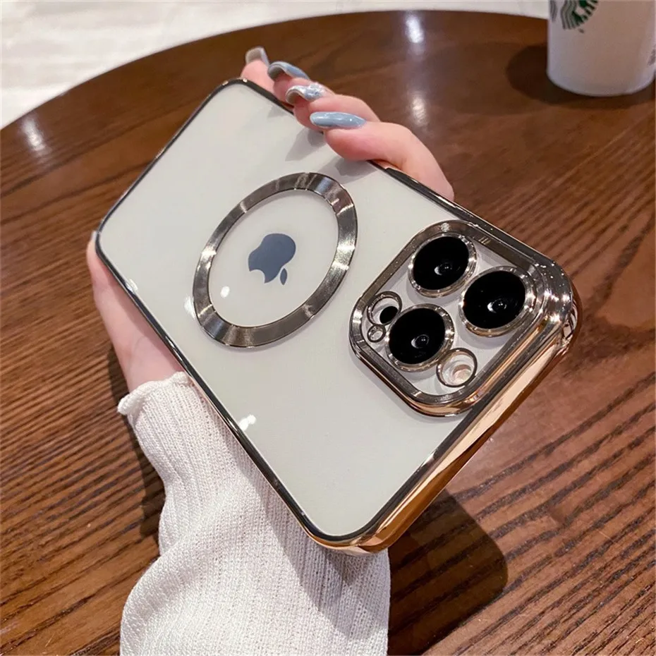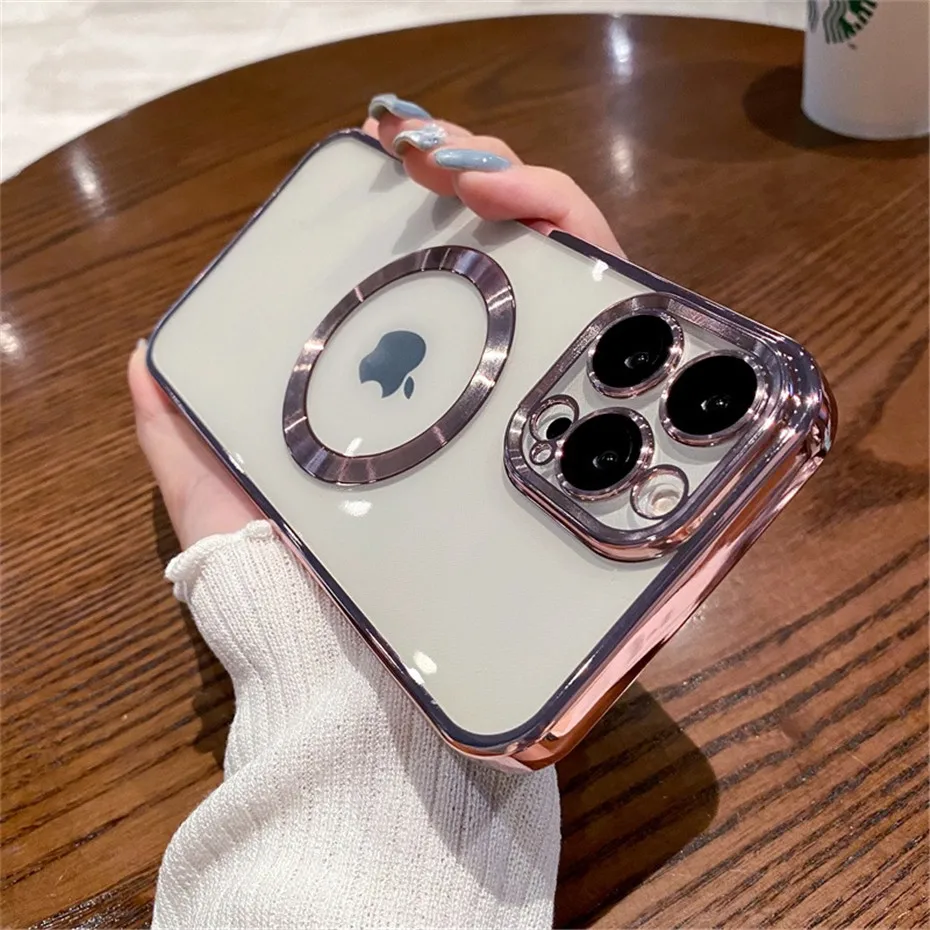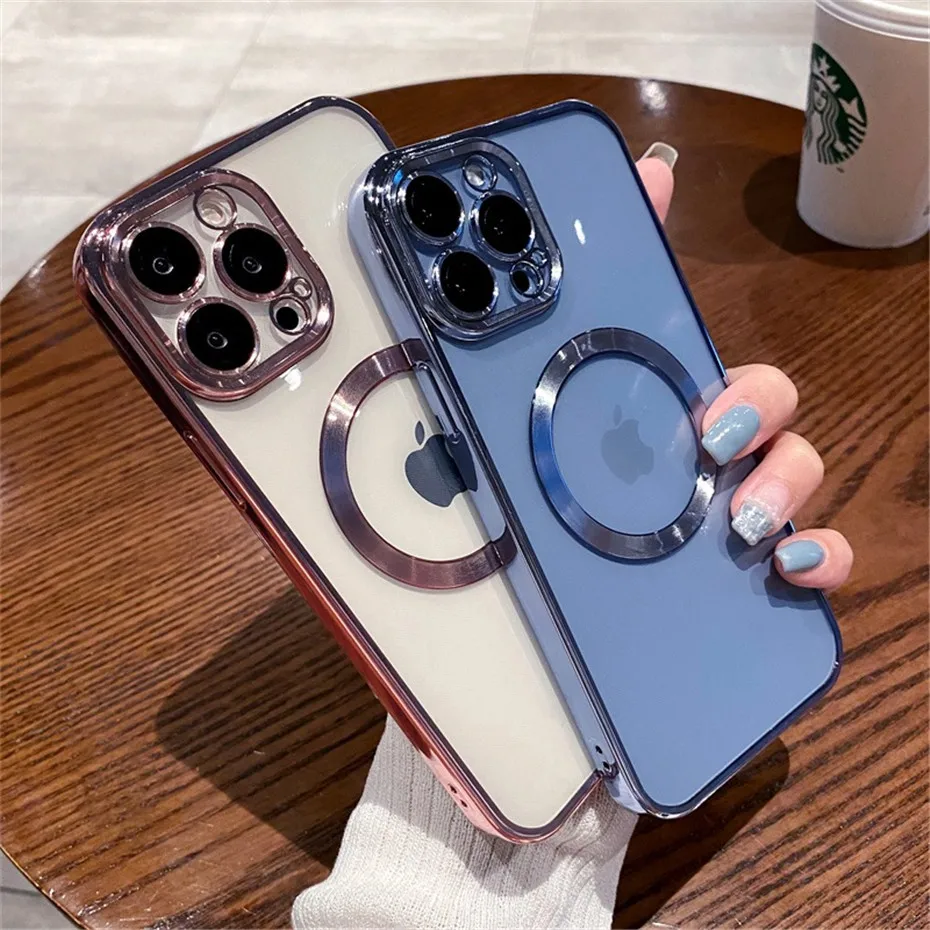 Chapado de lujo magnético para Magsafe funda de carga inalámbrica para iPhone 13 12 11 Pro Max XR X XS 7 8 Plus funda de silicona suave transparente