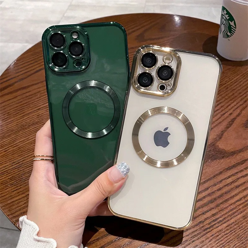 Chapado de lujo magnético para Magsafe funda de carga inalámbrica para iPhone 13 12 11 Pro Max XR X XS 7 8 Plus funda de silicona suave transparente