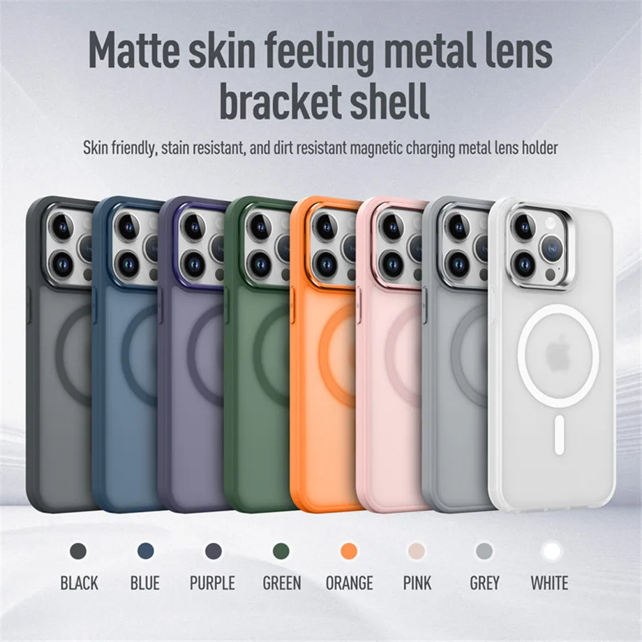 Funda de teléfono con soporte de anillo de Metal con lente magnética de lujo para iPhone 15 14 13 12 11 Pro Max translúcido para funda de carga inalámbrica Magsafe