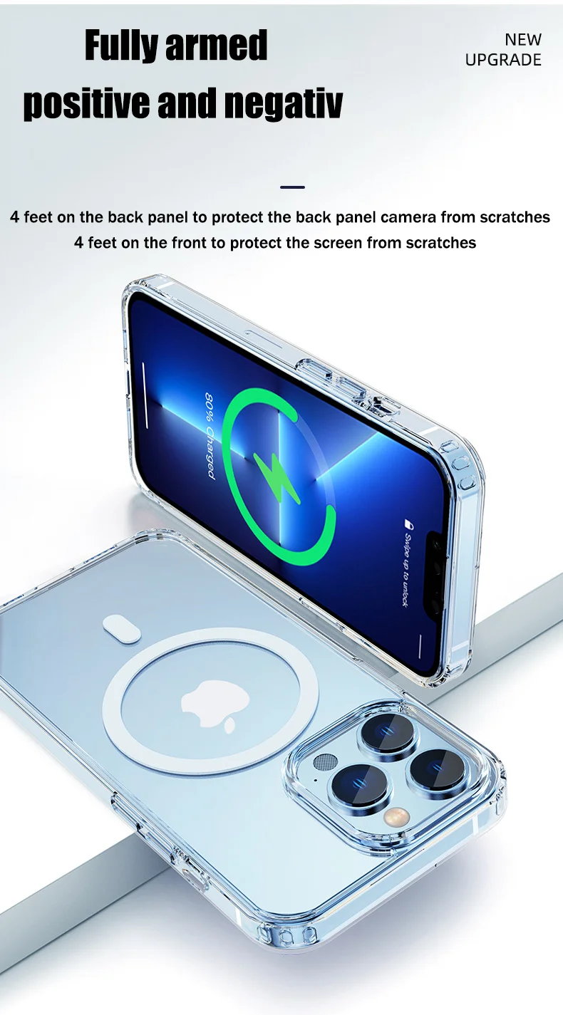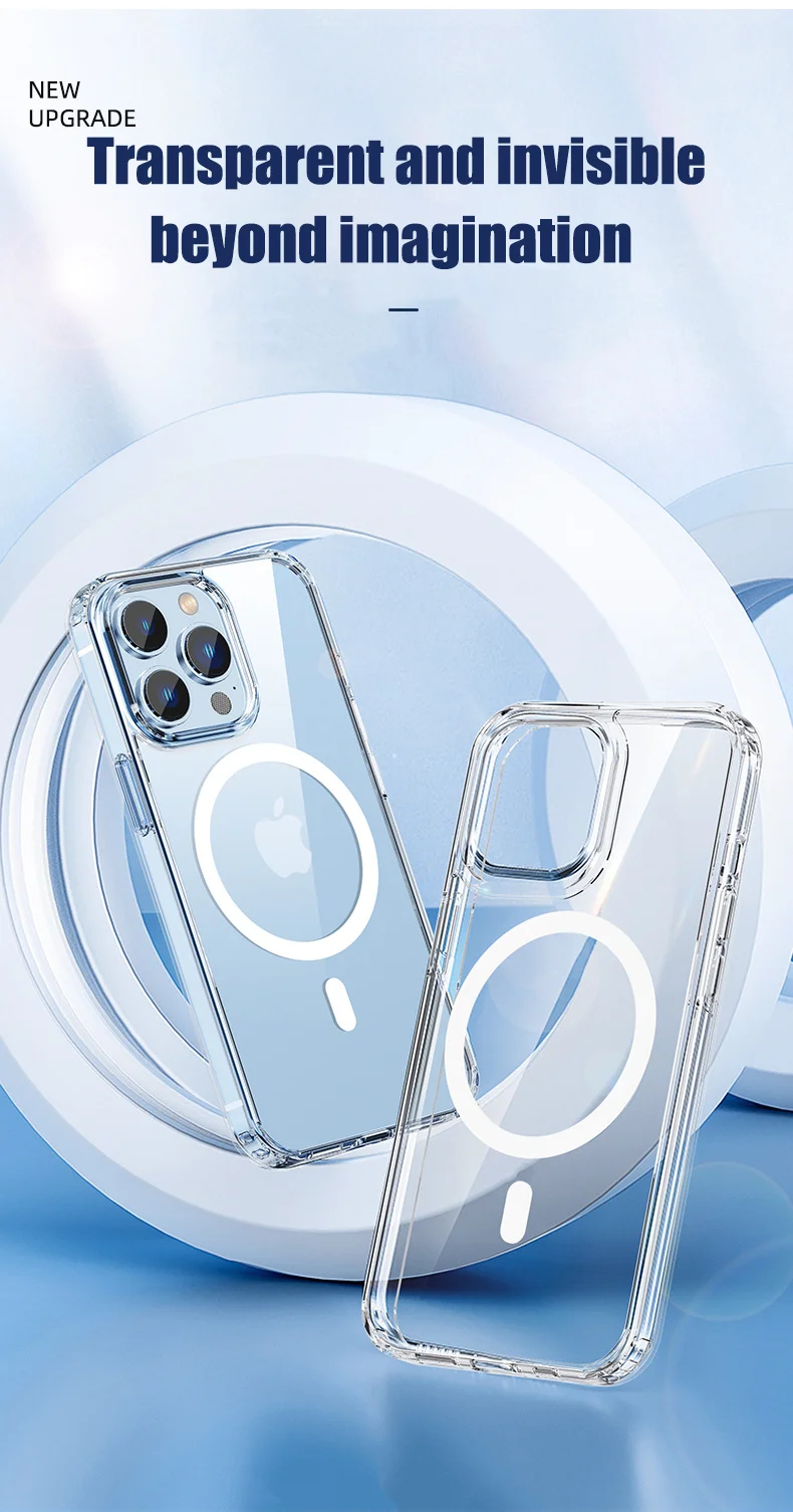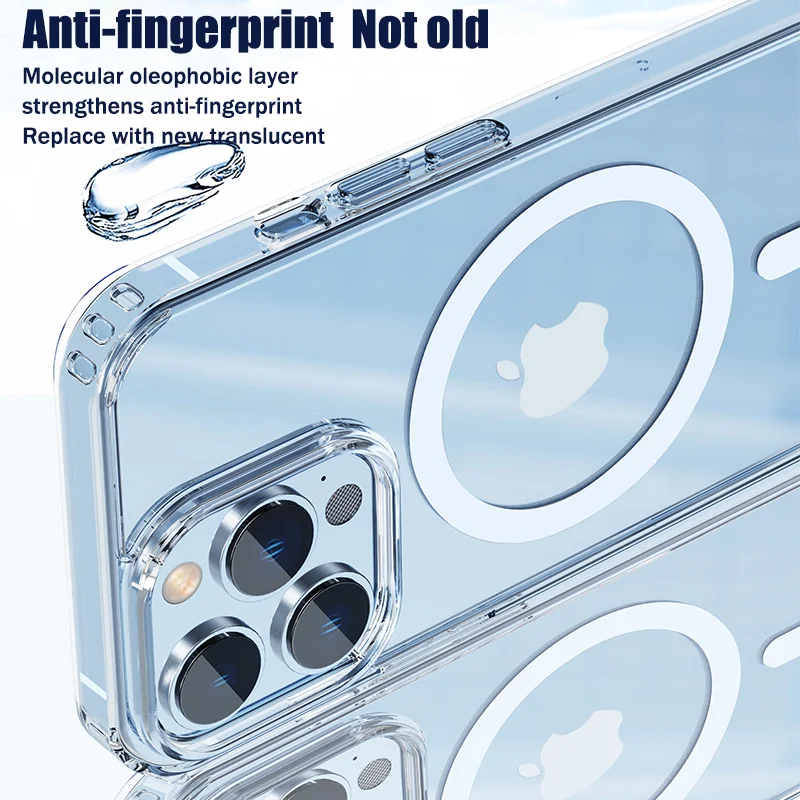 Funda magnética HD Clear Crystal Magsafe para iPhone 13 12 11 Pro Mini Max X XS XR 7 8 Plus SE, funda acrílica dura de carga inalámbrica