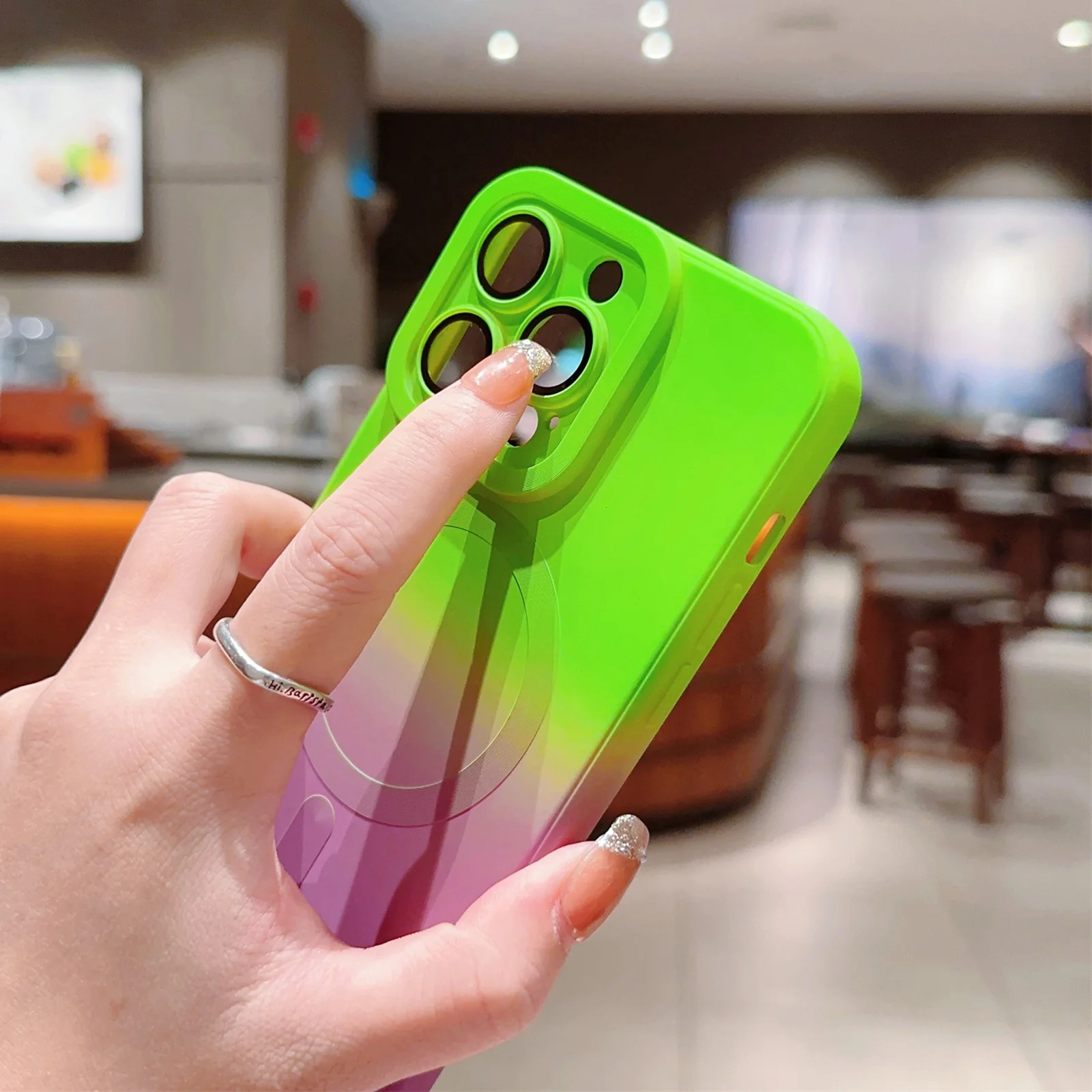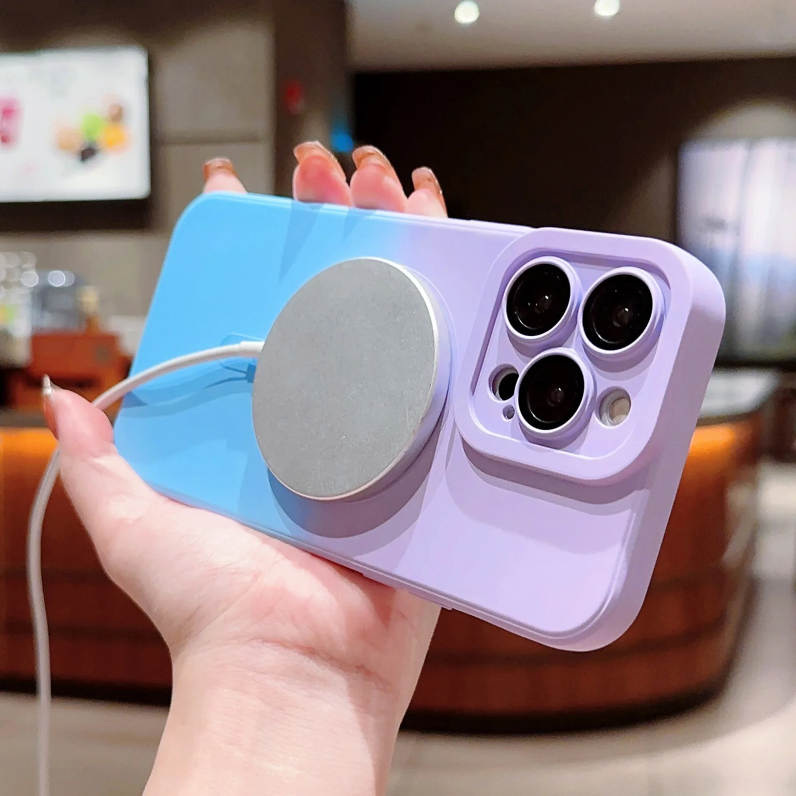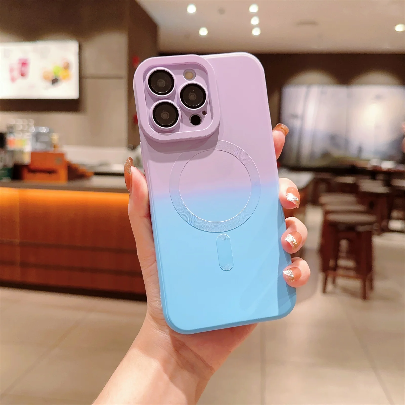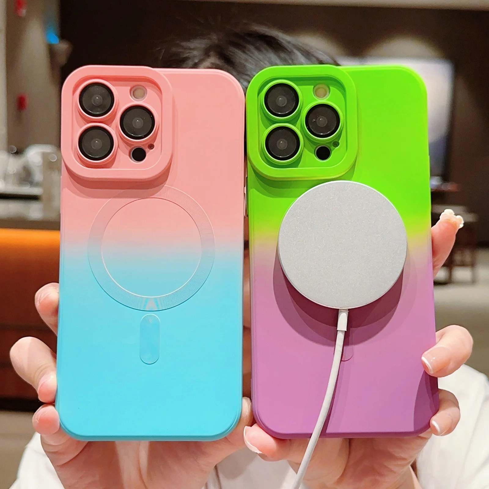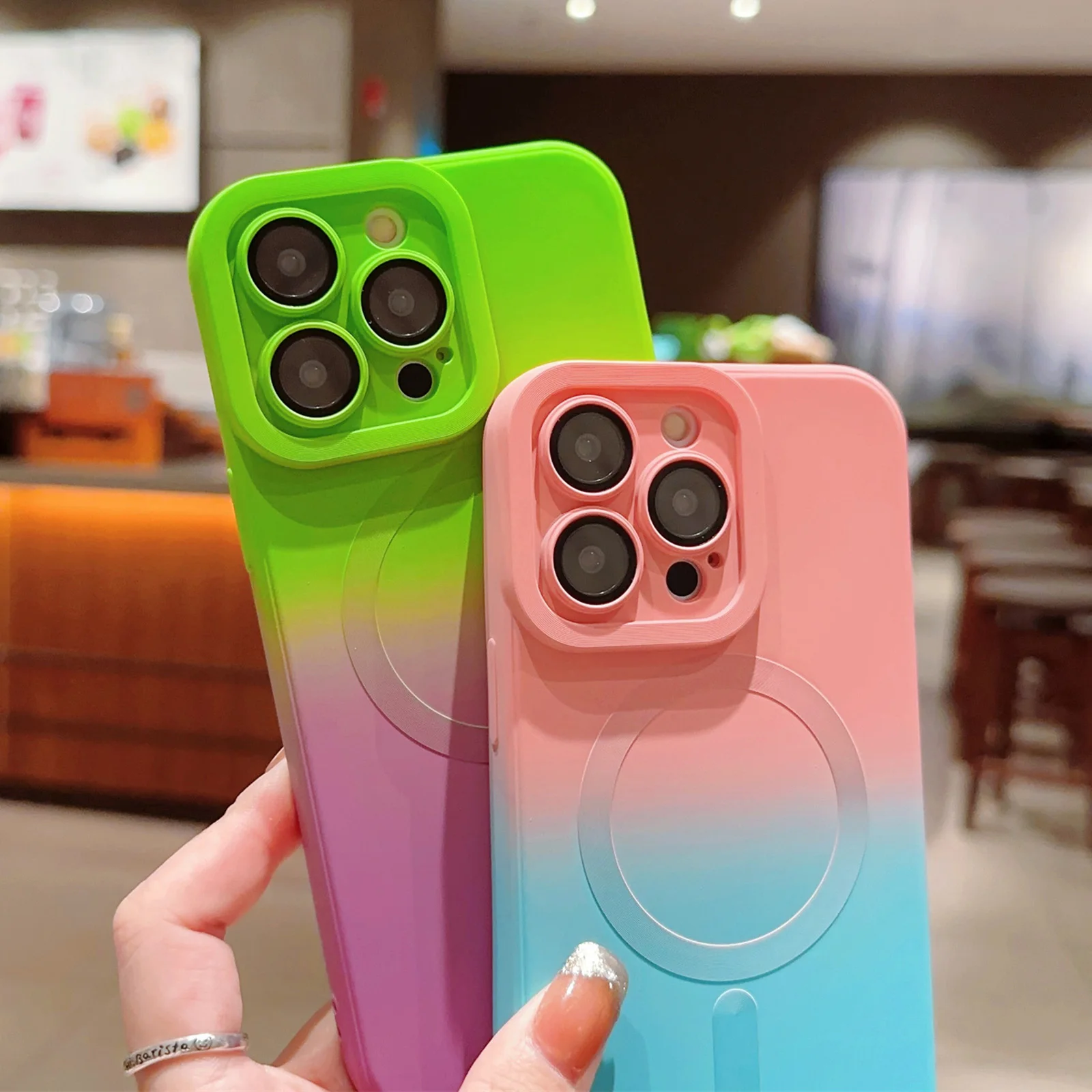 Comprar Funda magnética Magsafe para iPhone 15 Pro, 11, 12, 13, 14 Pro Max, 15 Plus, protector de cámara de Color degradado, silicona suave