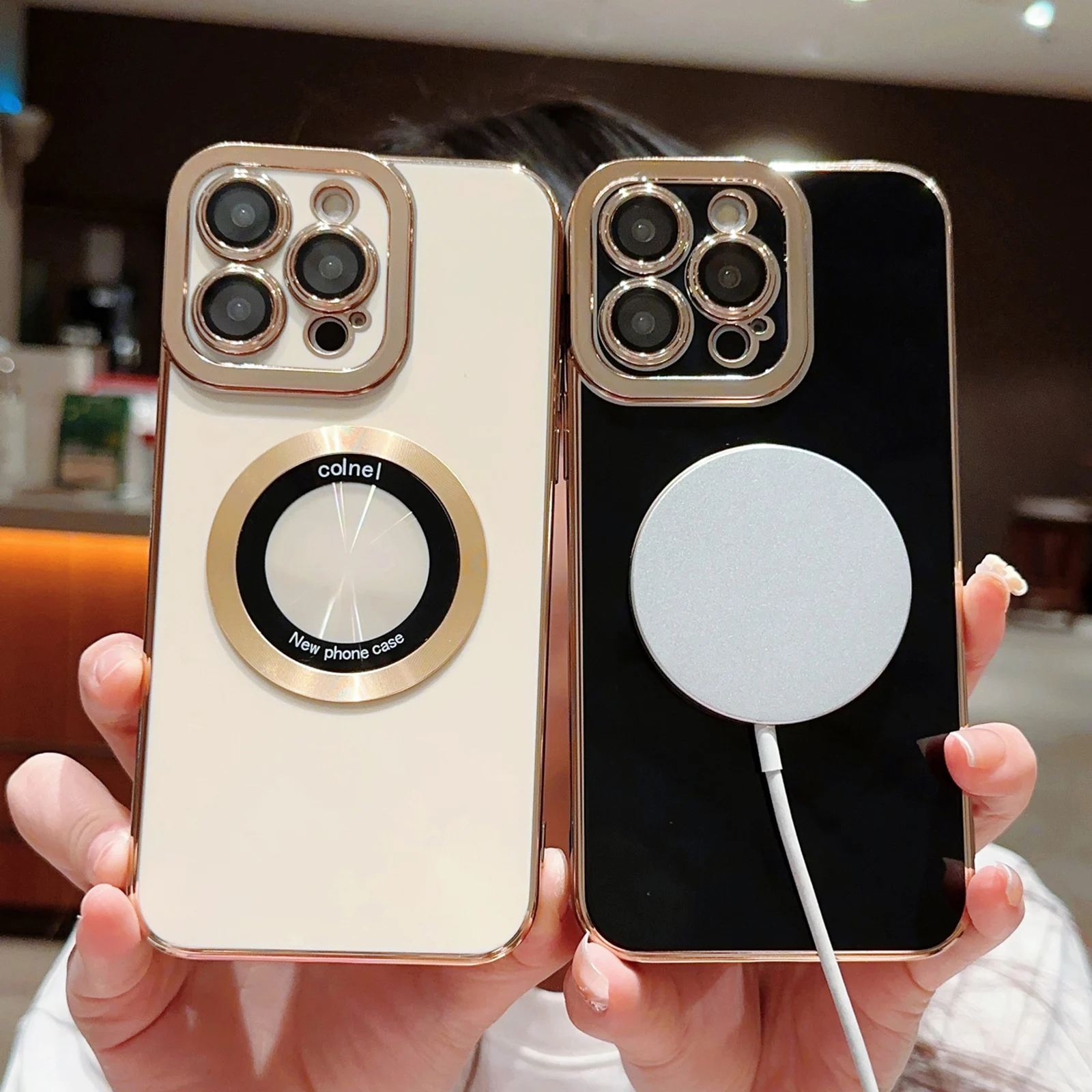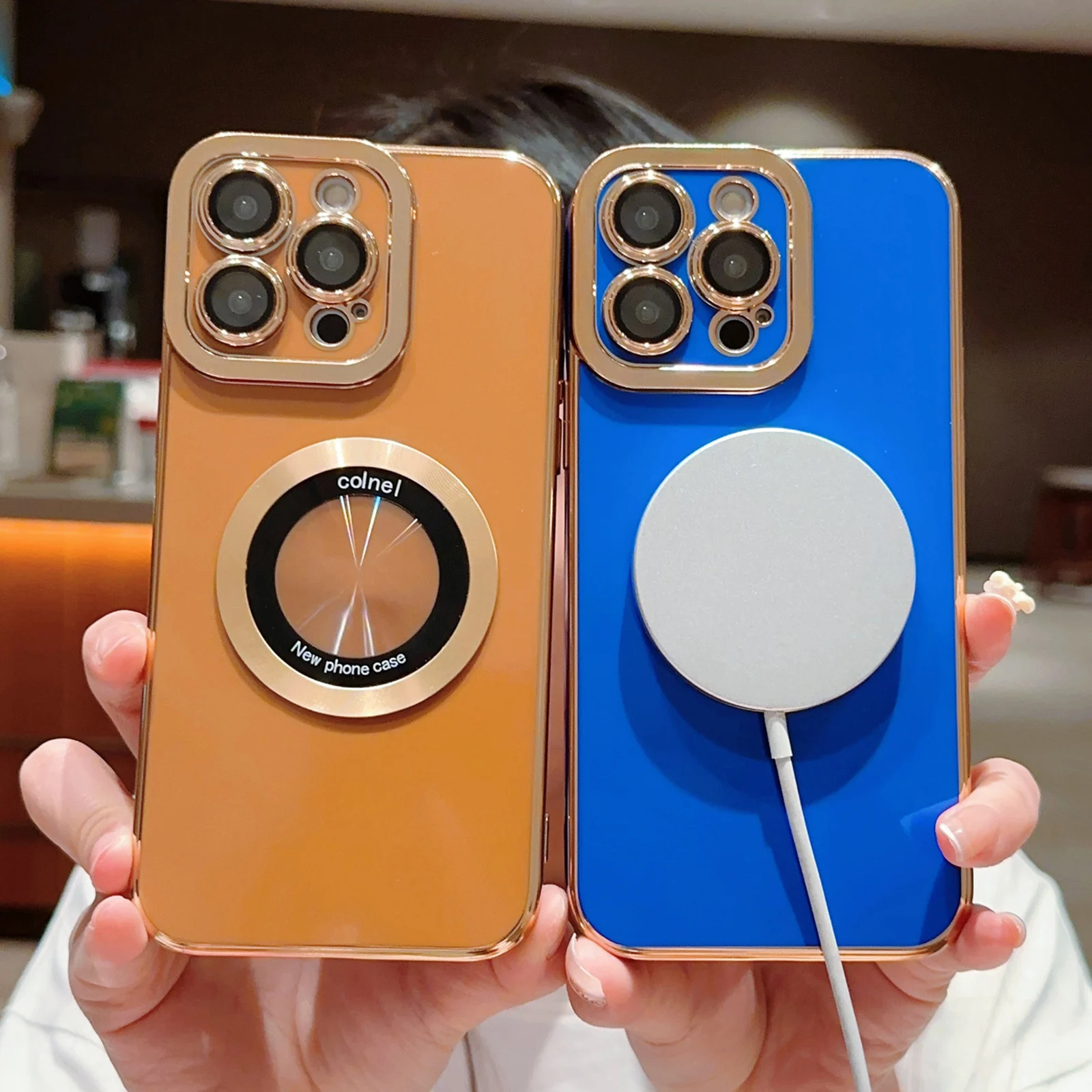 Funda magnética Magsafe de lujo para iPhone 15 Pro Max 11 12 13 14 Pro, protector de cámara, lupa, parachoques de silicona suave a prueba de golpes