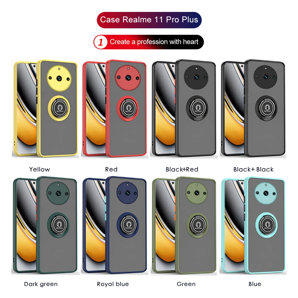 Para 11 Pro + funda soporte magnético para coche cubierta mate a prueba de golpes Realme11 Pro Plus Realme11Pro soporte de anillo de protección de cámara Coque