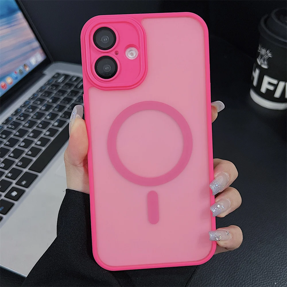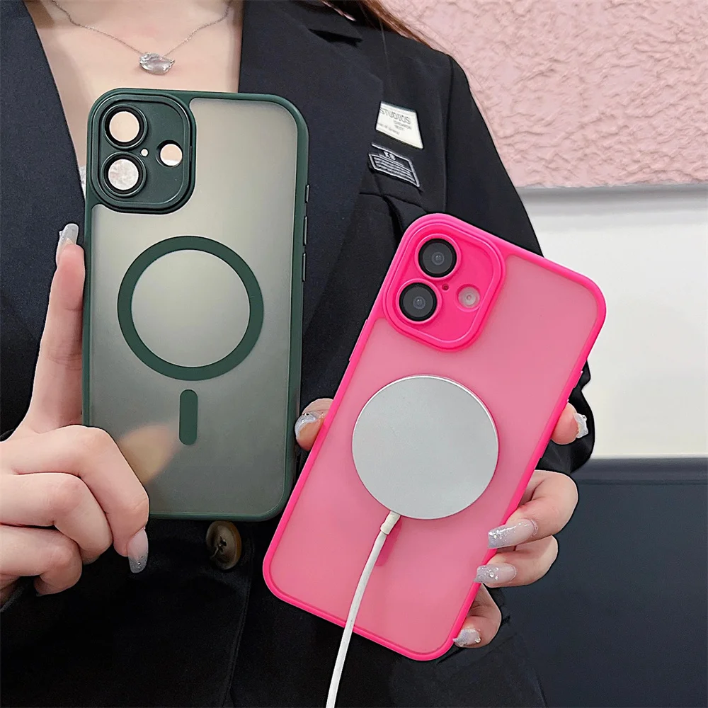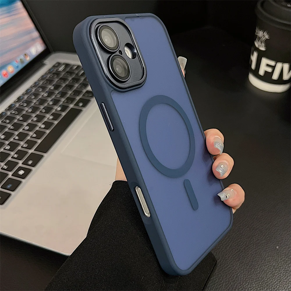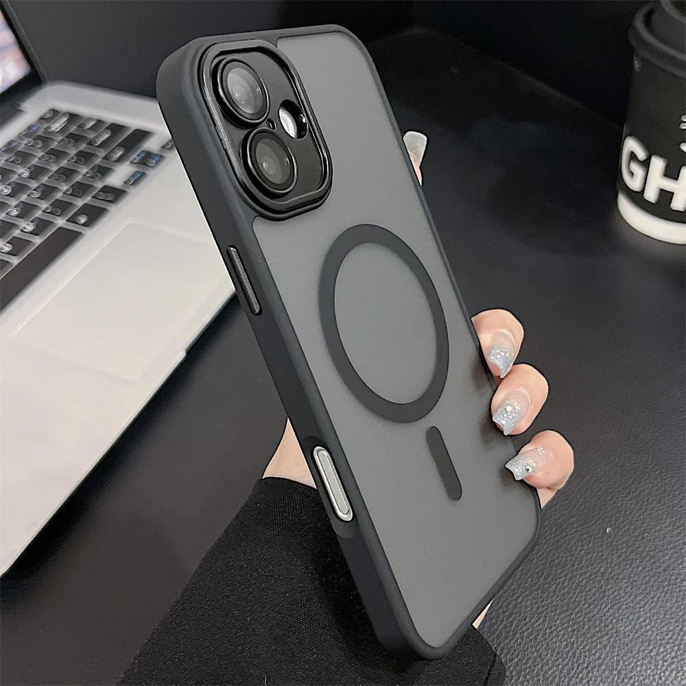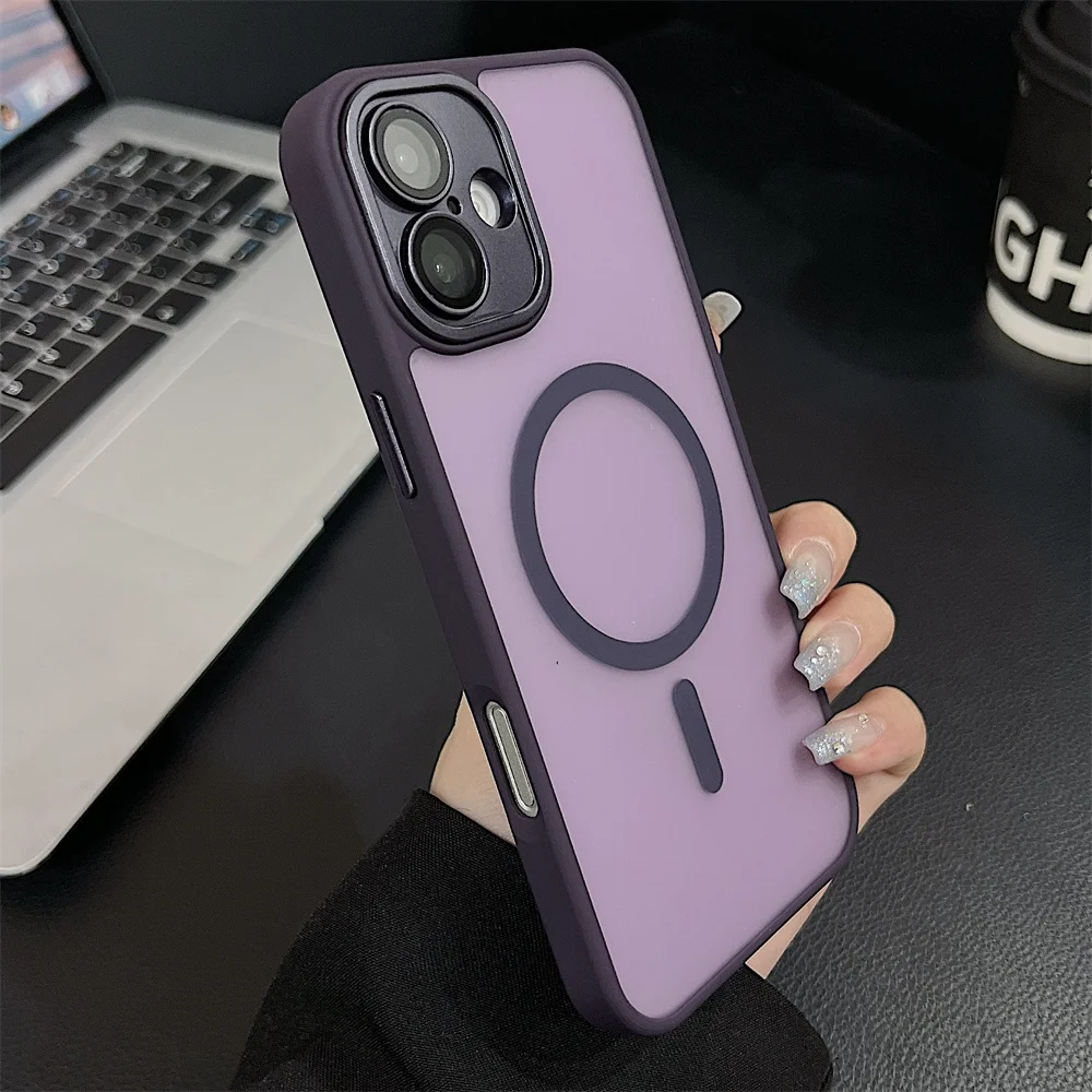 Comprar Funda magnética mate de lujo para iPhone 16 Pro Max 16 Plus Coque para iPhone 15 14 13 12 Pro Max para funda de cargador inalámbrico Magsafe