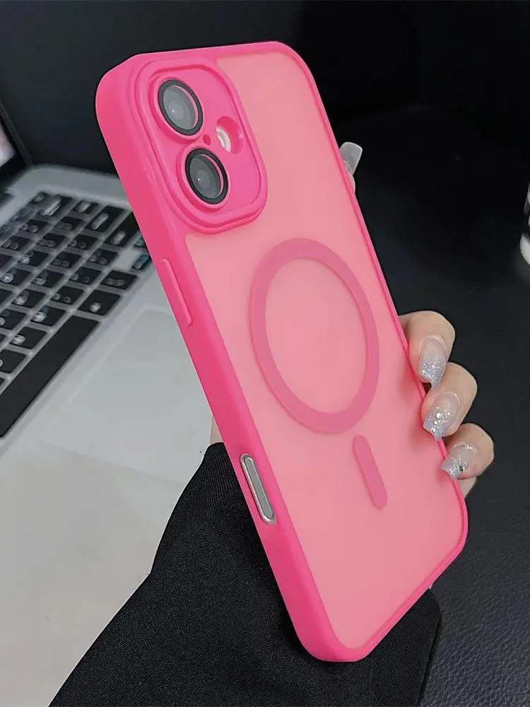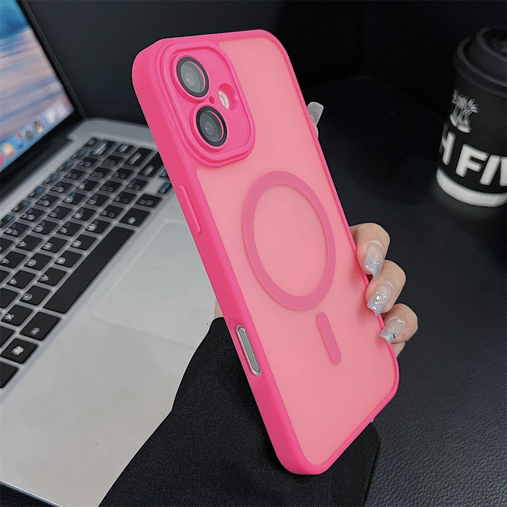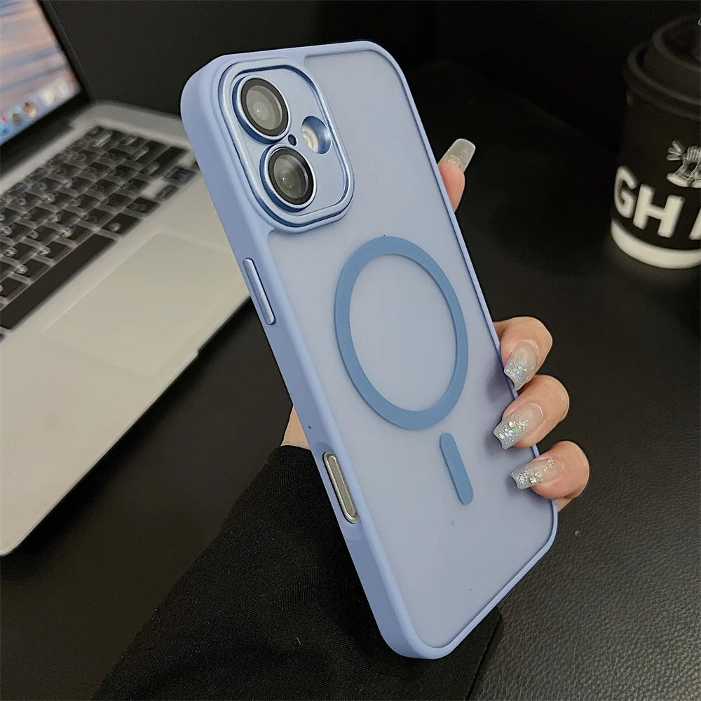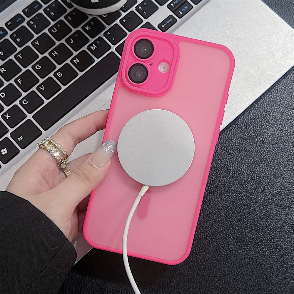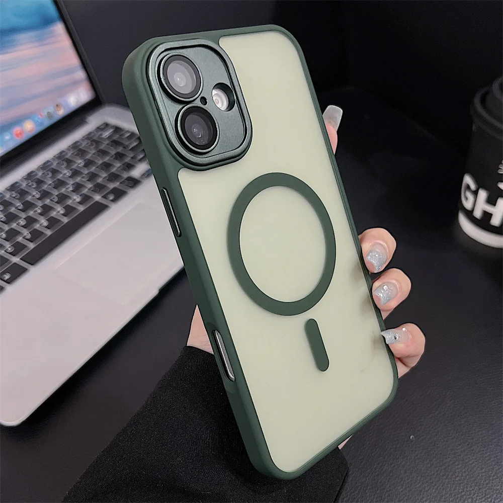 Comprar Funda magnética mate de lujo para iPhone 16 Pro Max 16 Plus Coque para iPhone 15 14 13 12 Pro Max para funda de cargador inalámbrico Magsafe