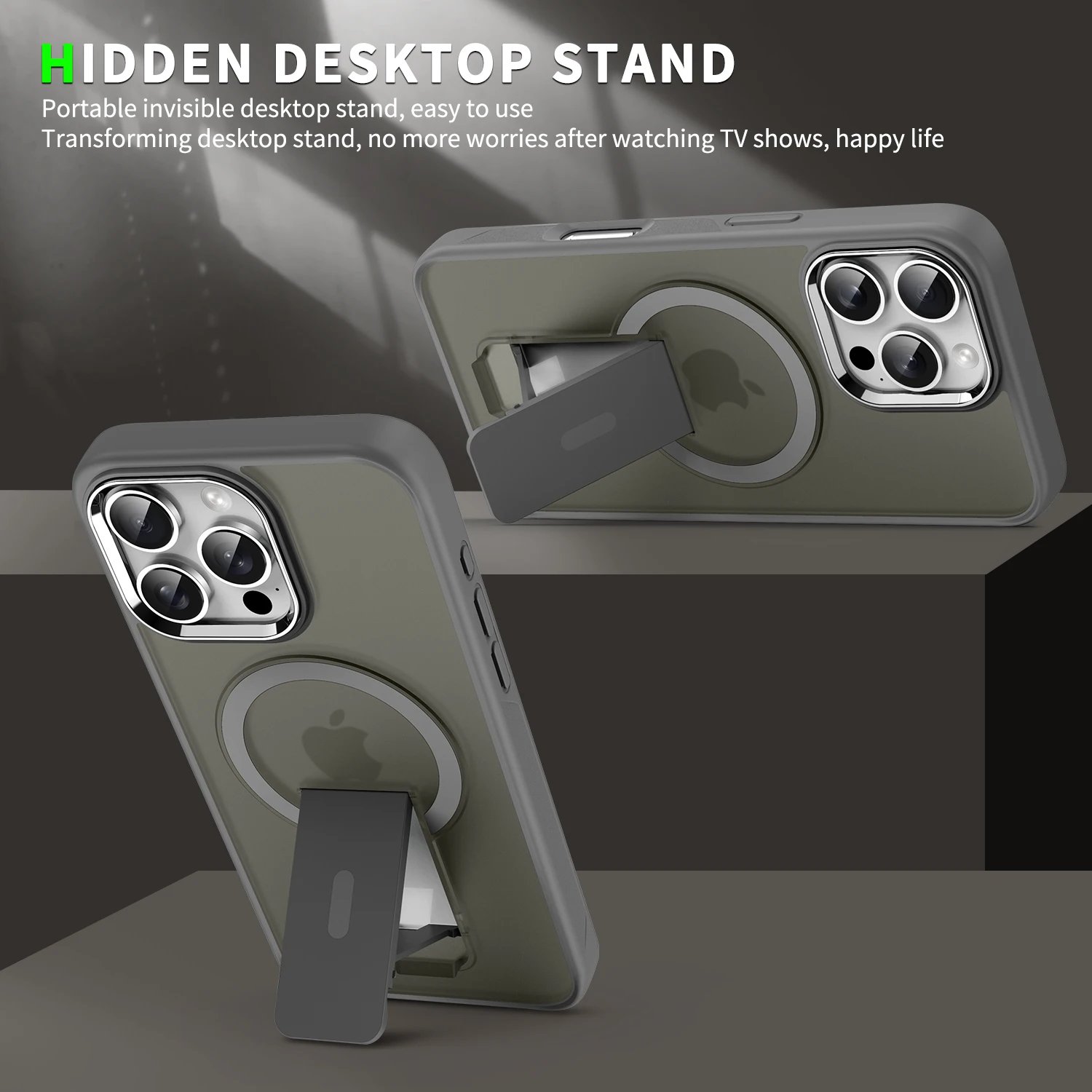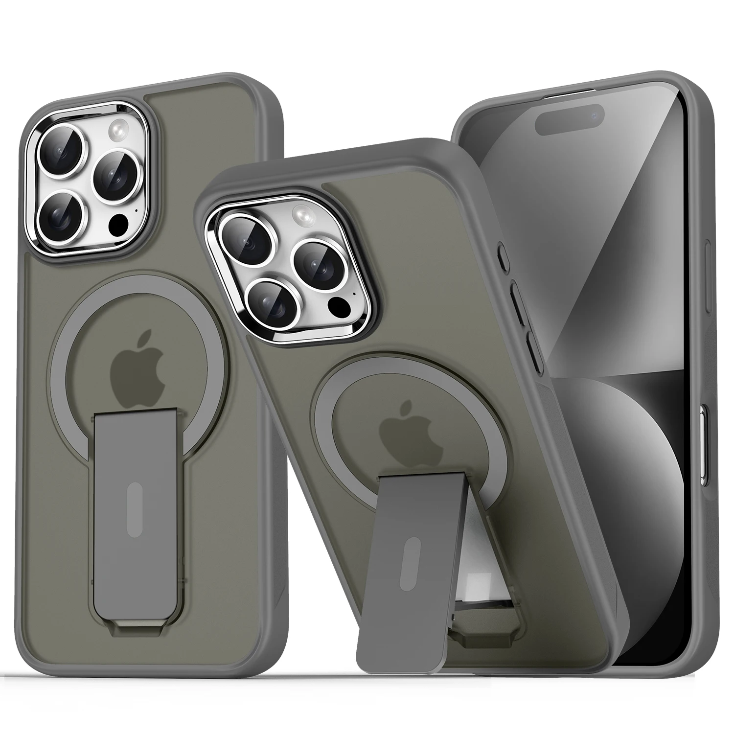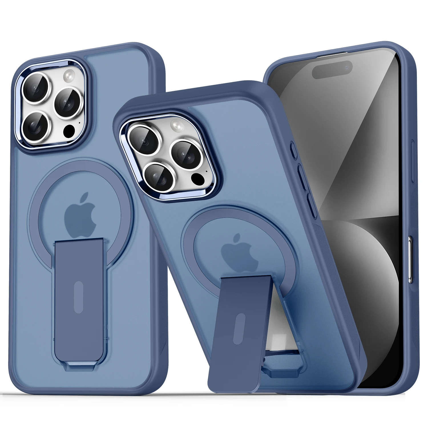 Comprar Funda magnética mate con soporte para Magsafe iPhone 15 16 Pro Max Plus 15Pro 16Pro Max Protector Mac cubierta de carga inalámbrica segura