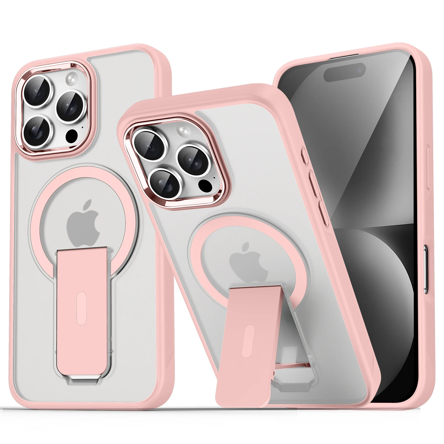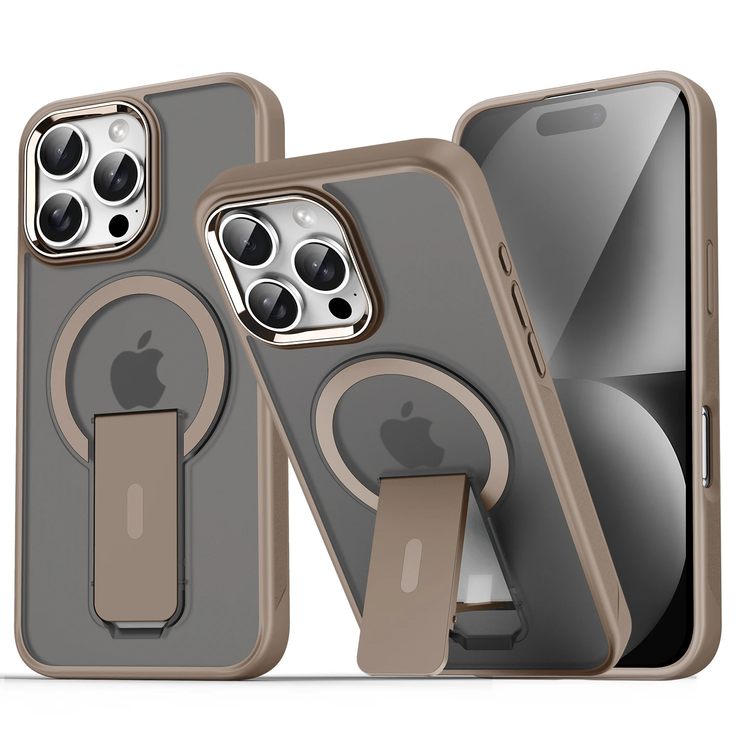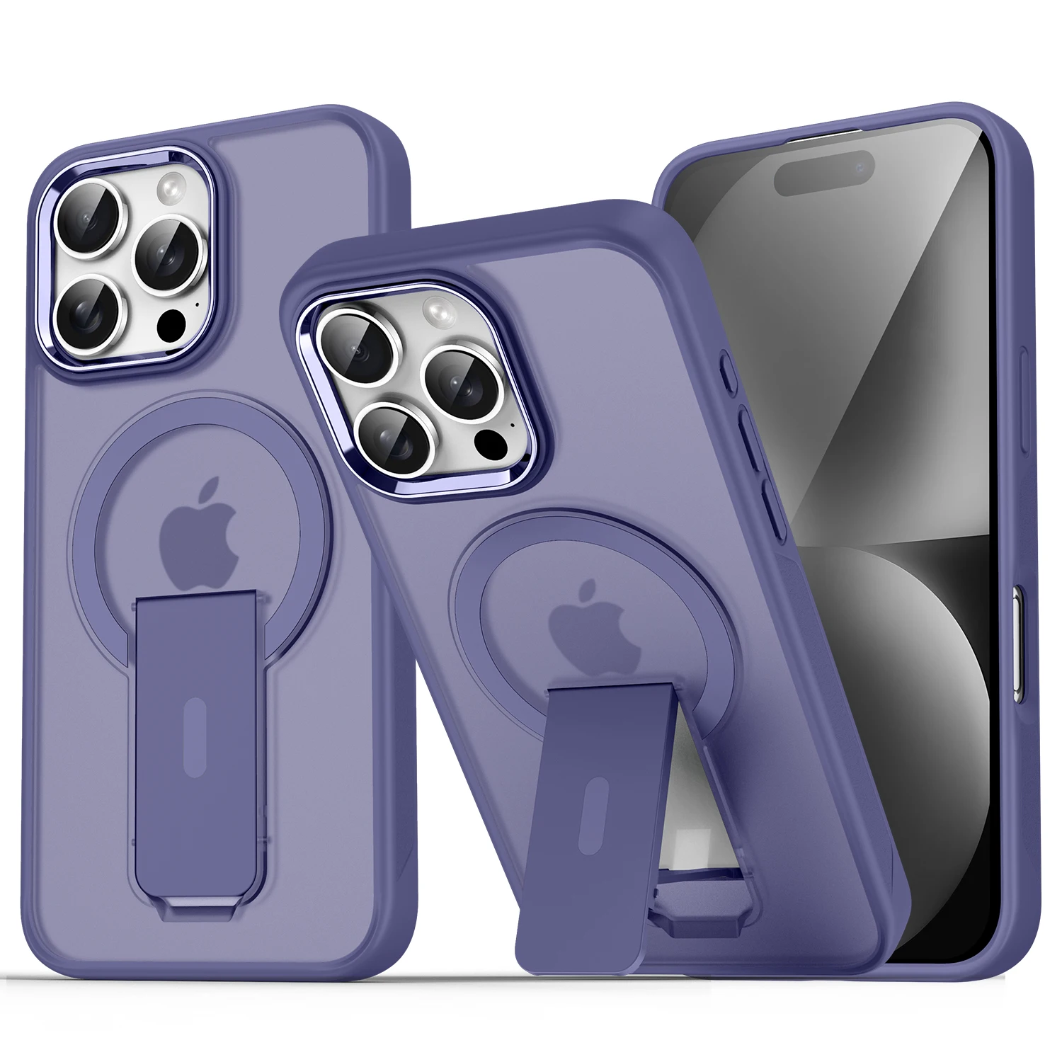 Comprar Funda magnética mate con soporte para Magsafe iPhone 15 16 Pro Max Plus 15Pro 16Pro Max Protector Mac cubierta de carga inalámbrica segura