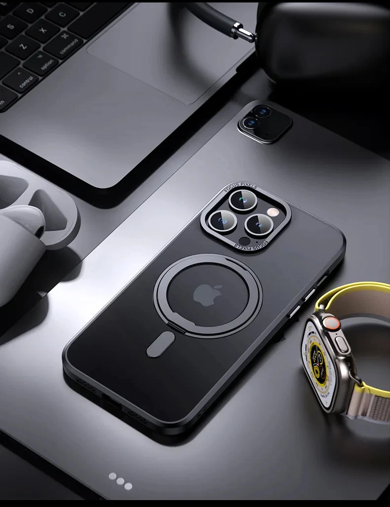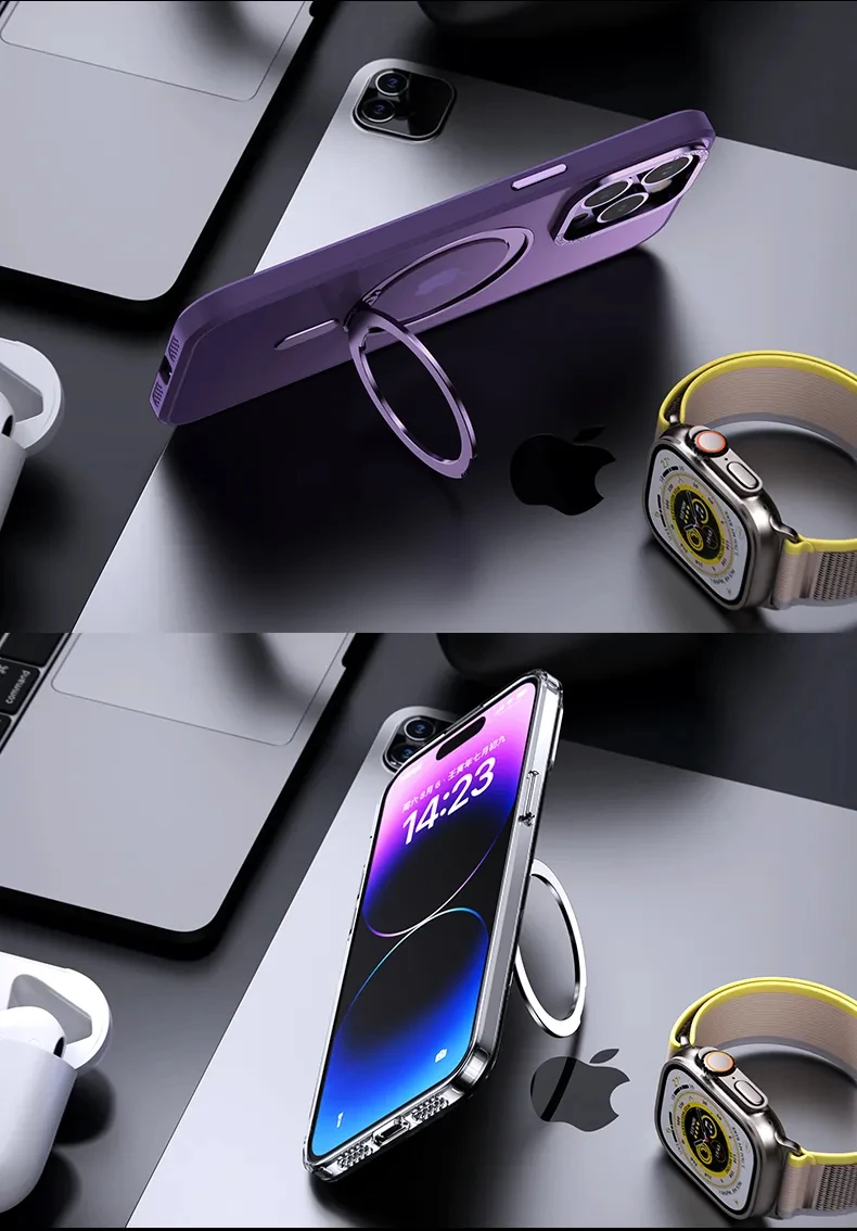 Funda magnética mate con soporte de rotación de 360 ° para iPhone 15, 14, 13, 12, 11 Pro Max, funda de carga inalámbrica Magsafe 15 Plus, funda con soporte de anillo