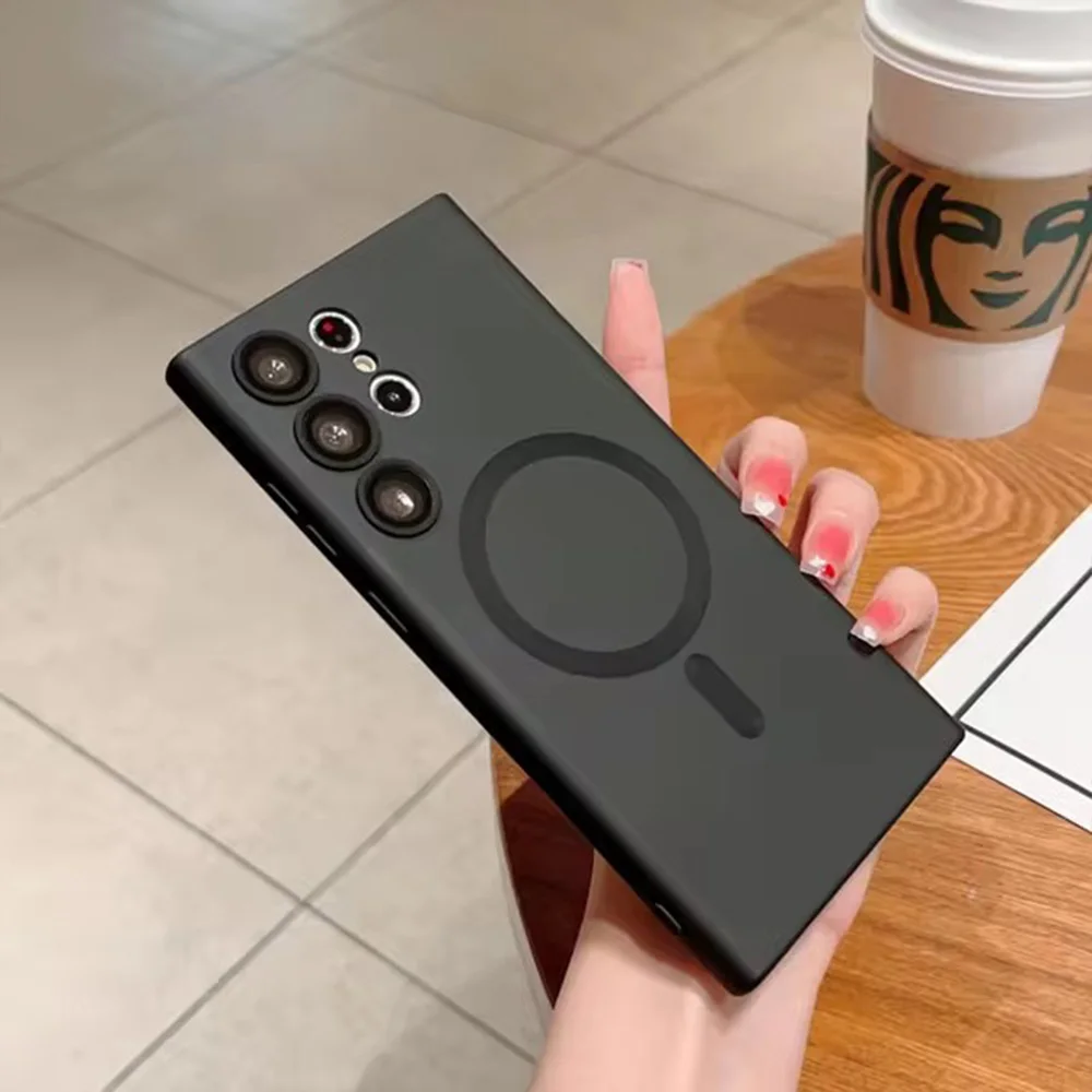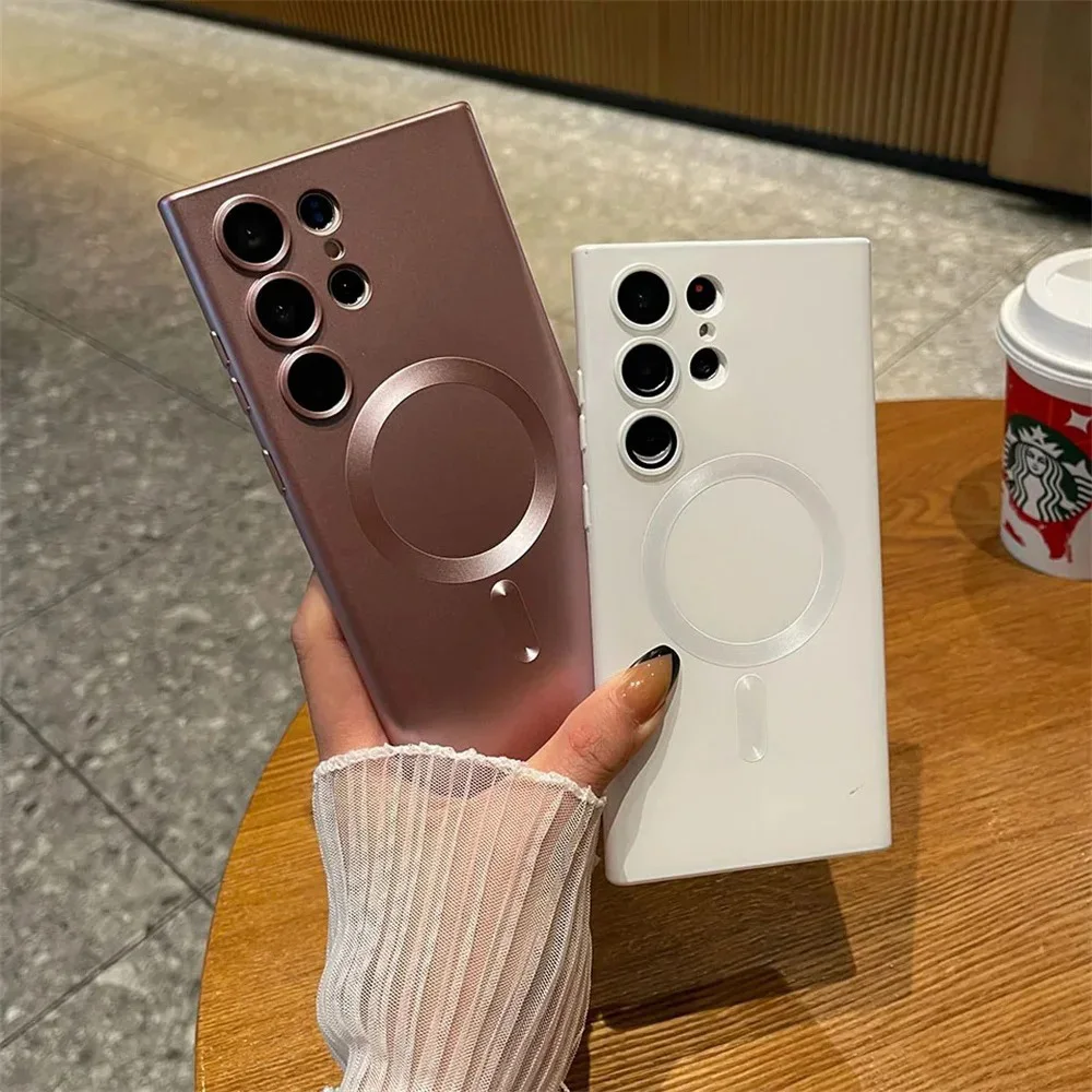 Funda magnética de pintura metálica de lujo para for Samsung Galaxy, Protector de lente, cubierta de silicona mate, for Magsafe, for Samsung Galaxy S25, S24, S23, S22, S21 Ultra Plus funda movil