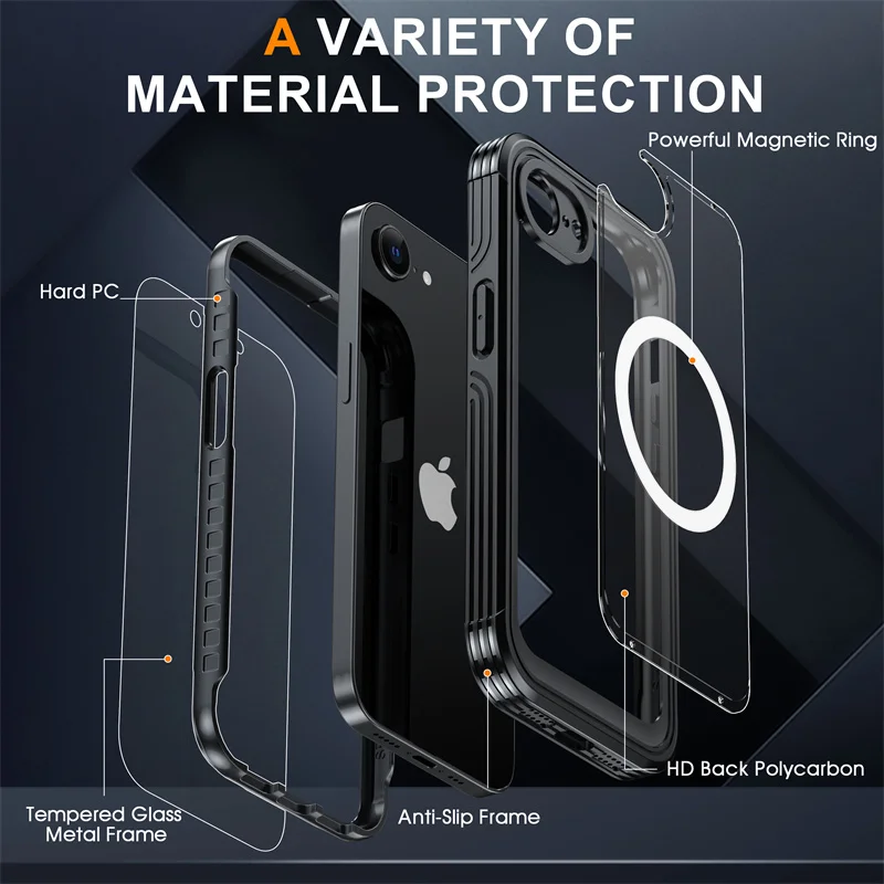 1. Diseño duradero con protección integral de 360 grados: compuesto por tres partes: marco frontal, carcasa trasera y película de pantalla