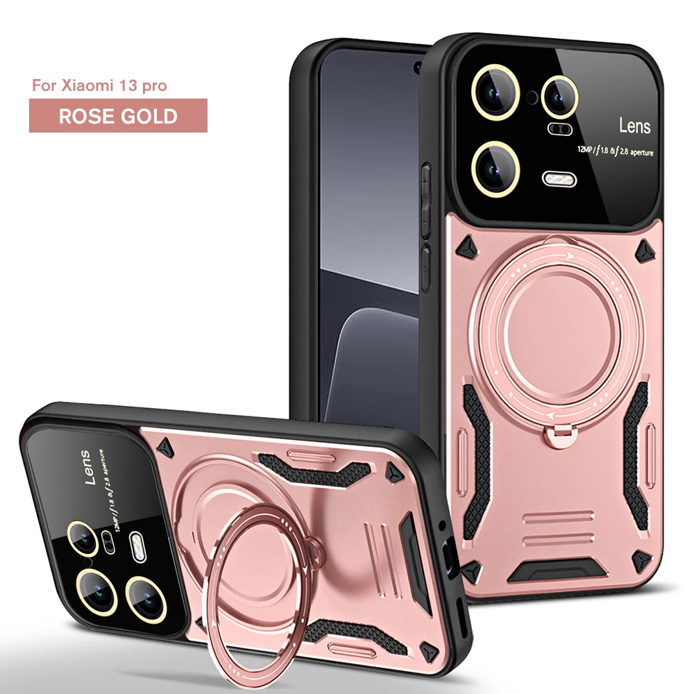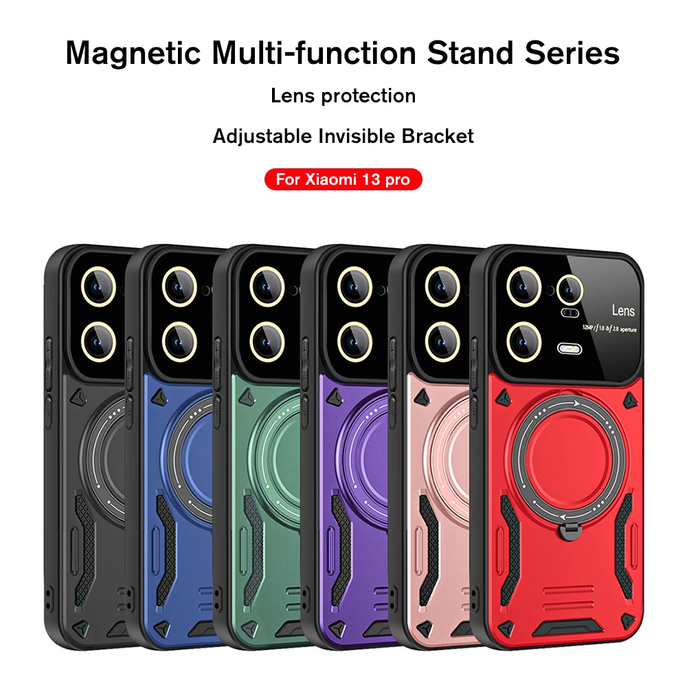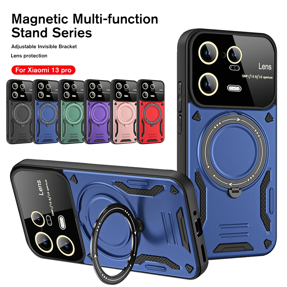 Comprar Funda magnética de protección de lente completa para Xiaomi 13 Pro, Mi13, Xiaomi 13, Xiaomi 13Pro, soporte de anillo giratorio oculto de 360 °
