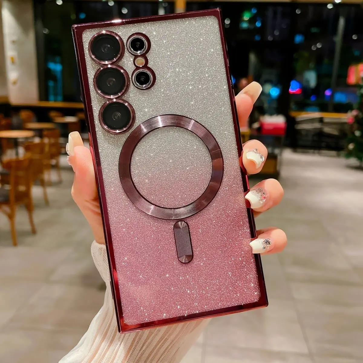 El S22 Ultra encaja a la perfección. Genial que puedas quitar el inserto de diamante (probablemente sea para ti). Mi funda roja combina a la perfección con los accesorios metálicos rojos del coche.