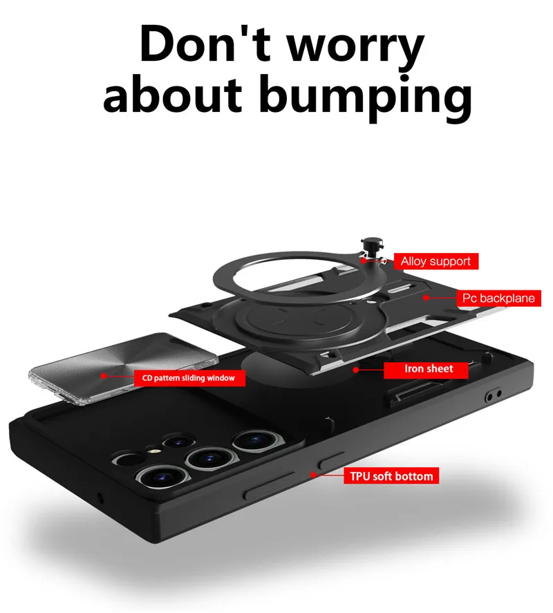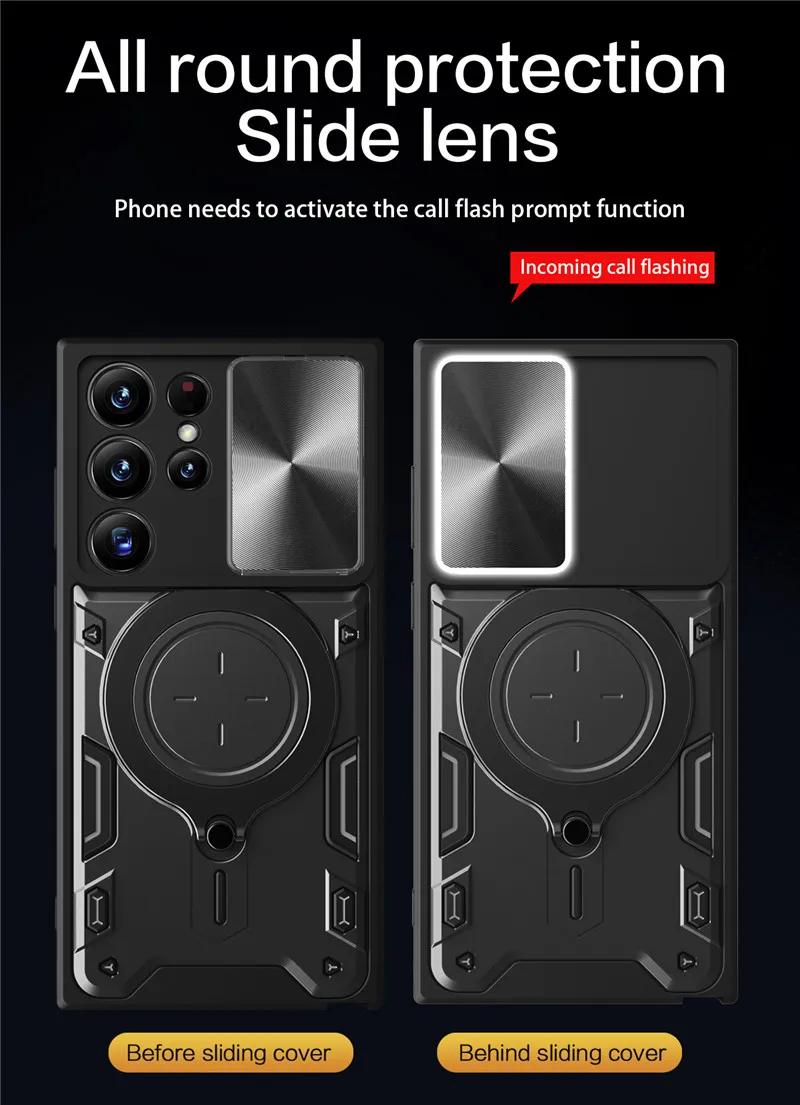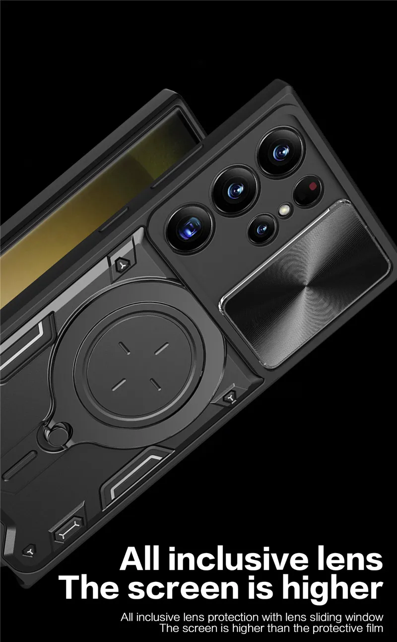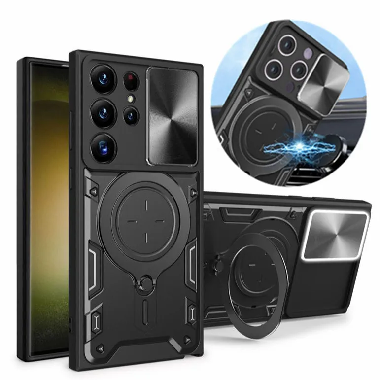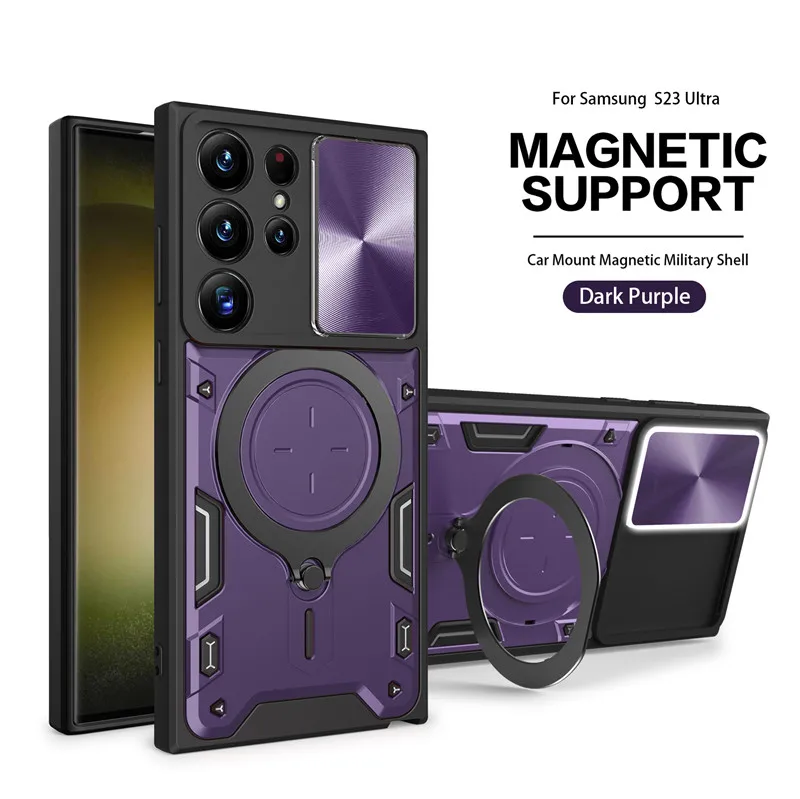 Comprar Funda magnética para Samsung Galaxy S23 Ultra a prueba de golpes, carcasa trasera con anillo de soporte para coche, protección de cámara