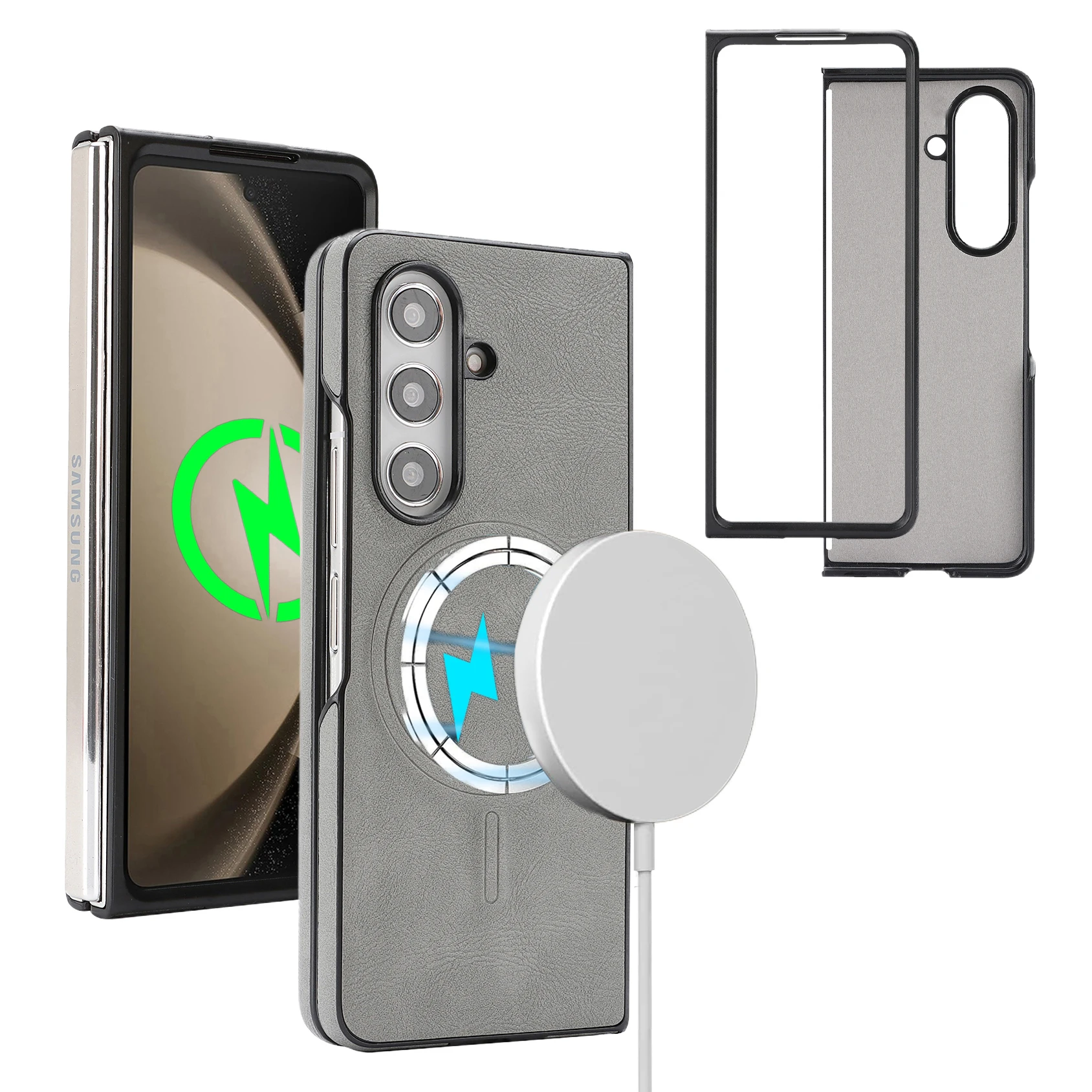 Funda magnética para Samsung Galaxy Z Fold 7 6 5 4 3, Funda de cuero suave mate con imán fuerte, Funda plegable a prueba de golpes Mag-safe - imagen 1