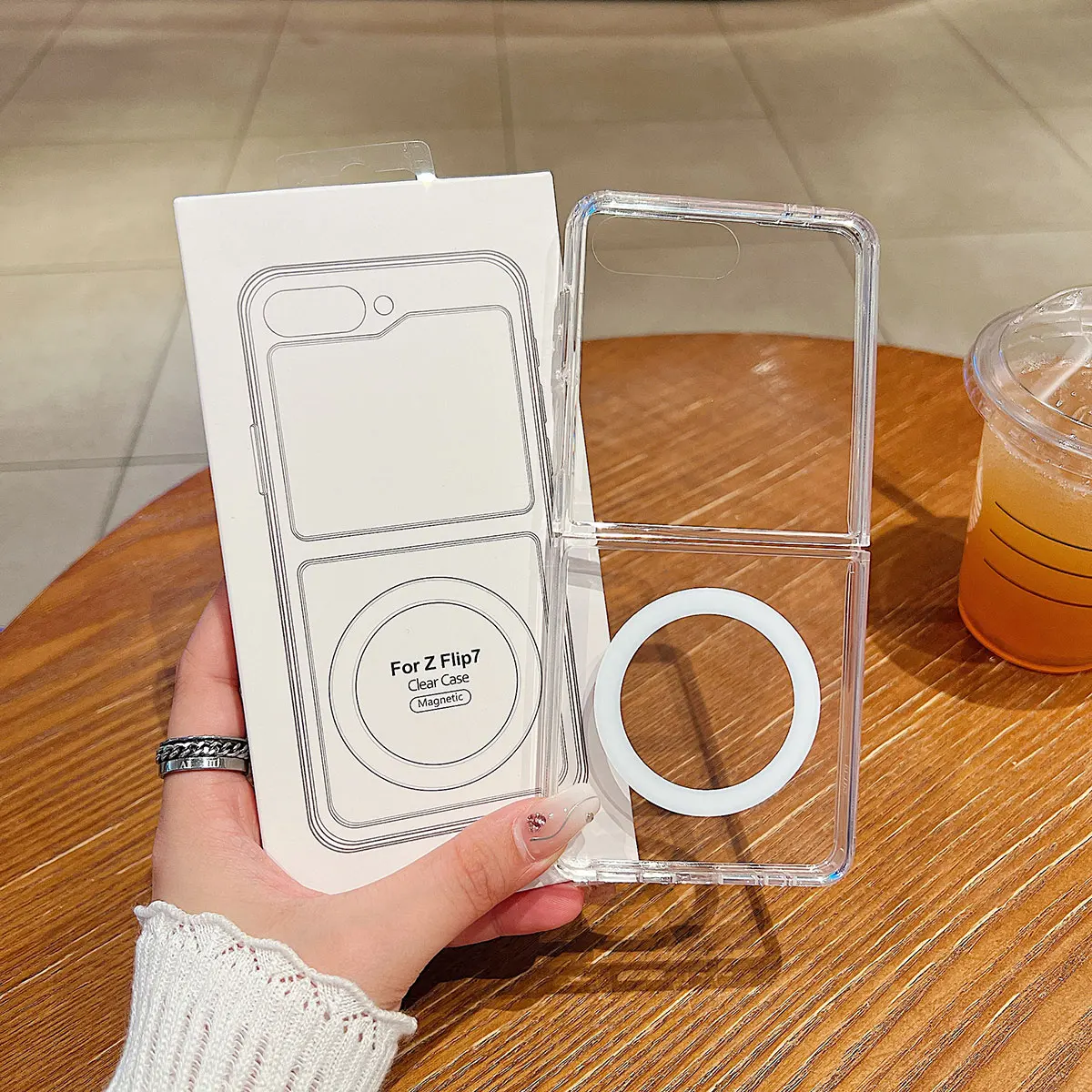 Funda magnética para Samsung Galaxy Z Fold Flip 7 6 5 4 3 funda Mag-safe cristal transparente a prueba de golpes cojín de aire carcasa de teléfono Fundas