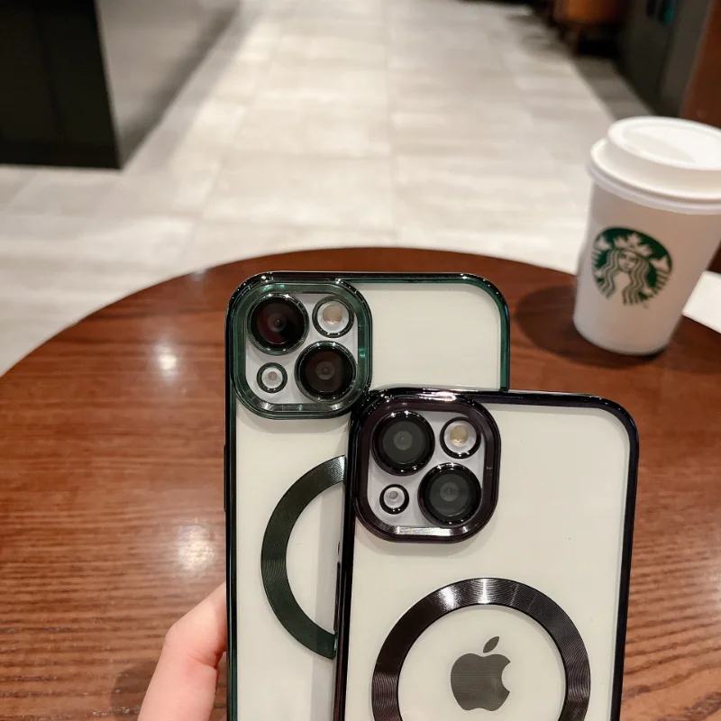 Comprar Funda magnética de silicona suave con logotipo, cubierta de carga inalámbrica para iPhone 14, 13, 12, 11 Pro Max, 14Plus, chapado transparente