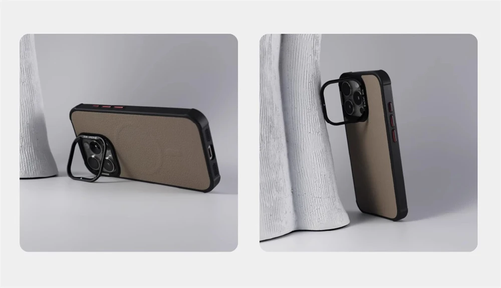 Comprar Funda magnética con soporte de lente de Metal y cuero para negocios, funda a prueba de golpes con carga inalámbrica MagSafe para iPhone 16 Pro Max 15 14 Plus 13