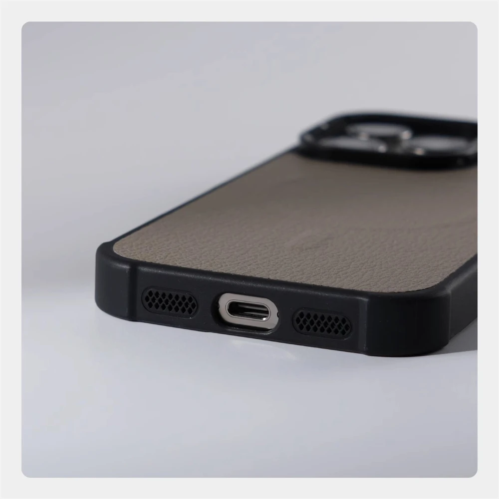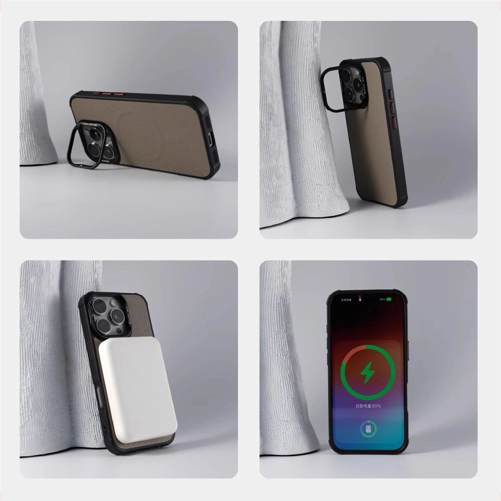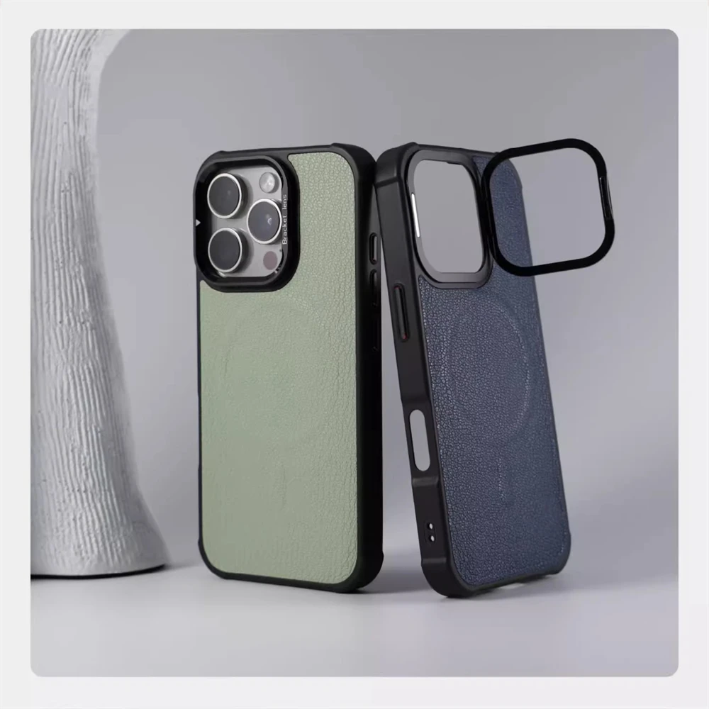Funda magnética con soporte de lente de Metal y cuero para negocios, funda a prueba de golpes con carga inalámbrica MagSafe para iPhone 16 Pro Max 15 14 Plus 13