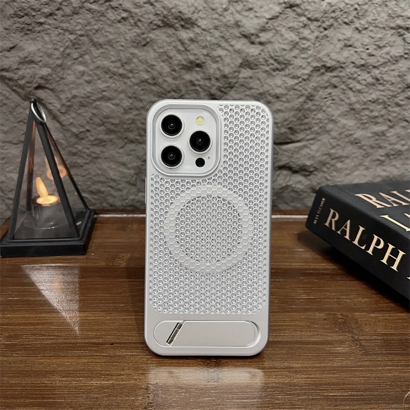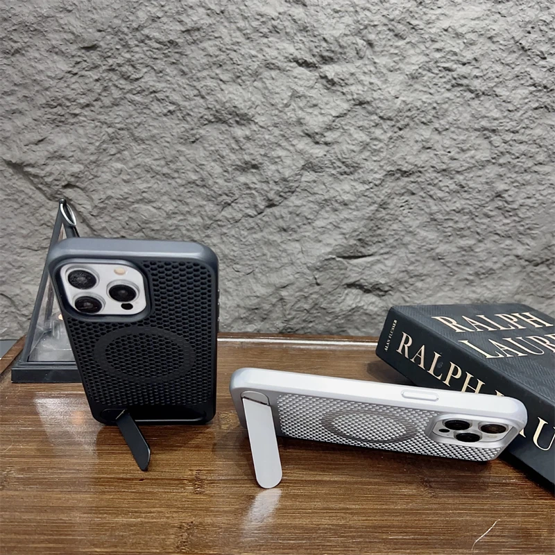 Funda magnética de soporte de Metal oculto con disipación de calor de lujo para Magsafe IPhone 15 14 13 12 Pro Max 11 15Pro IPhone15 cubierta dura