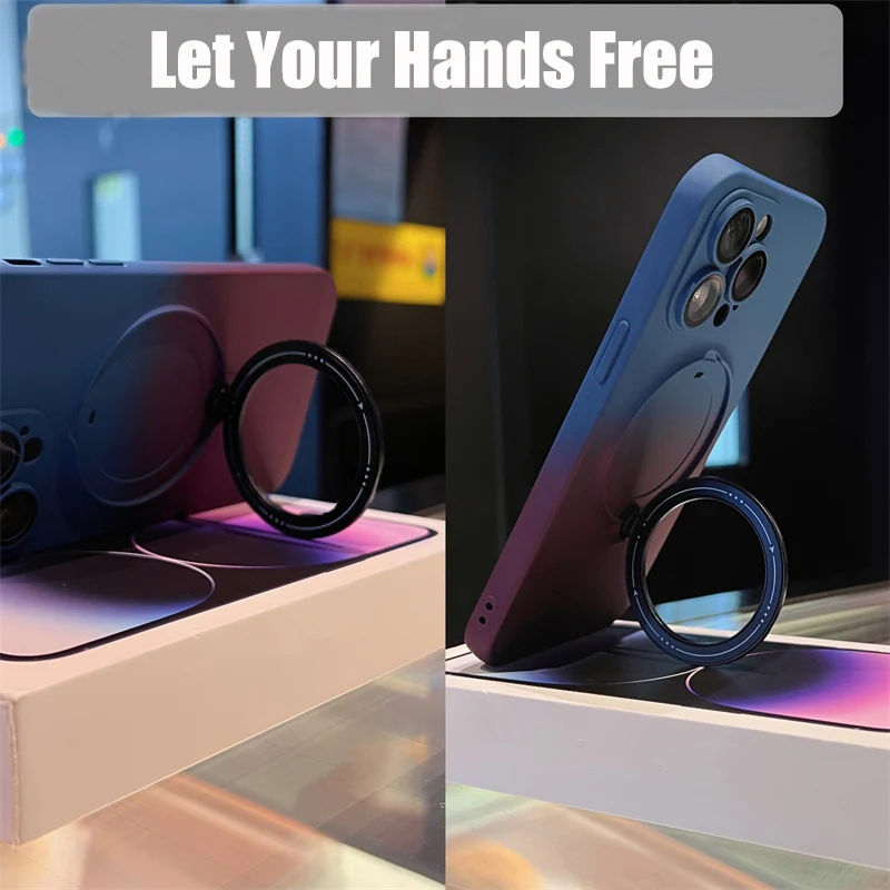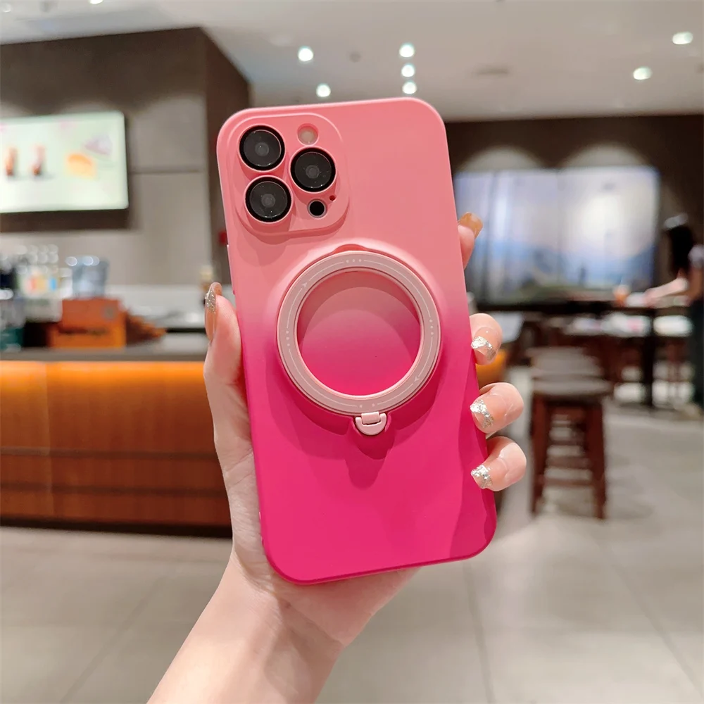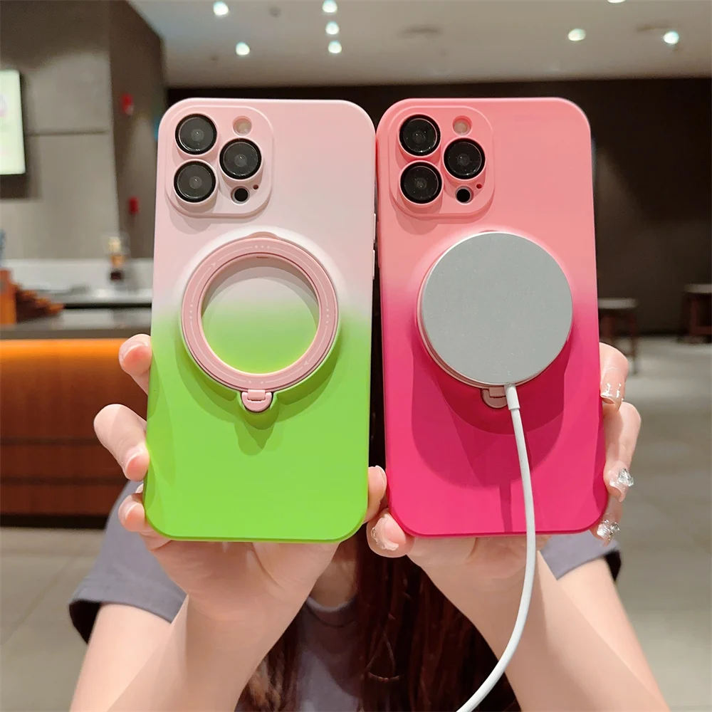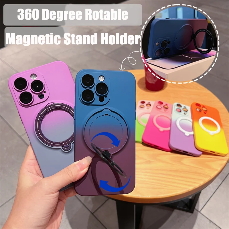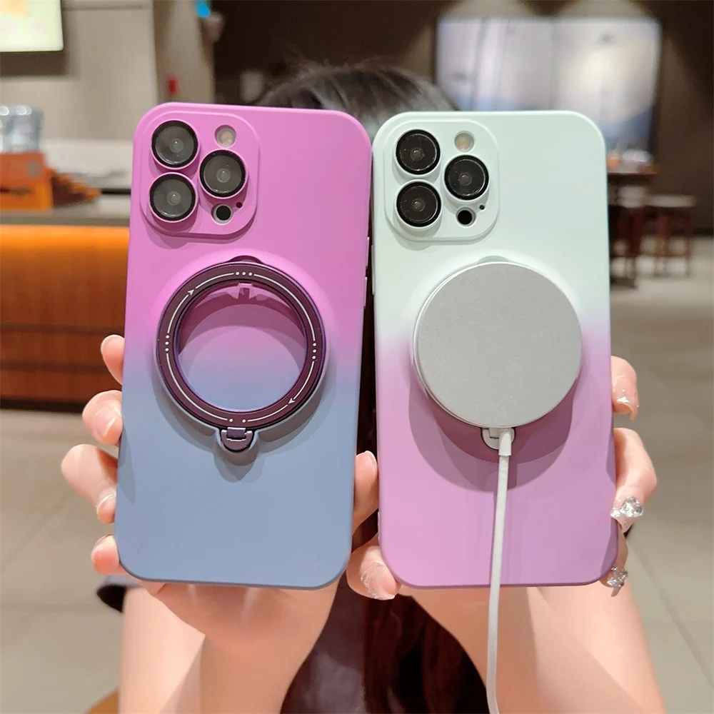 Comprar Funda magnética con soporte de pata de cabra para iPhone 15 Pro Max 14 13 12 11 15 Plus, protector de lente de cámara, Color degradado, funda de silicona suave
