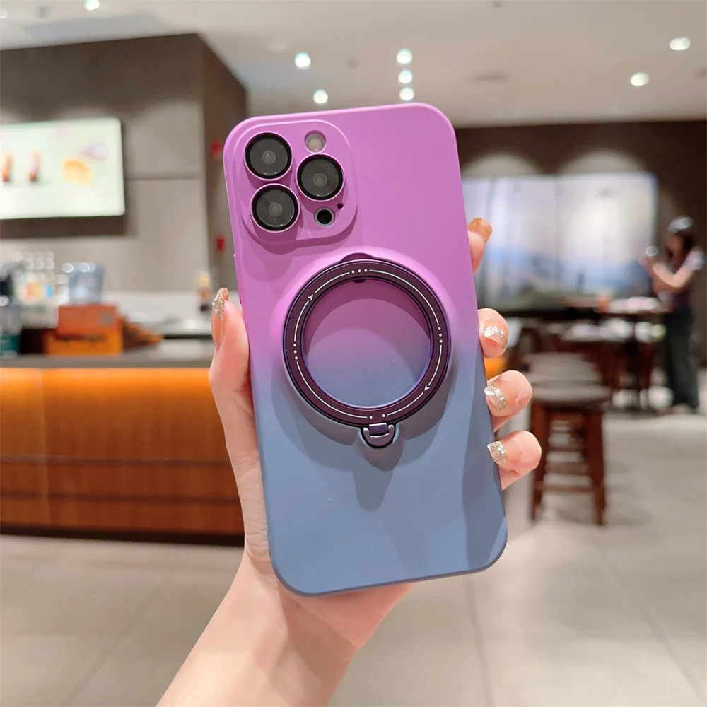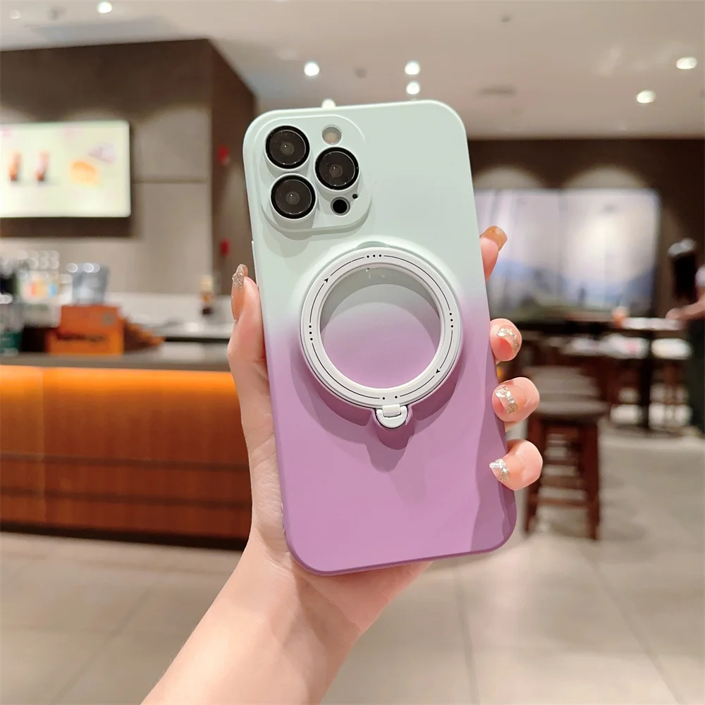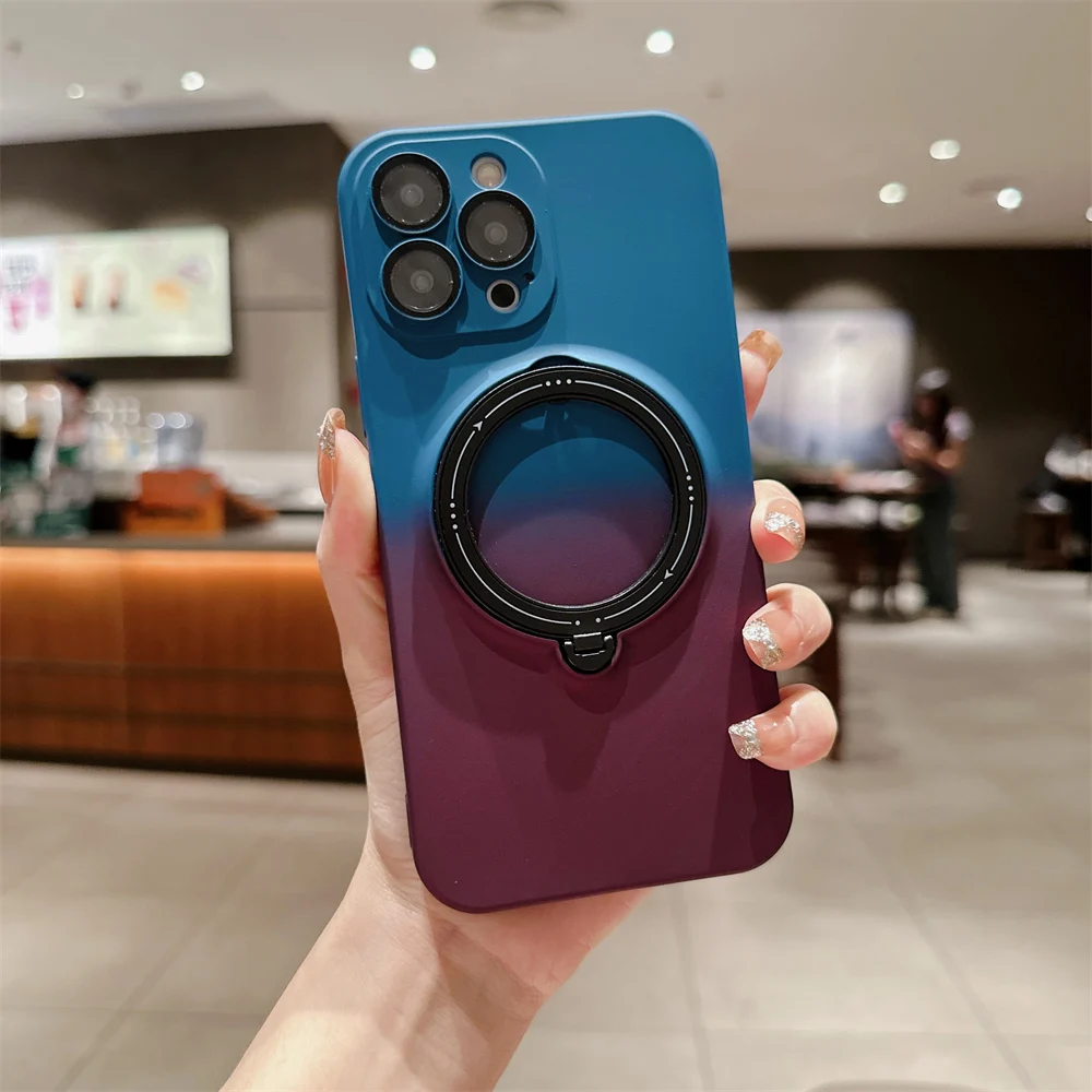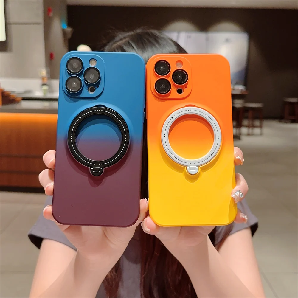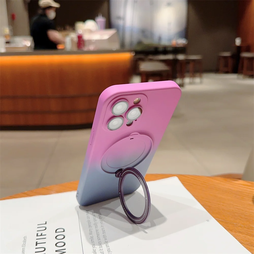 Funda magnética con soporte de pata de cabra para iPhone 15 Pro Max 14 13 12 11 15 Plus, protector de lente de cámara, Color degradado, funda de silicona suave