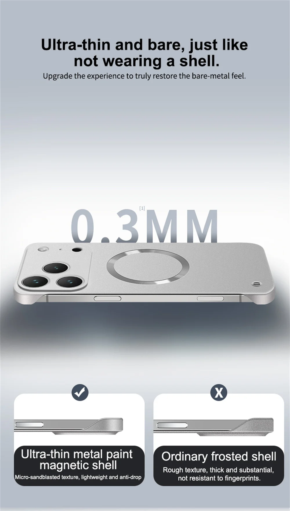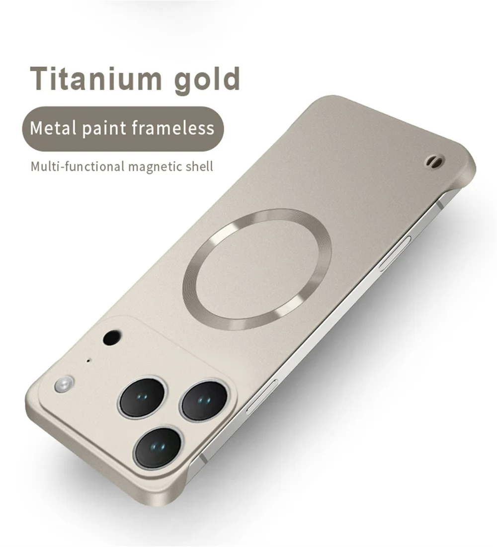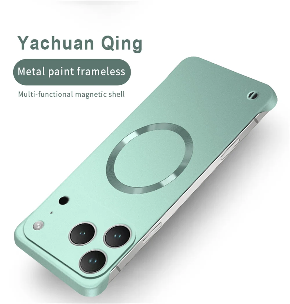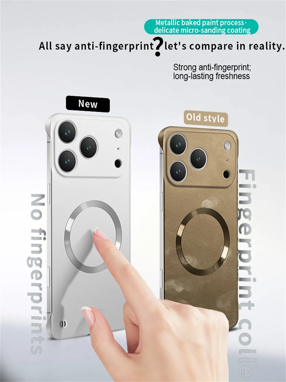 Magnético para Magsafe Ultra delgado sin marco funda de teléfono para iPhone 16 17 Pro Max Air 14 15 13 12 carga inalámbrica cubierta de PC chapada