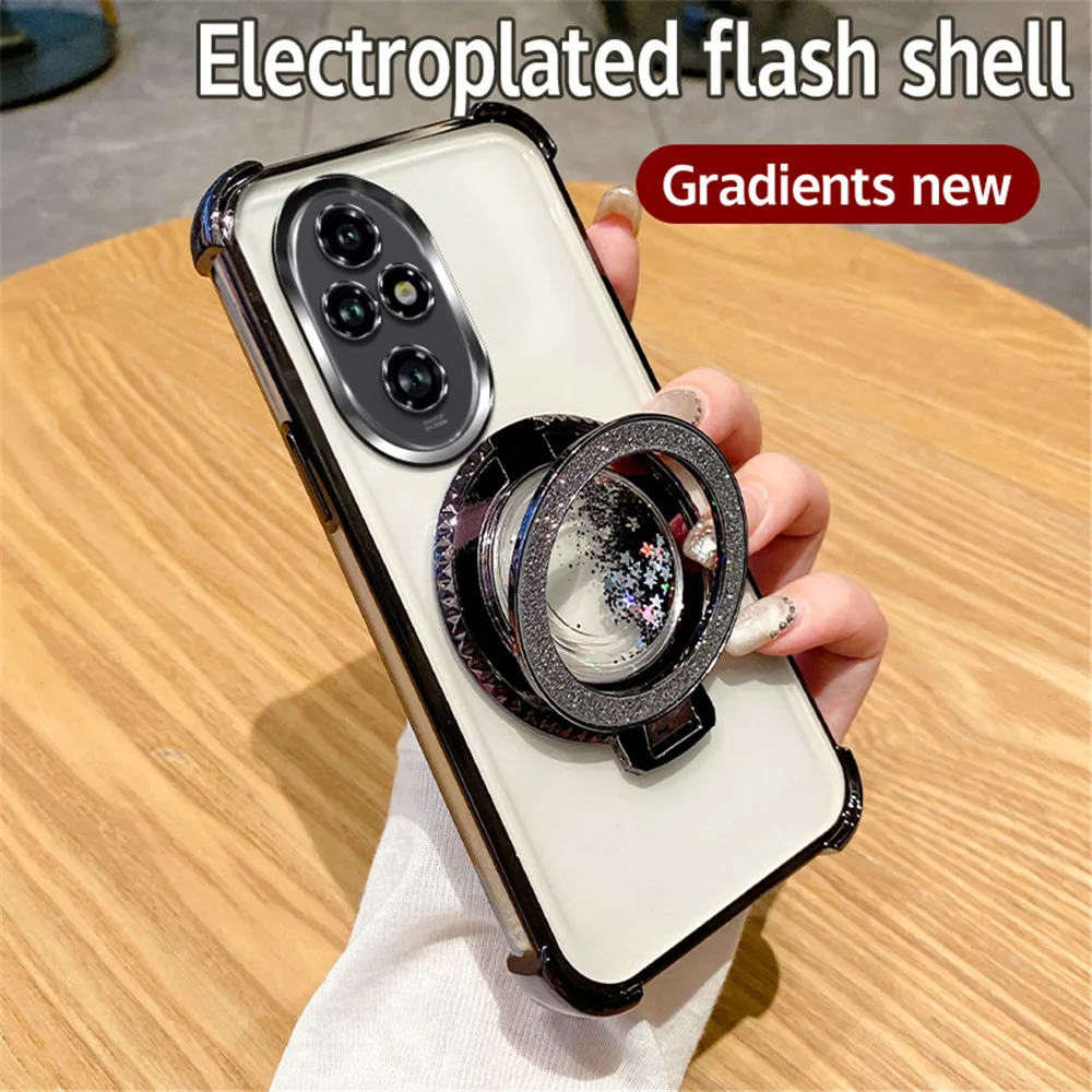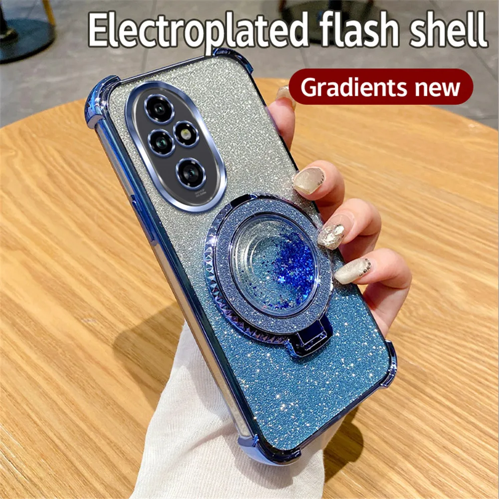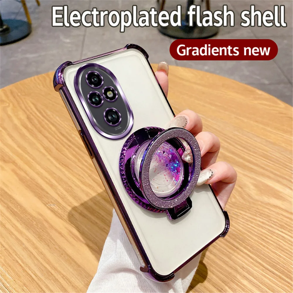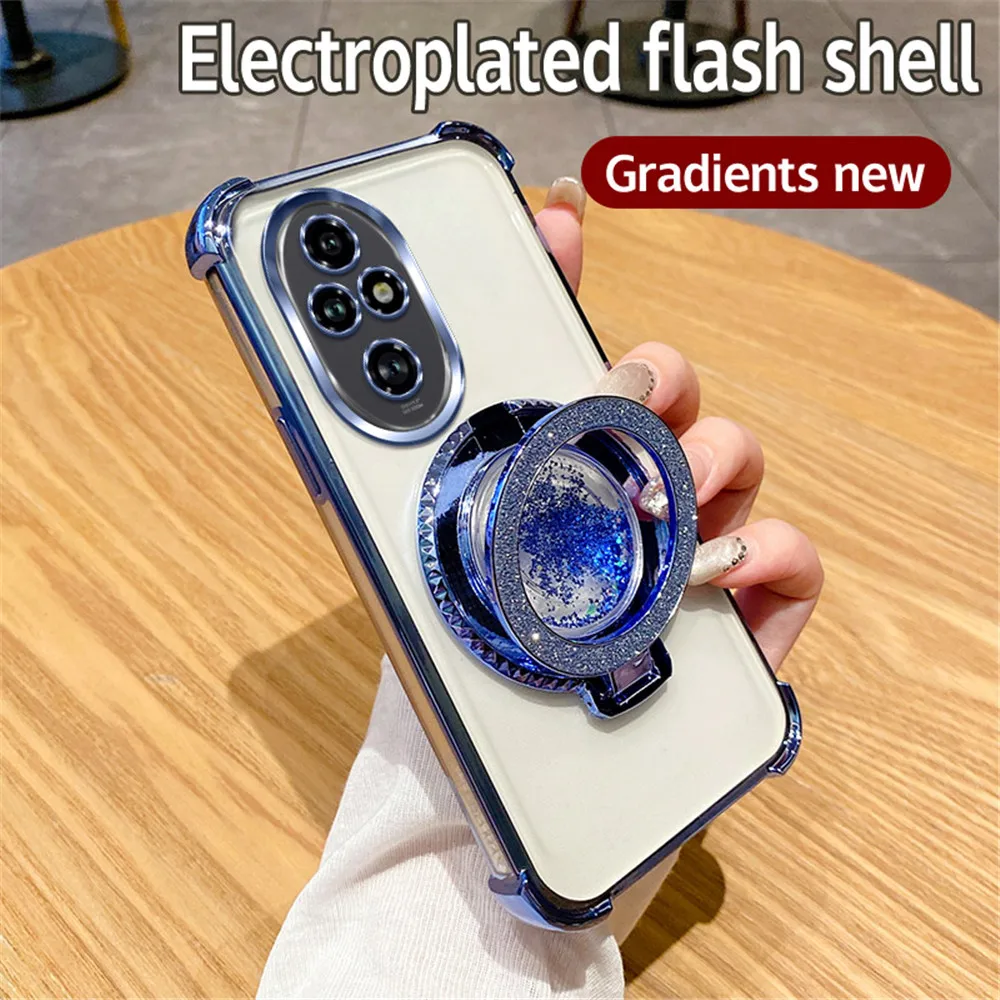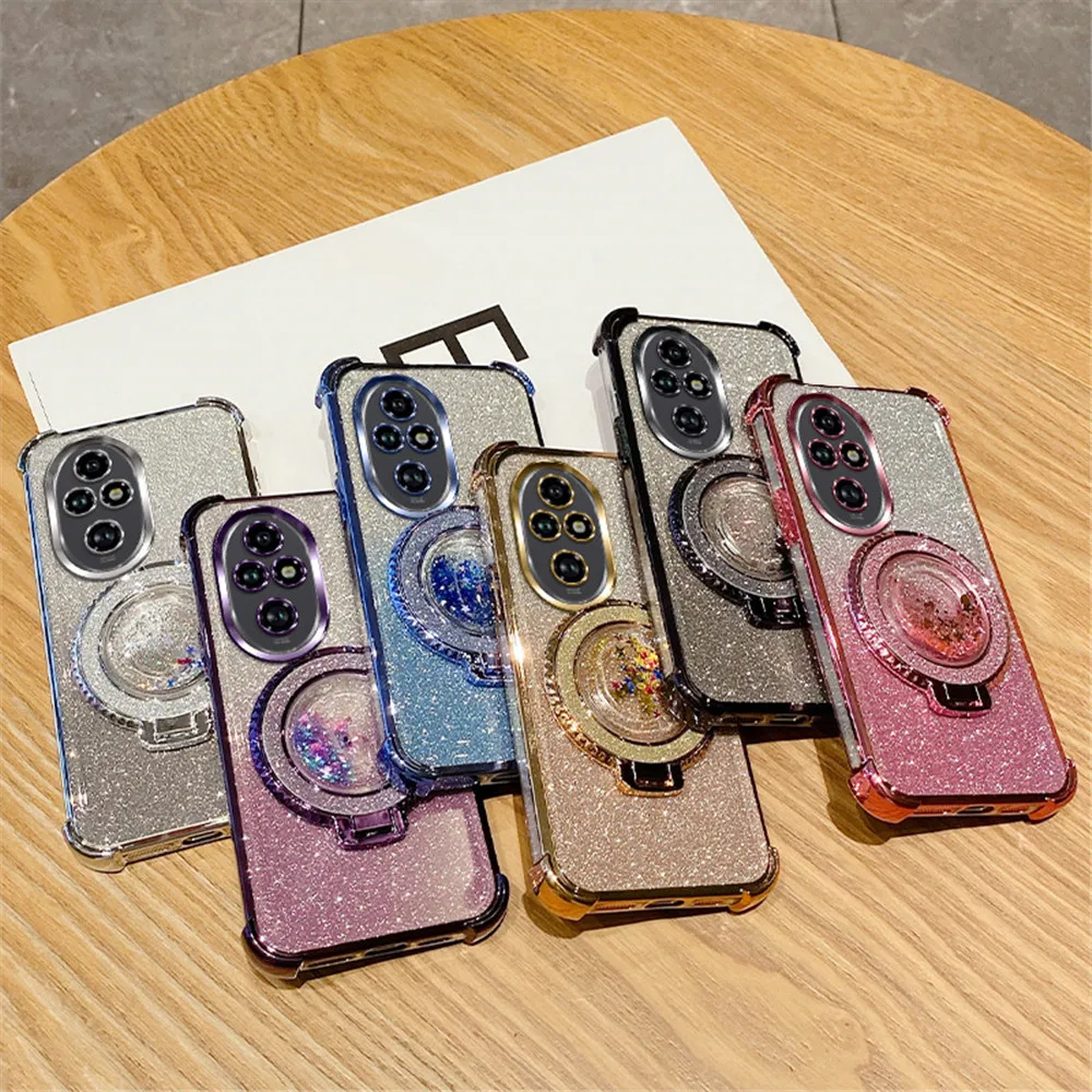Funda de teléfono con soporte de arena movediza magnética para Honor 200 100 90 80 70 60 50 Pro Gradient Glitter a prueba de golpes funda de silicona suave