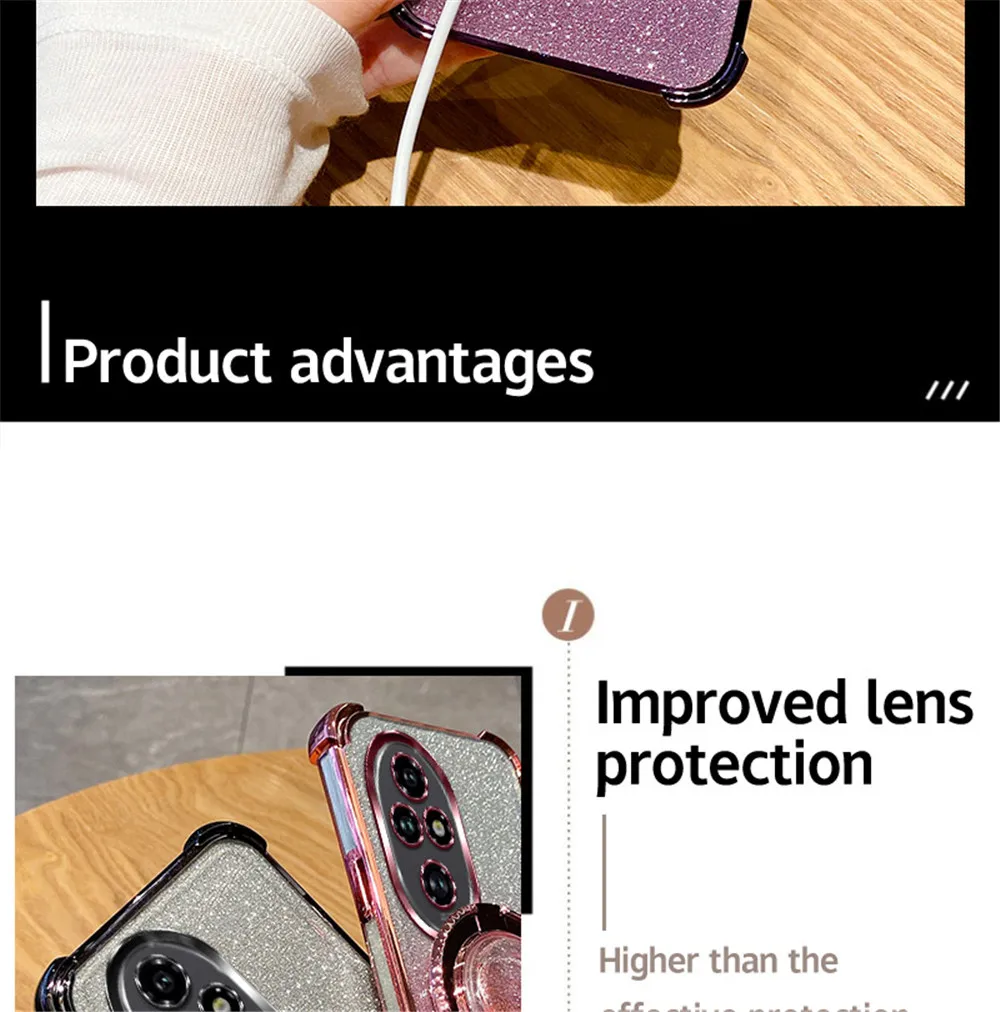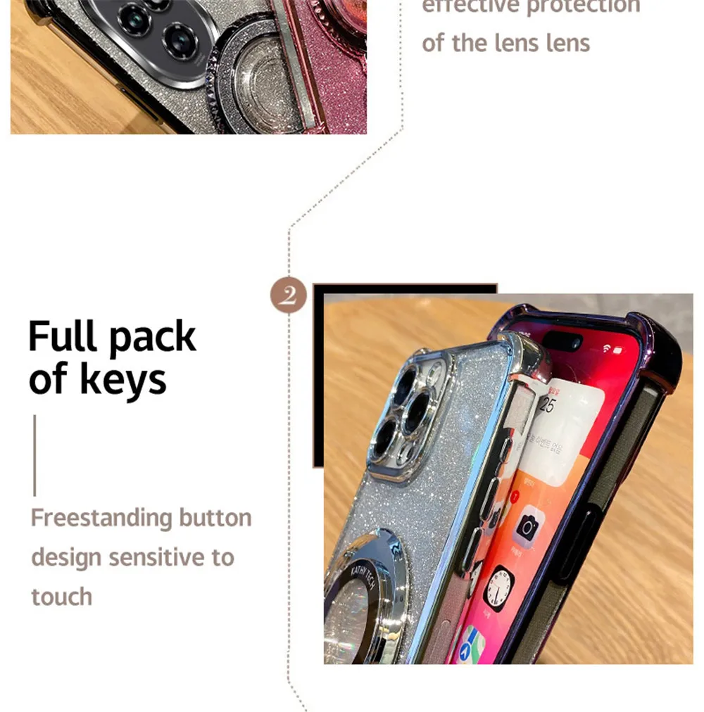 Comprar Funda magnética de teléfono con soporte de arena movediza para Honor 200, 100, 90, 80, 70, 60, 50 Pro, gradiente de purpurina, a prueba de golpes, funda de silicona suave con soporte