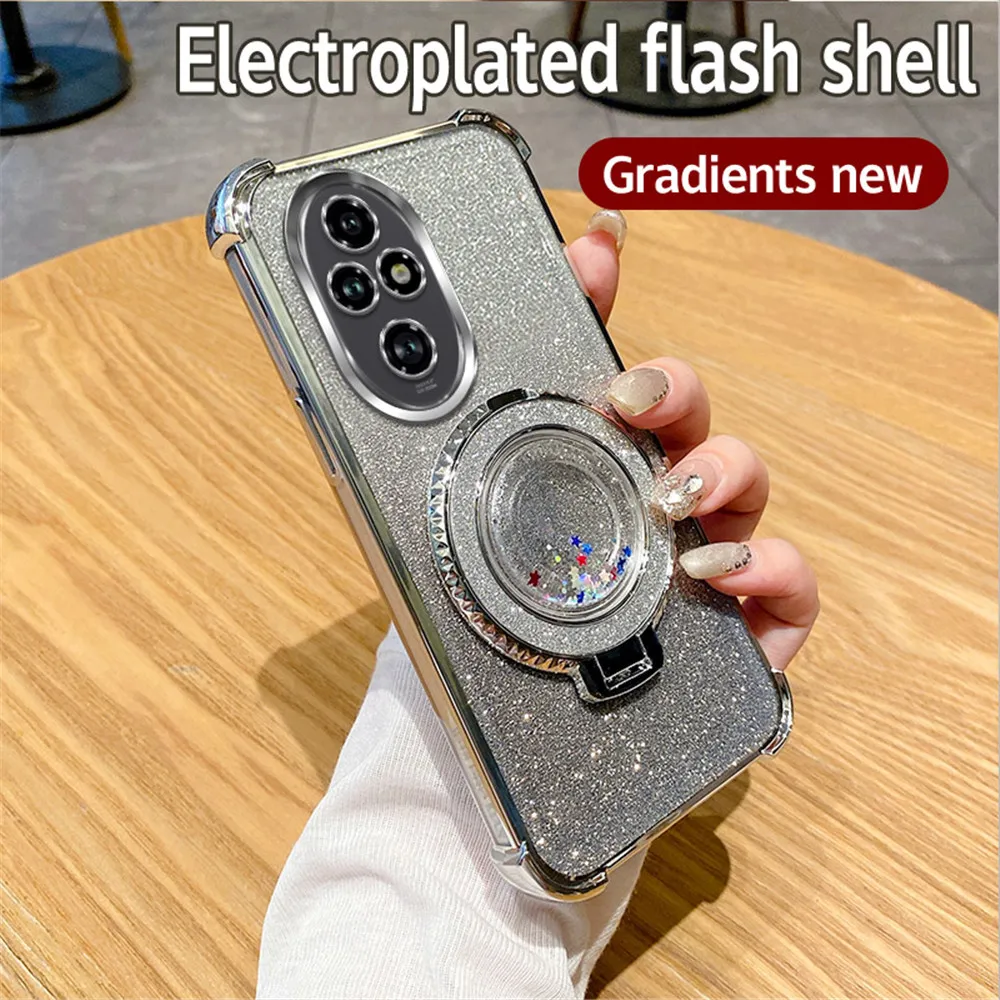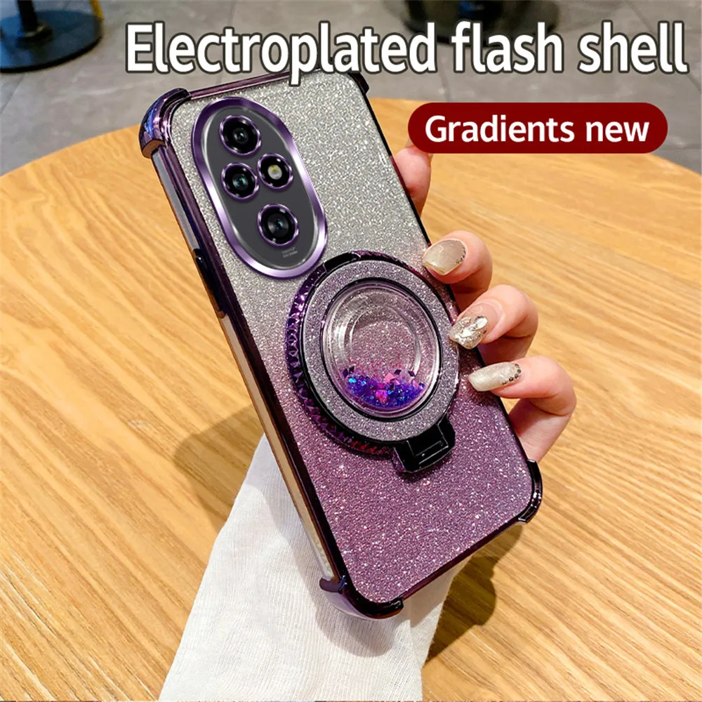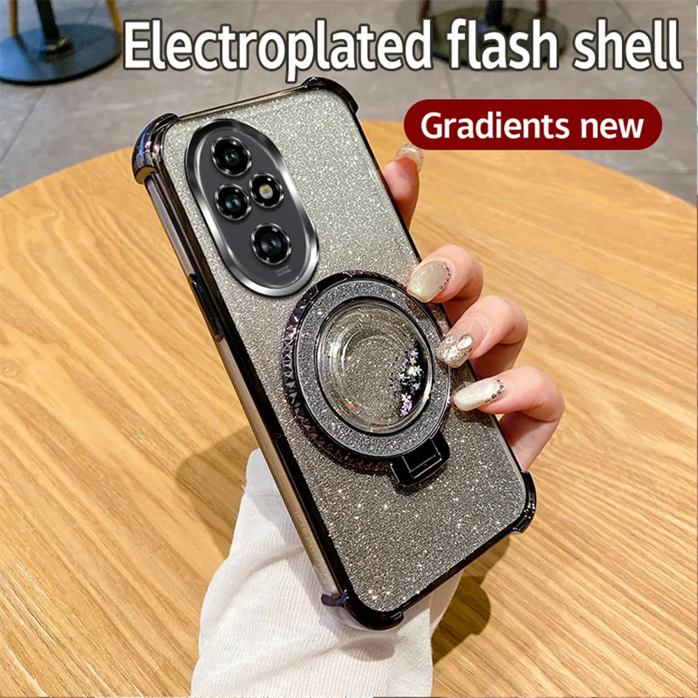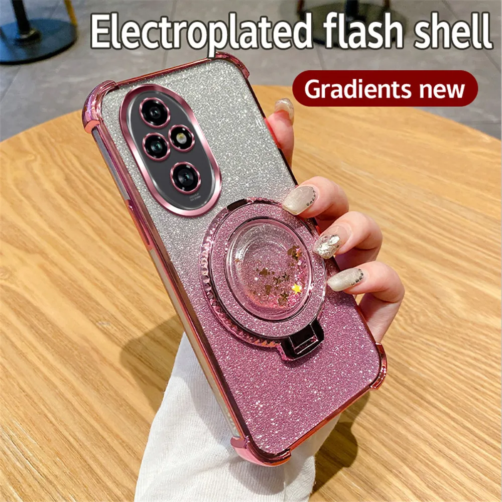 Funda de teléfono con soporte de arena movediza magnética para Honor 200 100 90 80 70 60 50 Pro Gradient Glitter a prueba de golpes funda de silicona suave