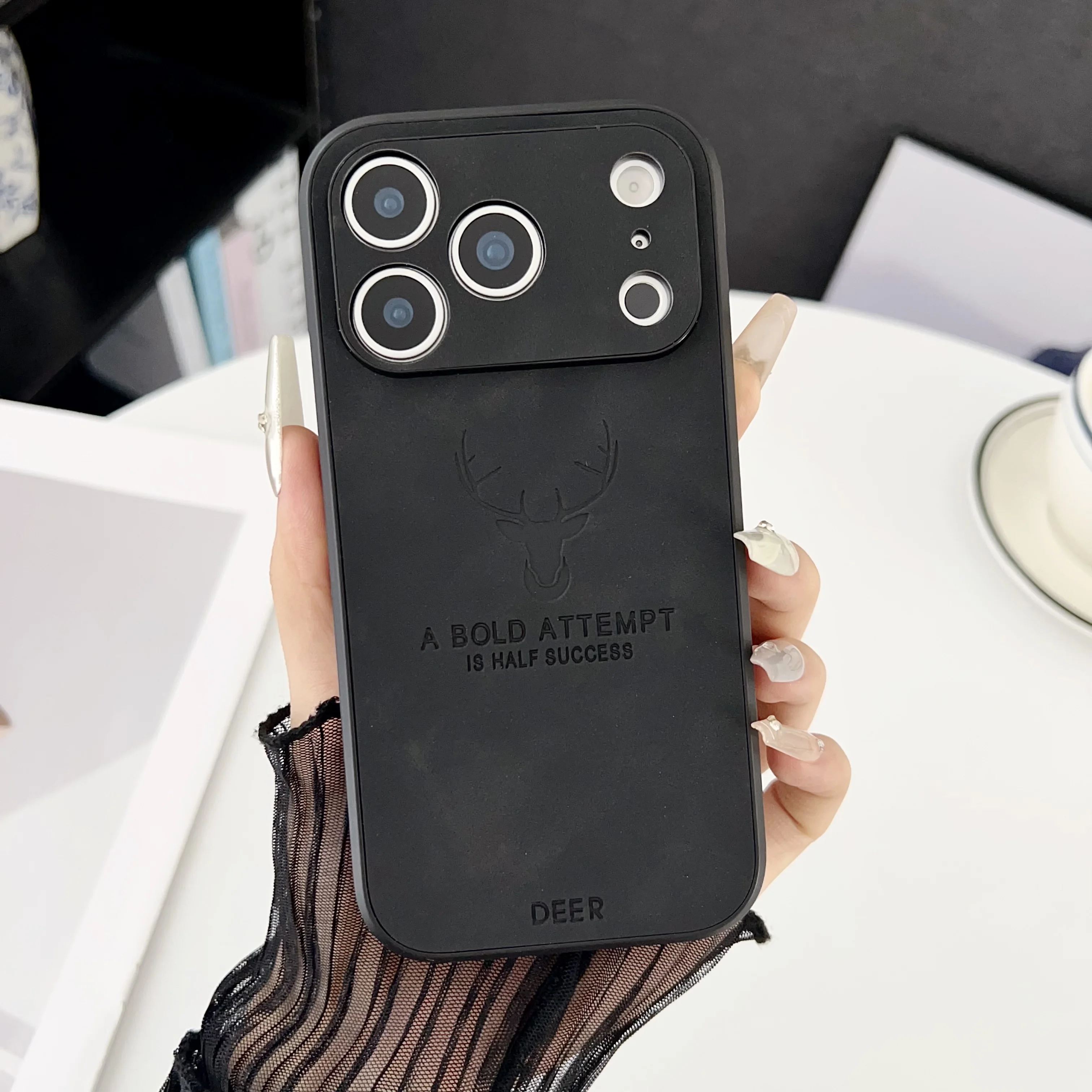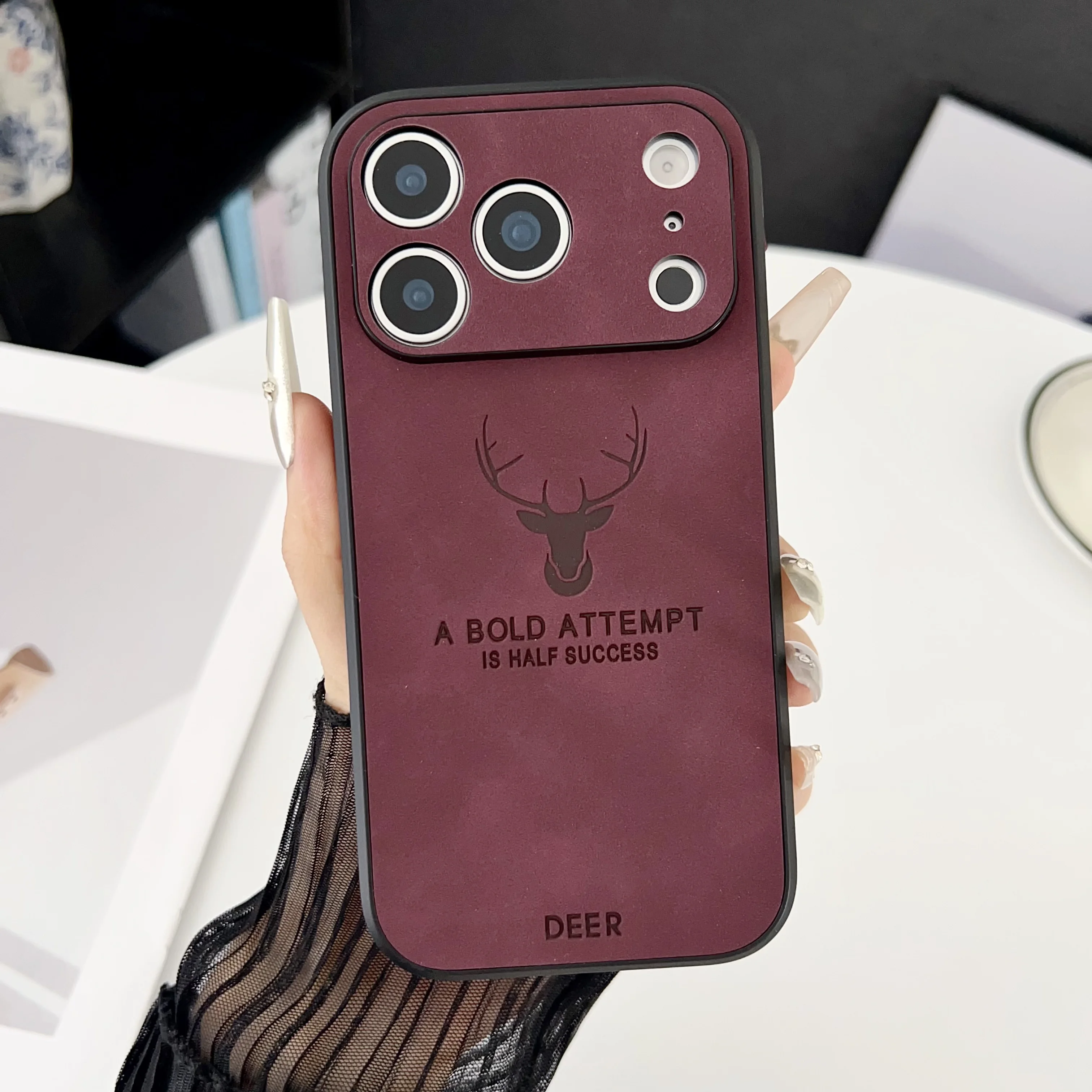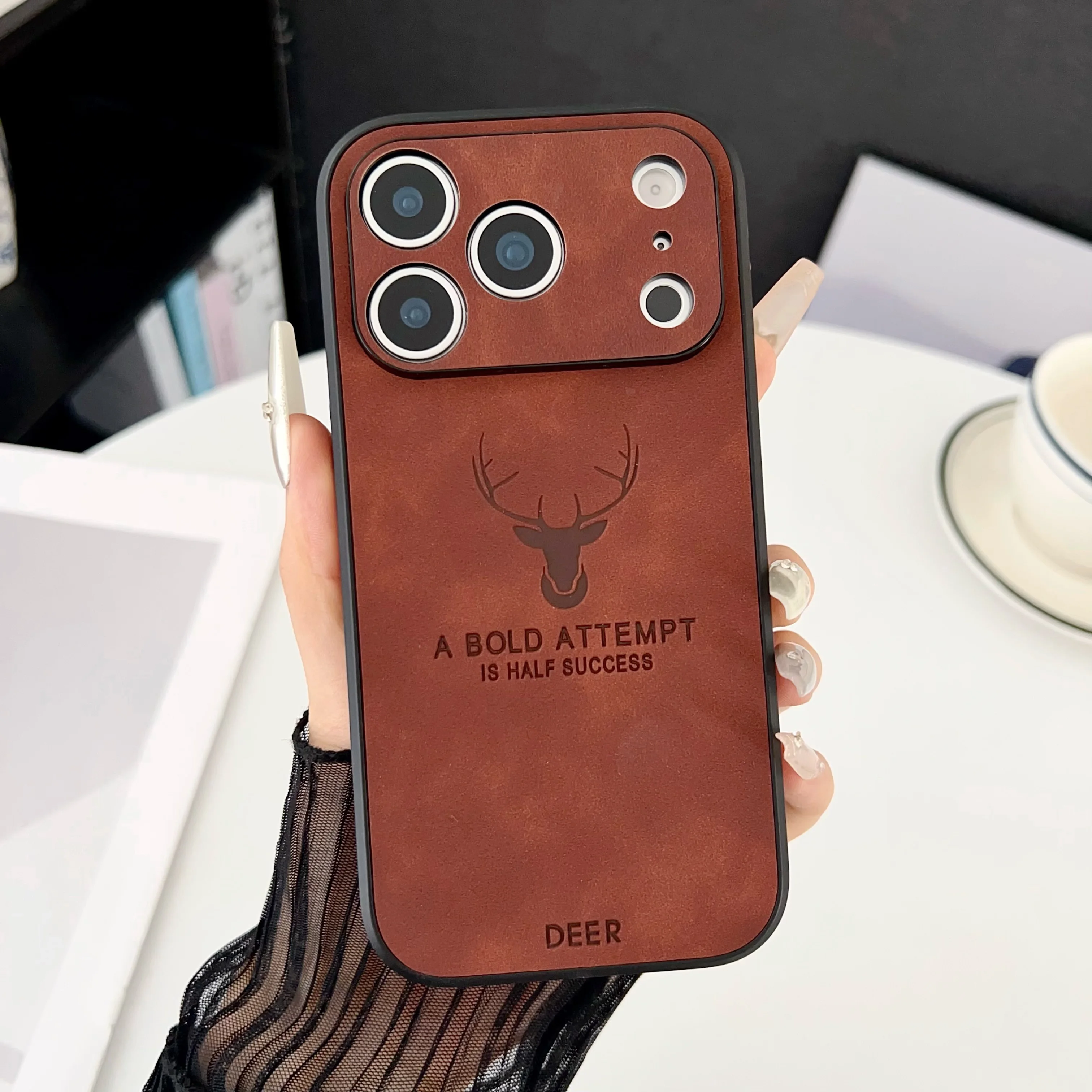 Funda magnética con textura de cuero con cabeza de ciervo para iPhone 17 Air 16 15 14 Plus 13 12 11 Pro Max mate para funda protectora Magsafe