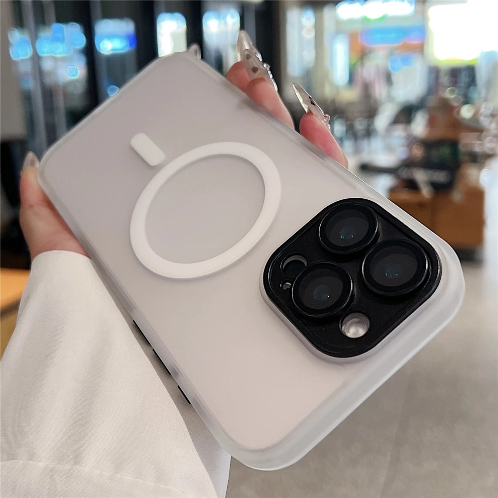 Comprar Funda magnética translúcida mate a prueba de golpes para Magsafe iPhone 14 13 Pro Max 14 Plus 14Pro 13Pro 13 Mini cubierta de carga inalámbrica