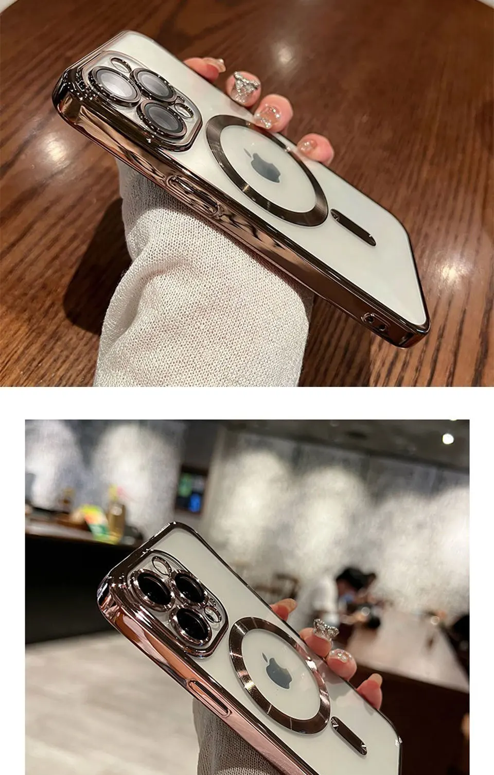 Funda magnética transparente chapada de lujo para Magsafe para iPhone 15, 14, 13, 12, 11 Pro Max Plus, funda magnética de carga inalámbrica a prueba de golpes