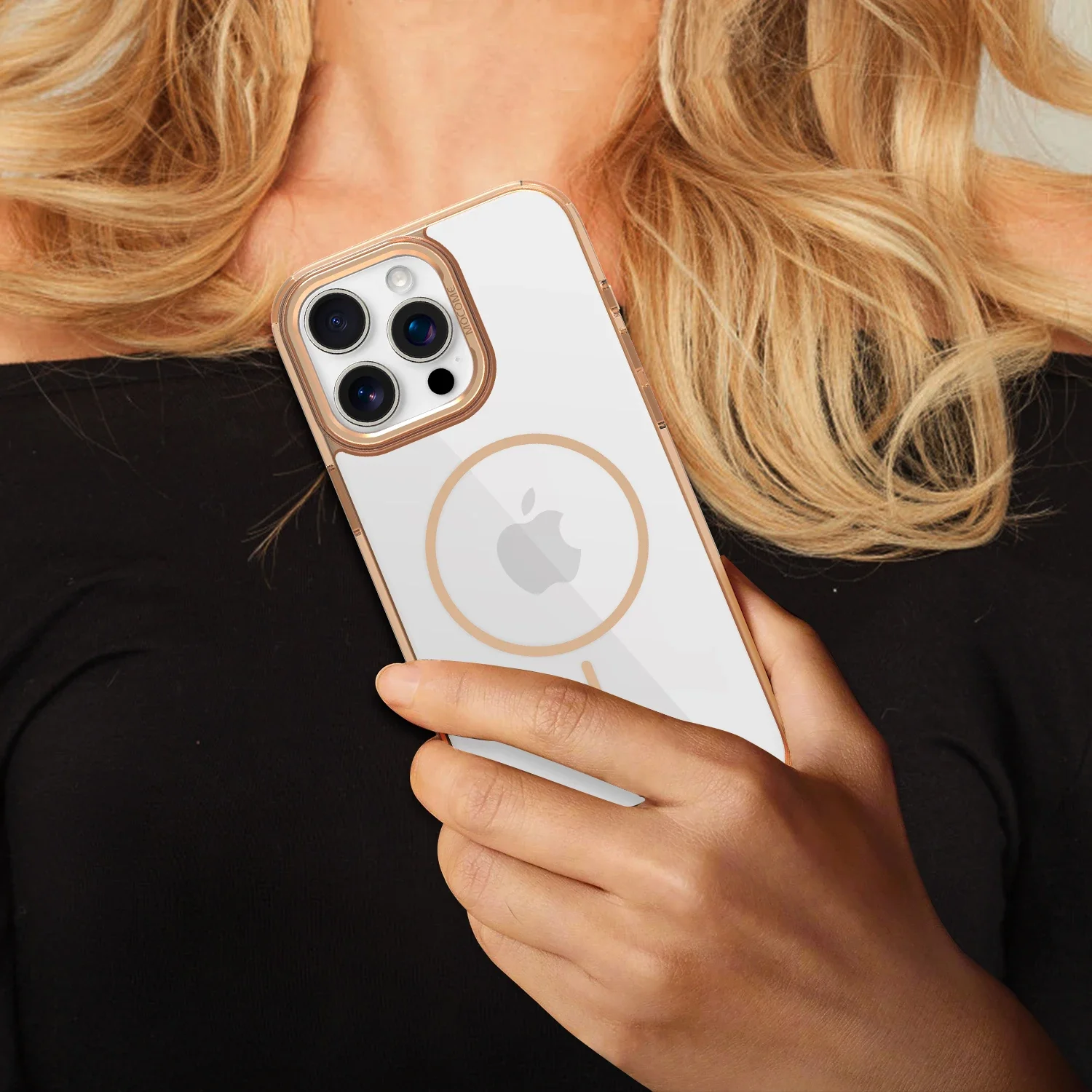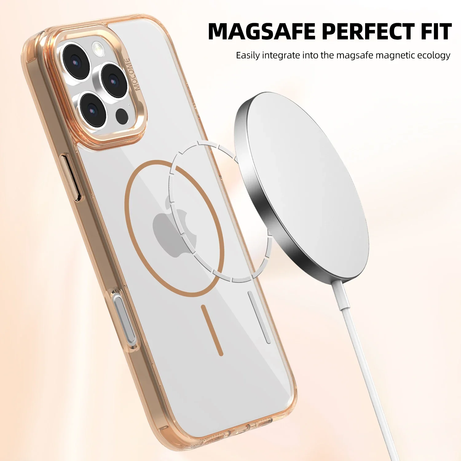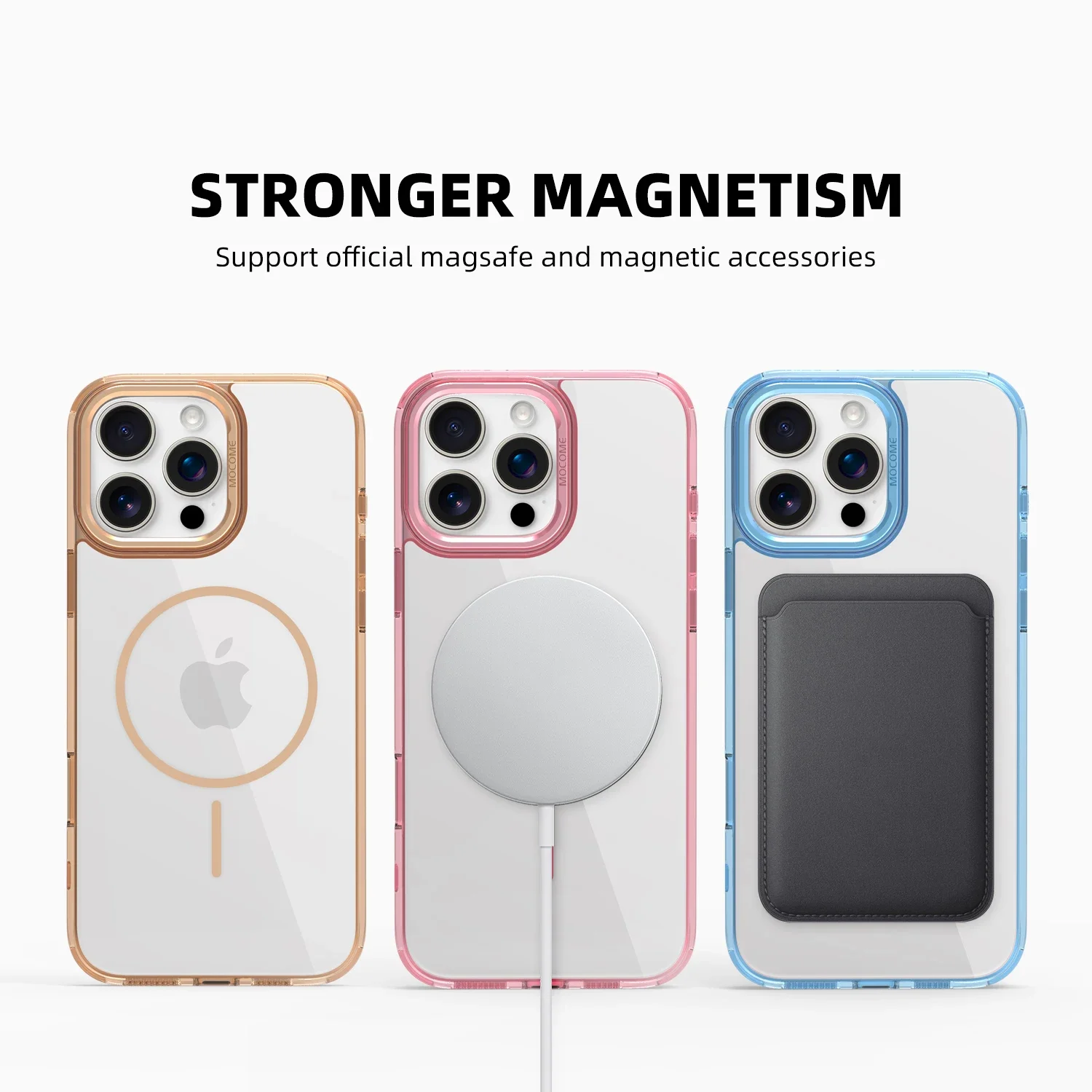 Comprar Funda magnética transparente de lujo para iPhone 16Pro Max 16E 15 14 13 12 11 para cubierta delgada trasera de carga inalámbrica Magsafe
