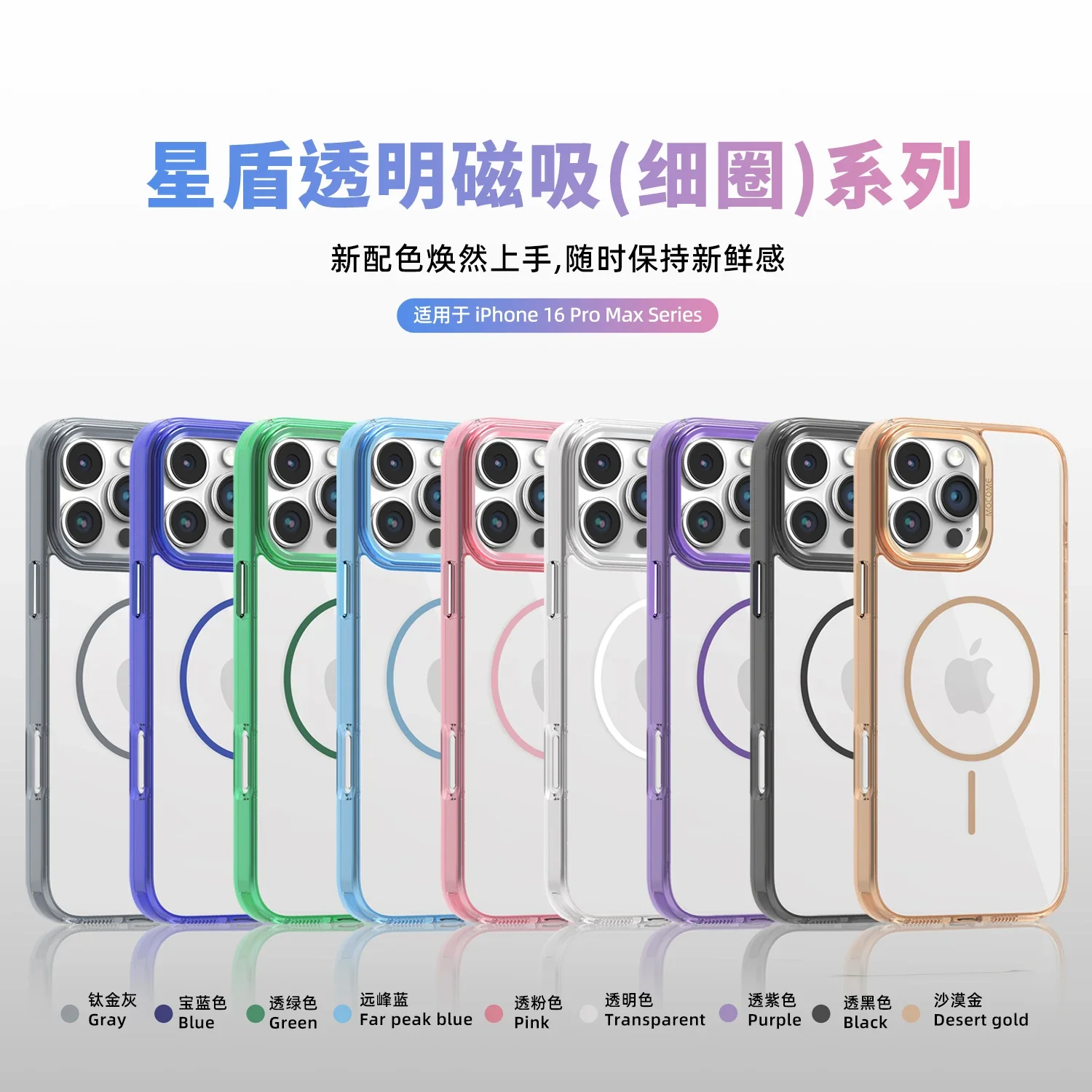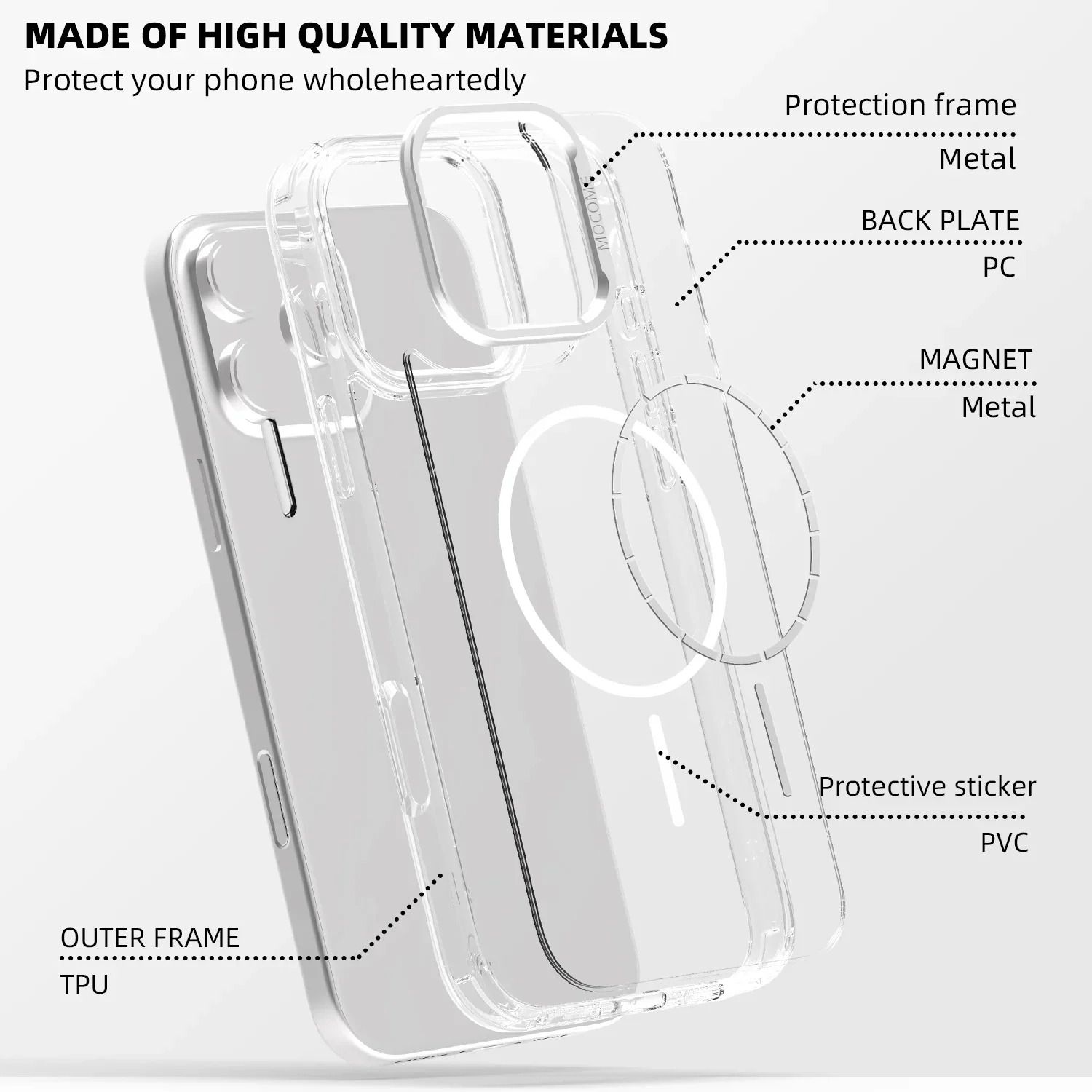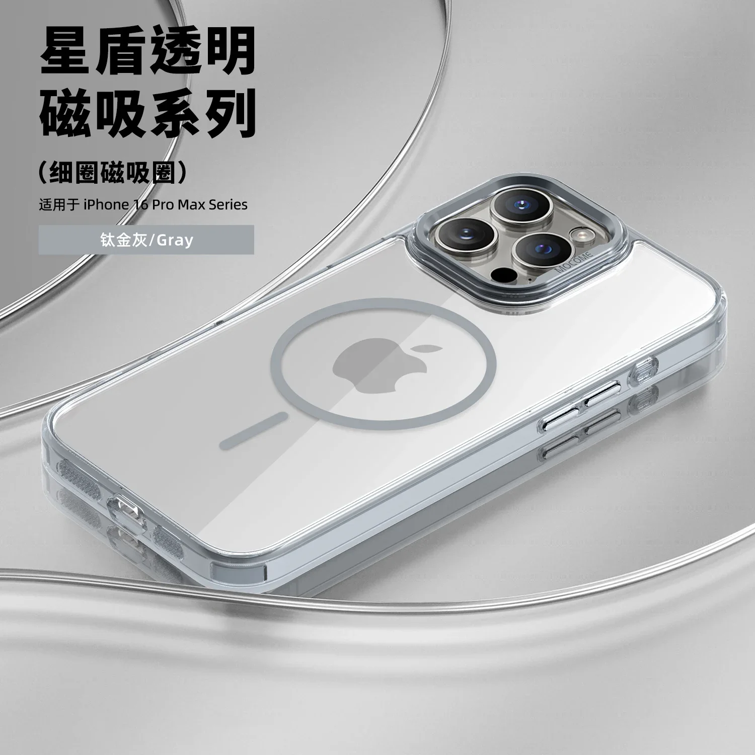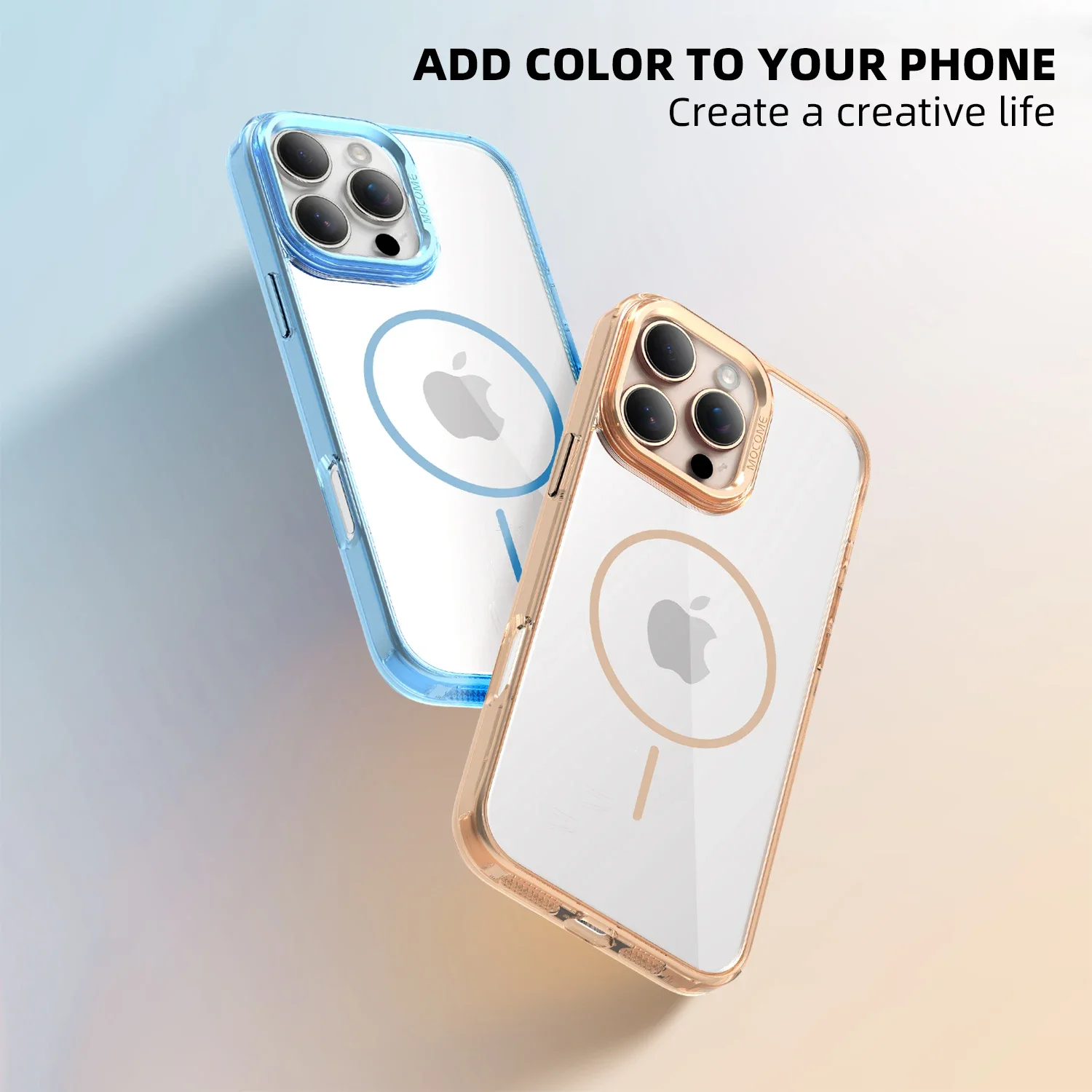 Comprar Funda magnética transparente de lujo para iPhone 16Pro Max 16E 15 14 13 12 11 para cubierta delgada trasera de carga inalámbrica Magsafe