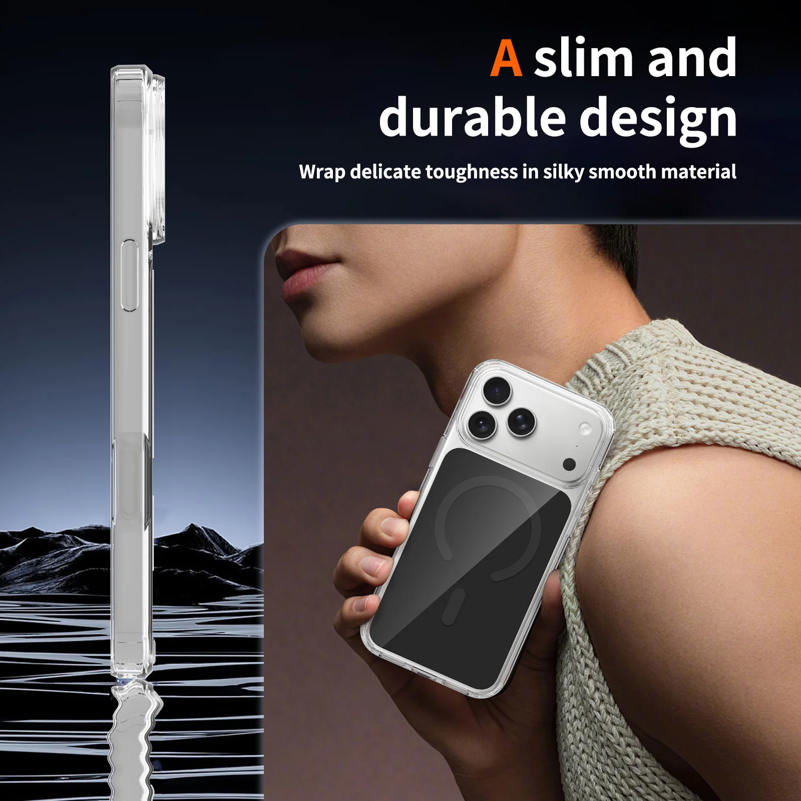 Funda Magnética Transparente de Lujo con Sensación de Piel para iPhone 17 Pro Max 16 Plus 15 14 13 12, Compatible con Magsafe, Ajuste Delgado