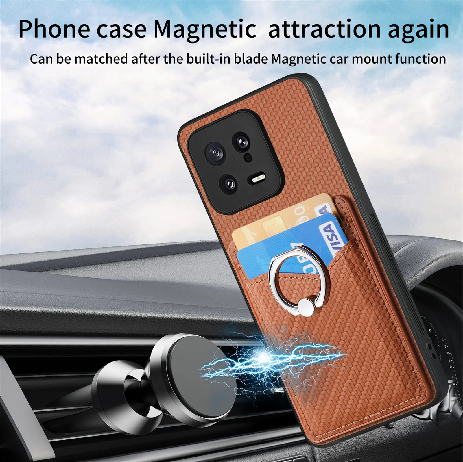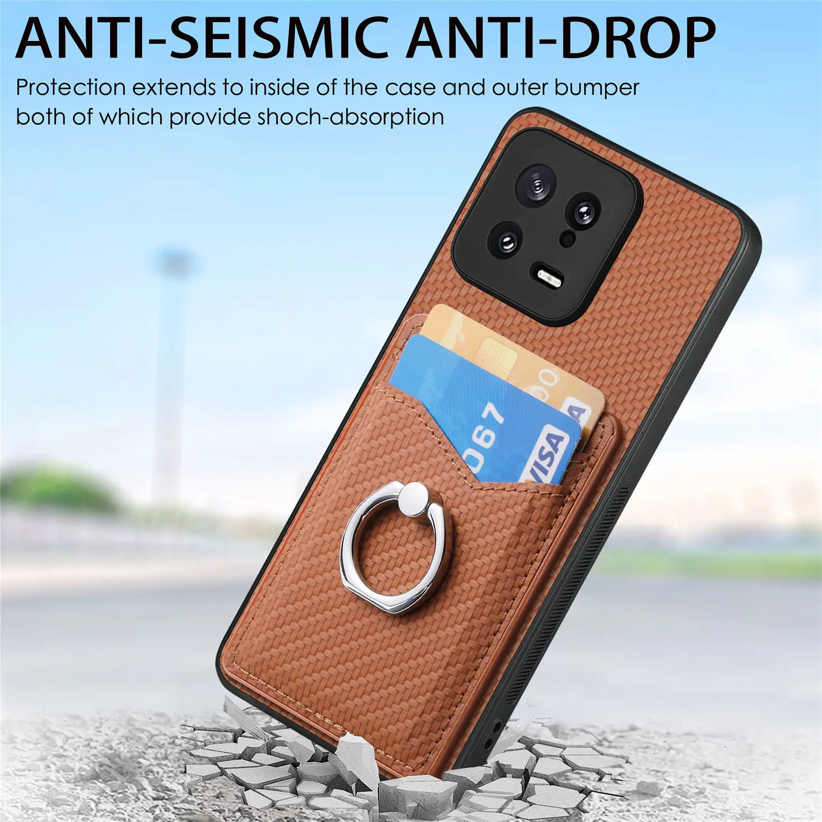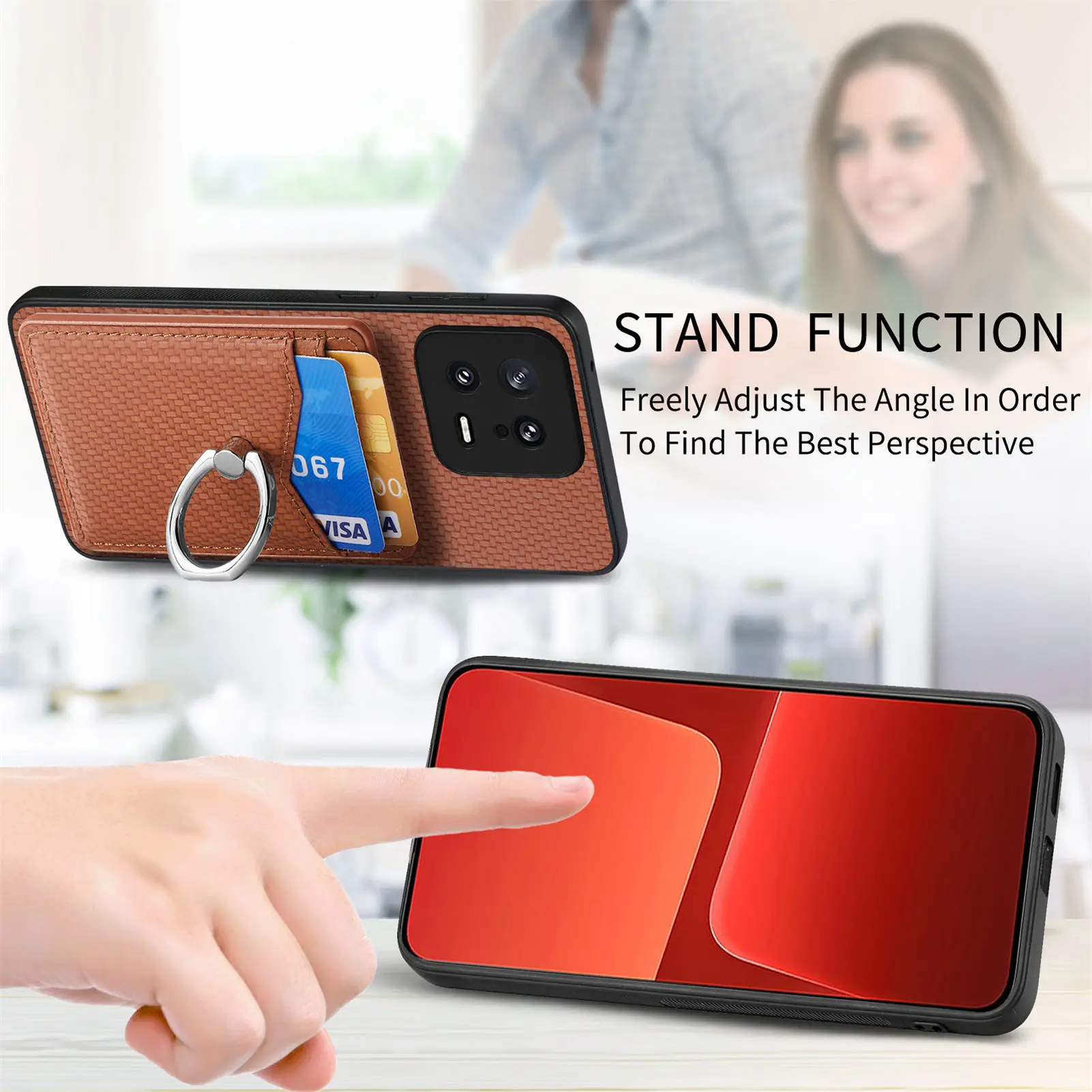 Funda tipo billetera magnética Solt con tarjeta Vertical para Xiaomi Redmi Note 12 Pro Plus 11 10 12T soporte de anillo fibra de carbono POCO X5 X4 5G cubierta