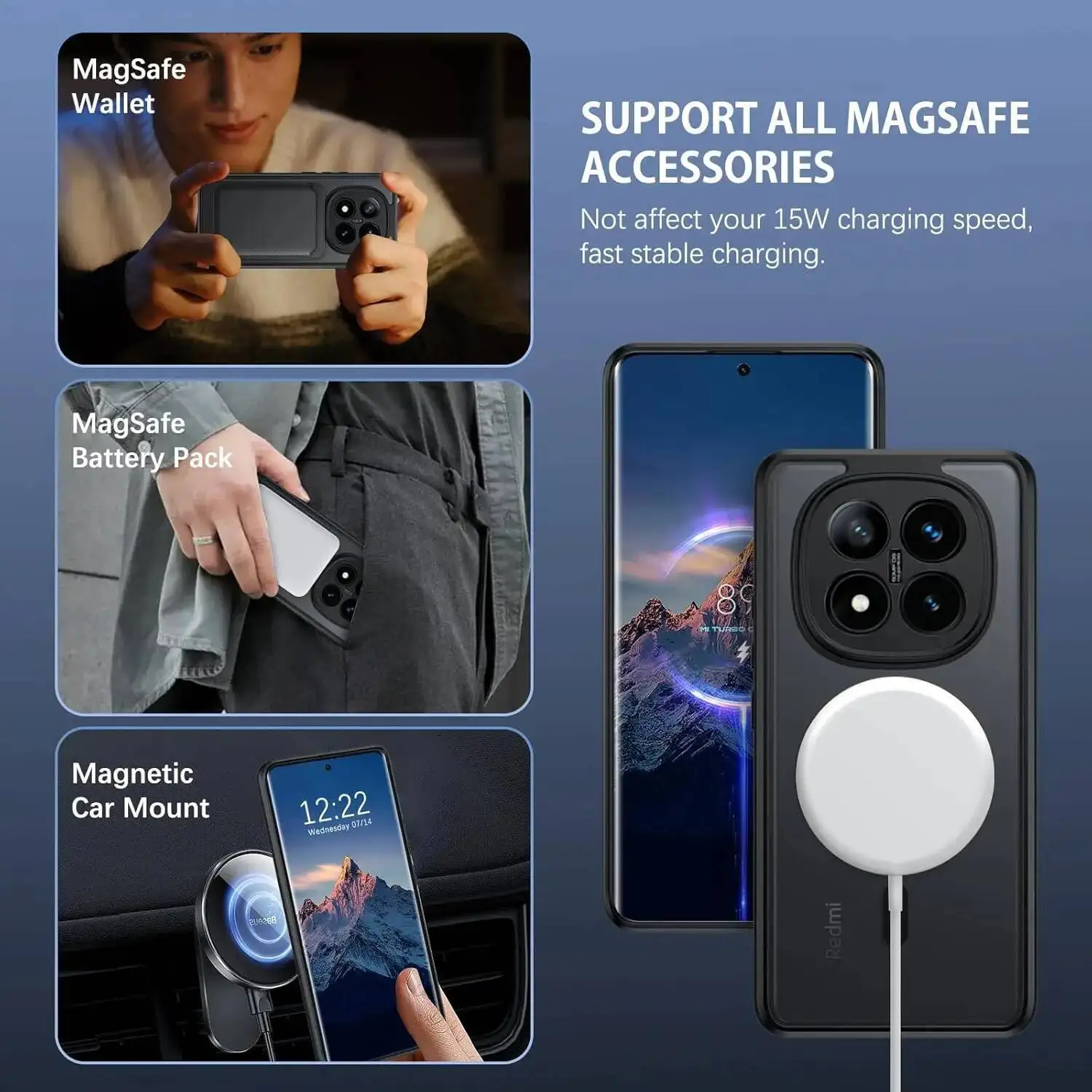 Funda para Magsafe carga inalámbrica cubierta translúcida trasera de plástico duro para Xiaomi Redmi Note 14 Pro Plus 5G