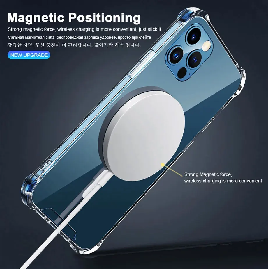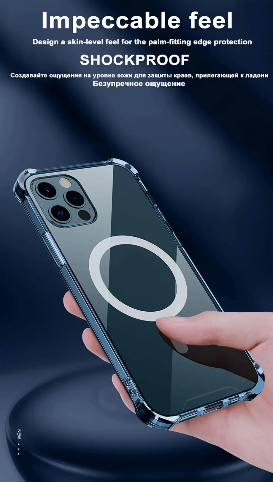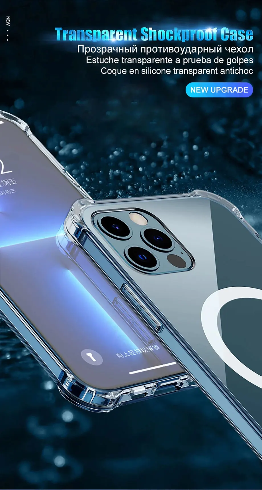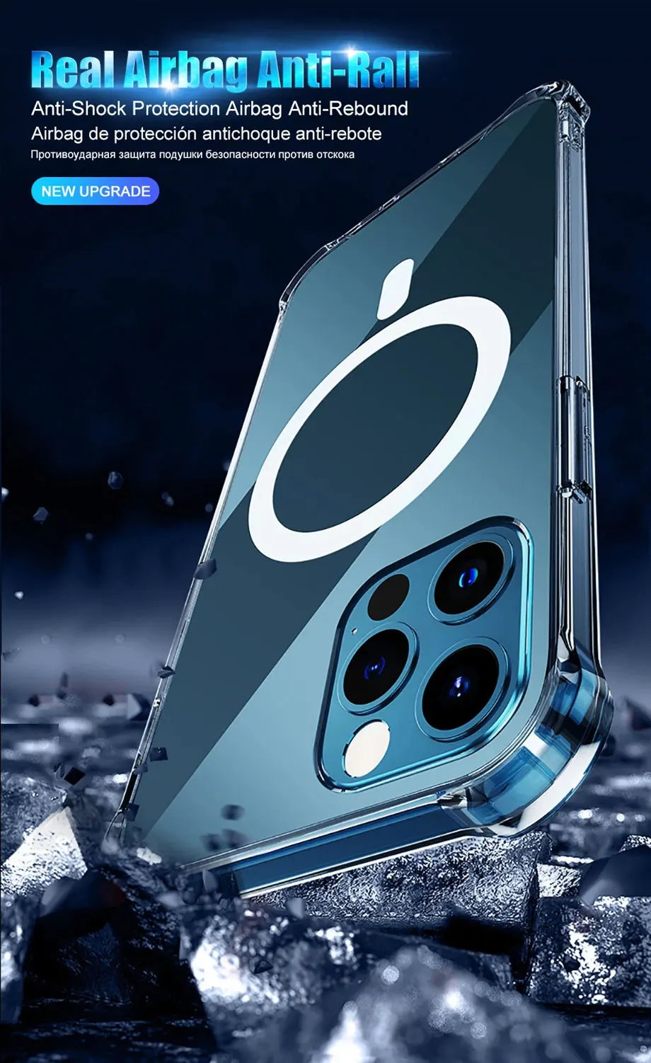 Funda Magsafe magnética de lujo con carga inalámbrica para iPhone 17 16 15 14 13 mini 12 11 Pro Max Plus 16e Air cubierta transparente a prueba de golpes