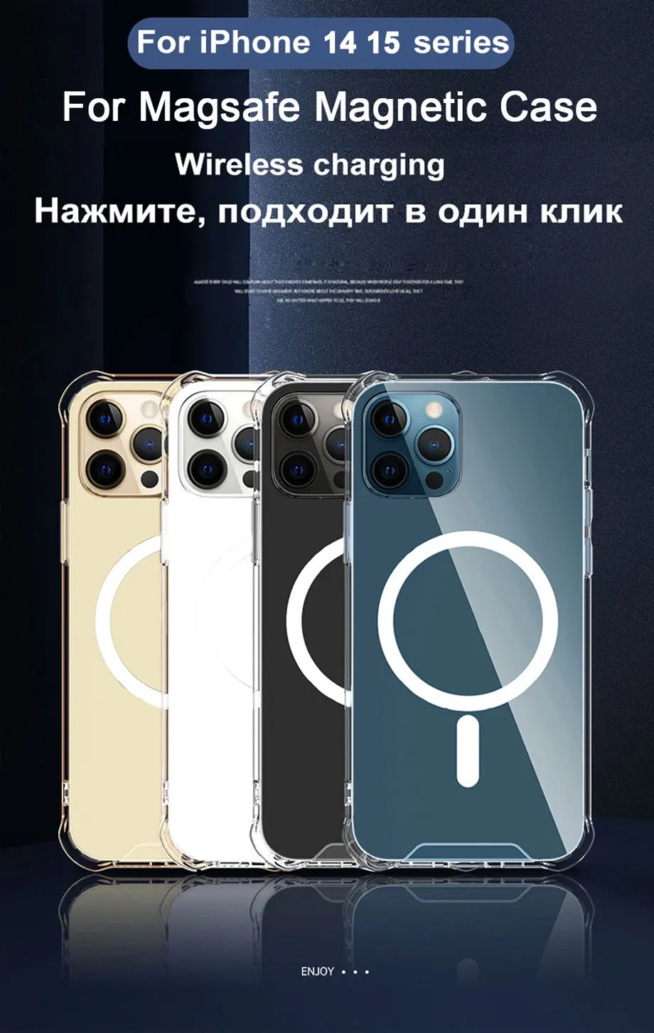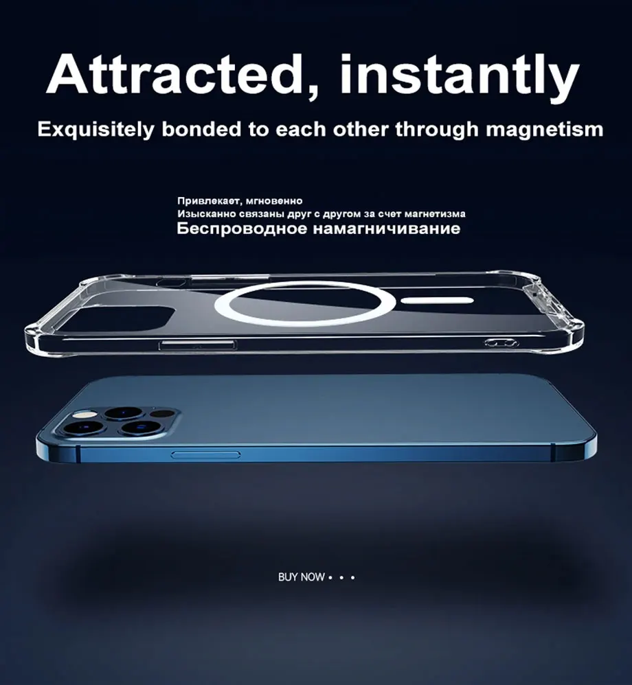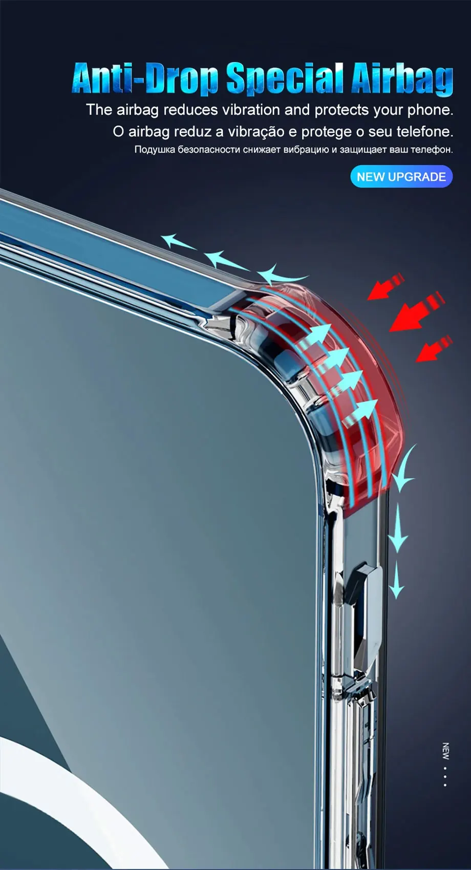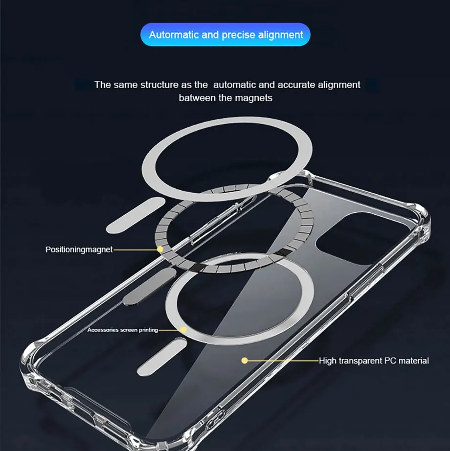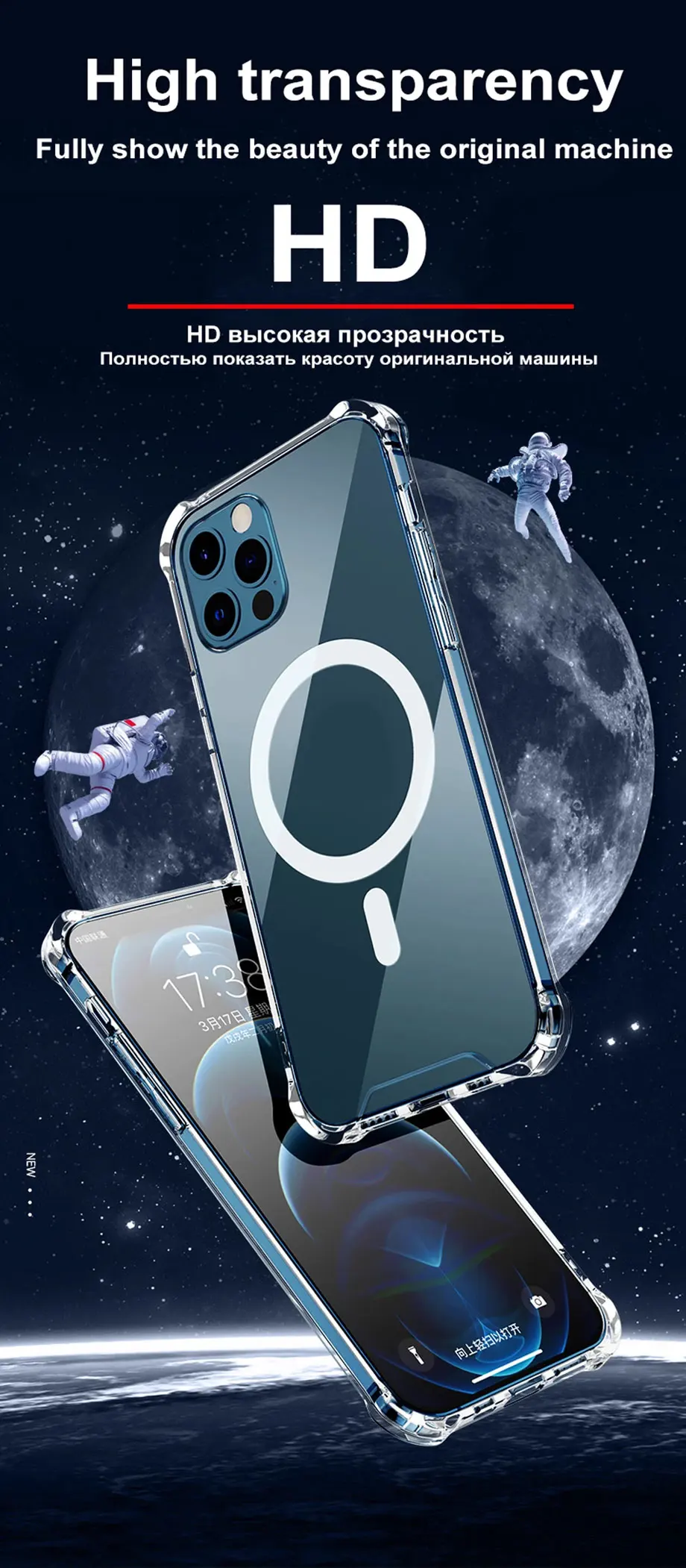 Funda Magsafe magnética de lujo con carga inalámbrica para iPhone 17 16 15 14 13 mini 12 11 Pro Max Plus 16e Air cubierta transparente a prueba de golpes