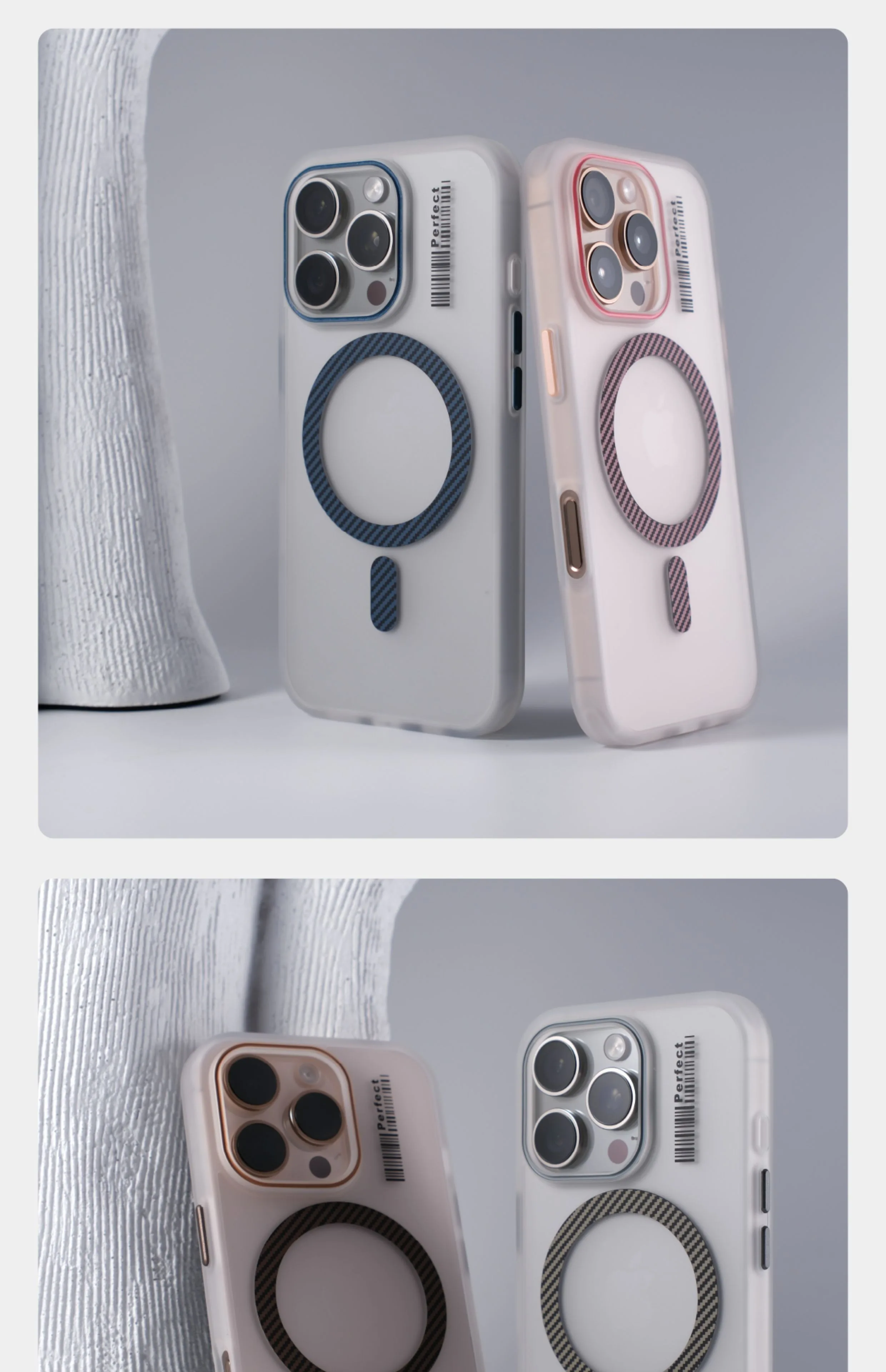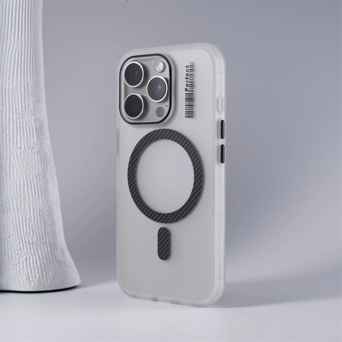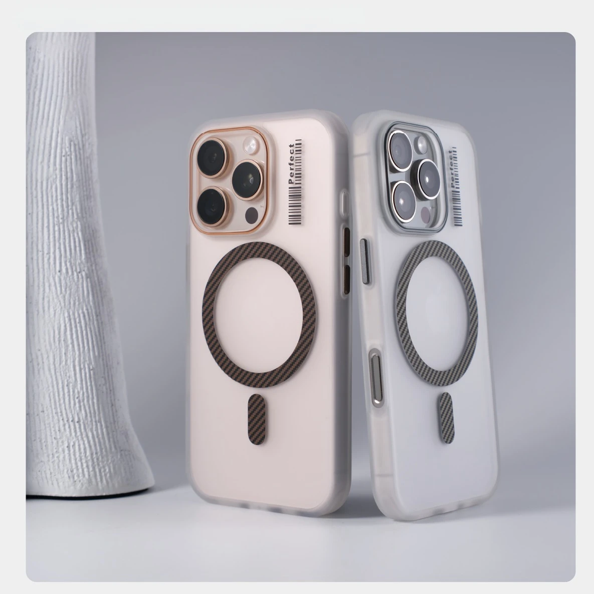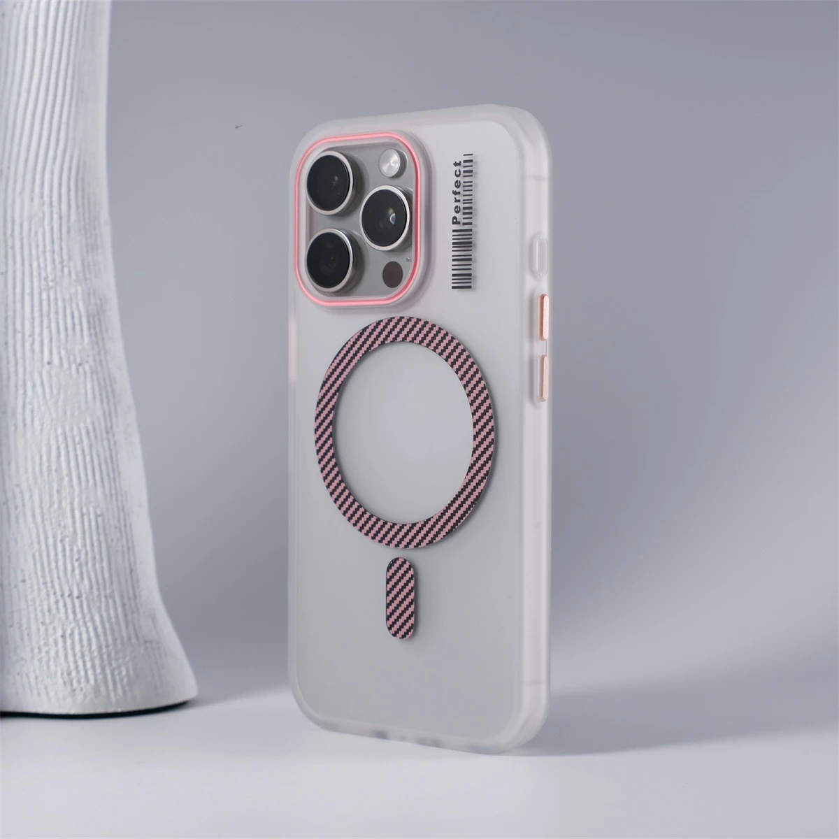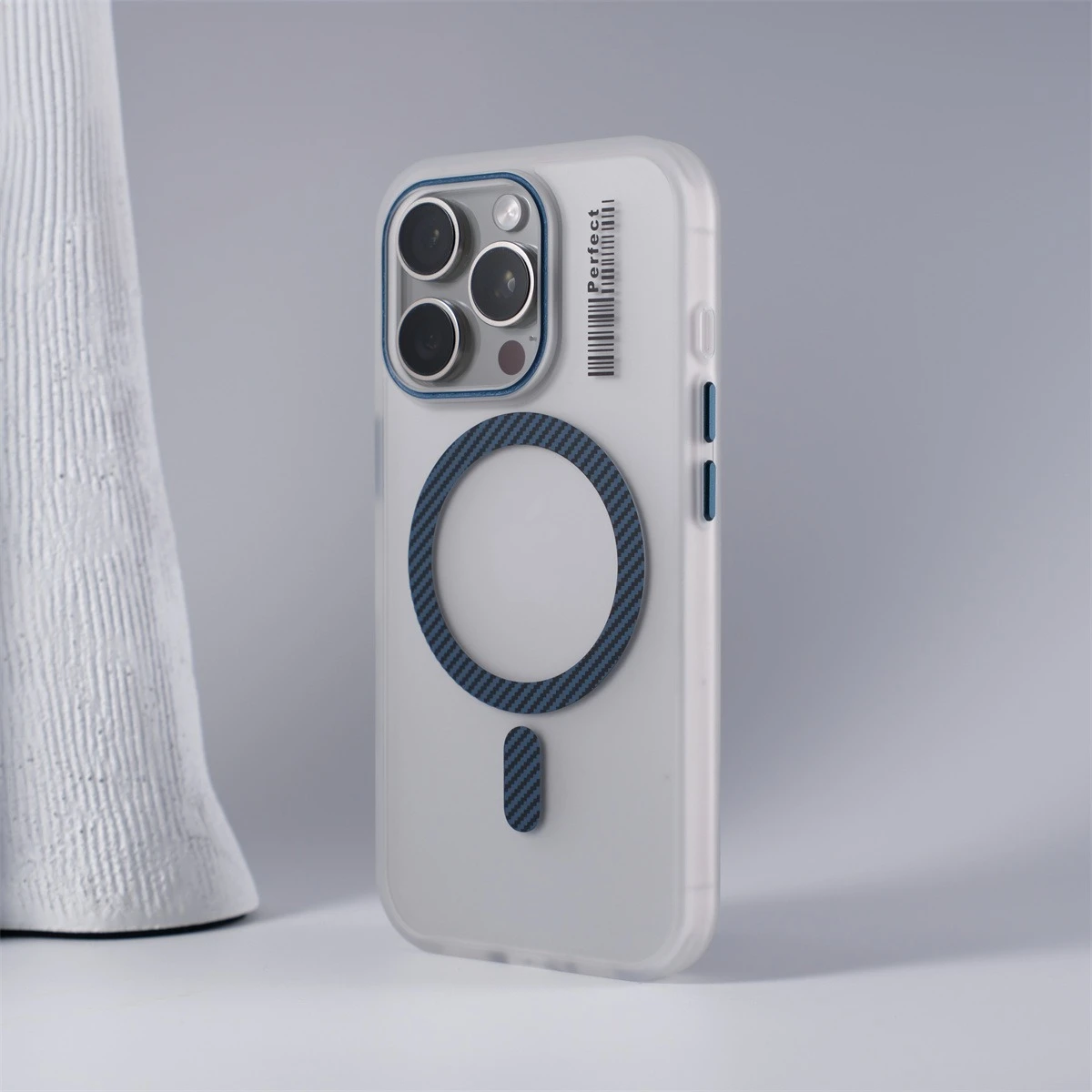 Comprar Funda Magsafe circular de fibra de carbono transparente de lujo para iPhone 16 Pro Max 14 15 Plus cubierta mate para iPhone 13 11 12 15 Pro Max