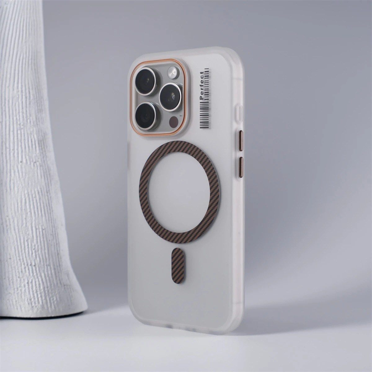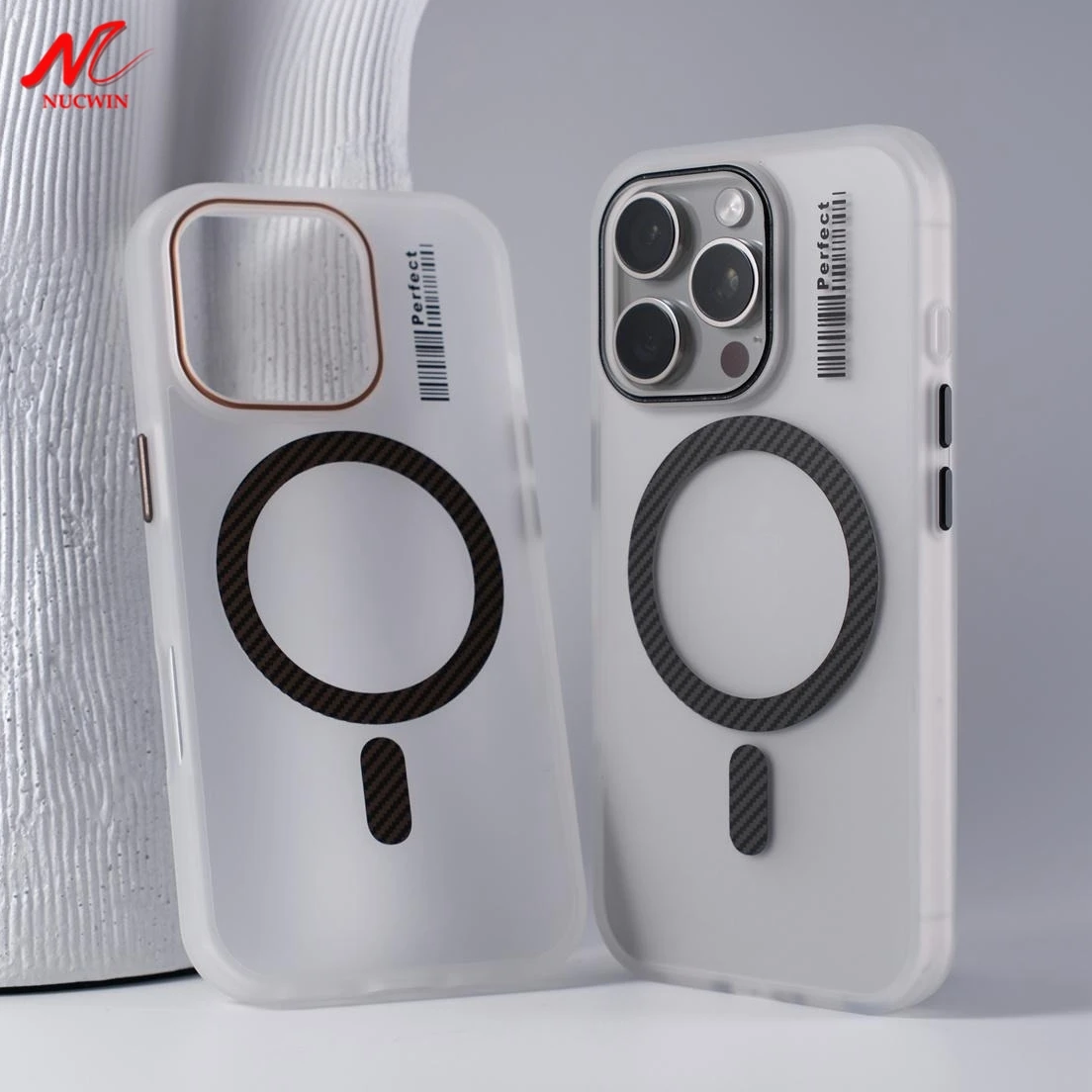 Comprar Funda Magsafe circular de fibra de carbono transparente de lujo para iPhone 16 Pro Max 14 15 Plus cubierta mate para iPhone 13 11 12 15 Pro Max