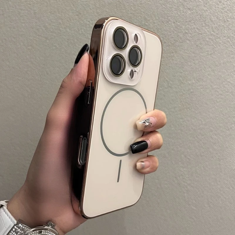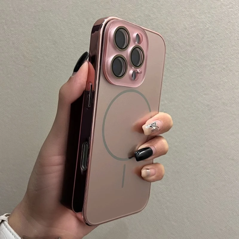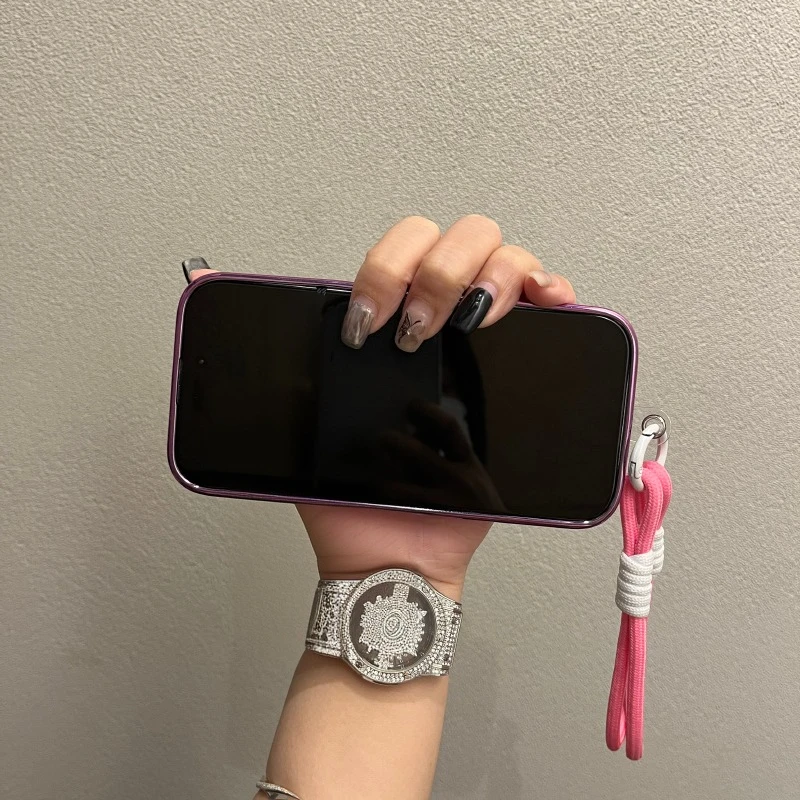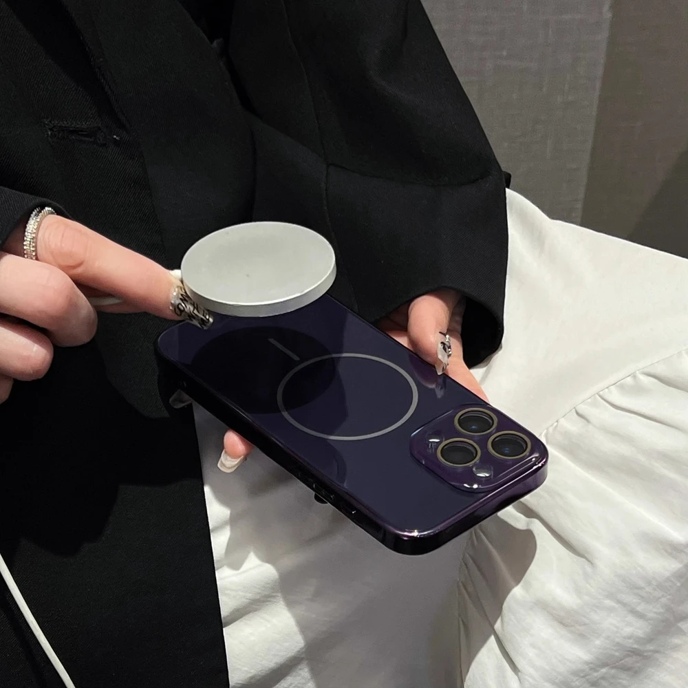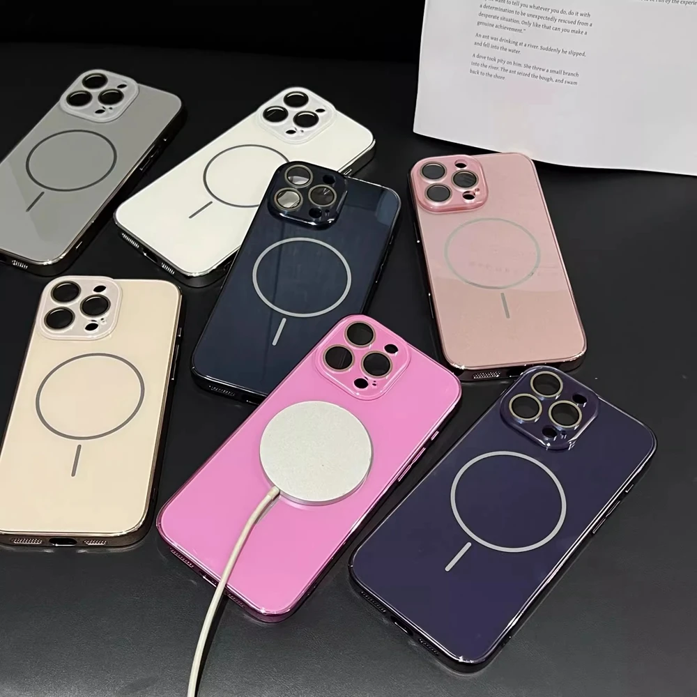 Comprar Funda Magsafe de cristal con correa para la muñeca para iPhone 16 15 14 13 12 11 Pro Max 16Pro, cubierta de carga magnética a prueba de golpes con revestimiento de lujo
