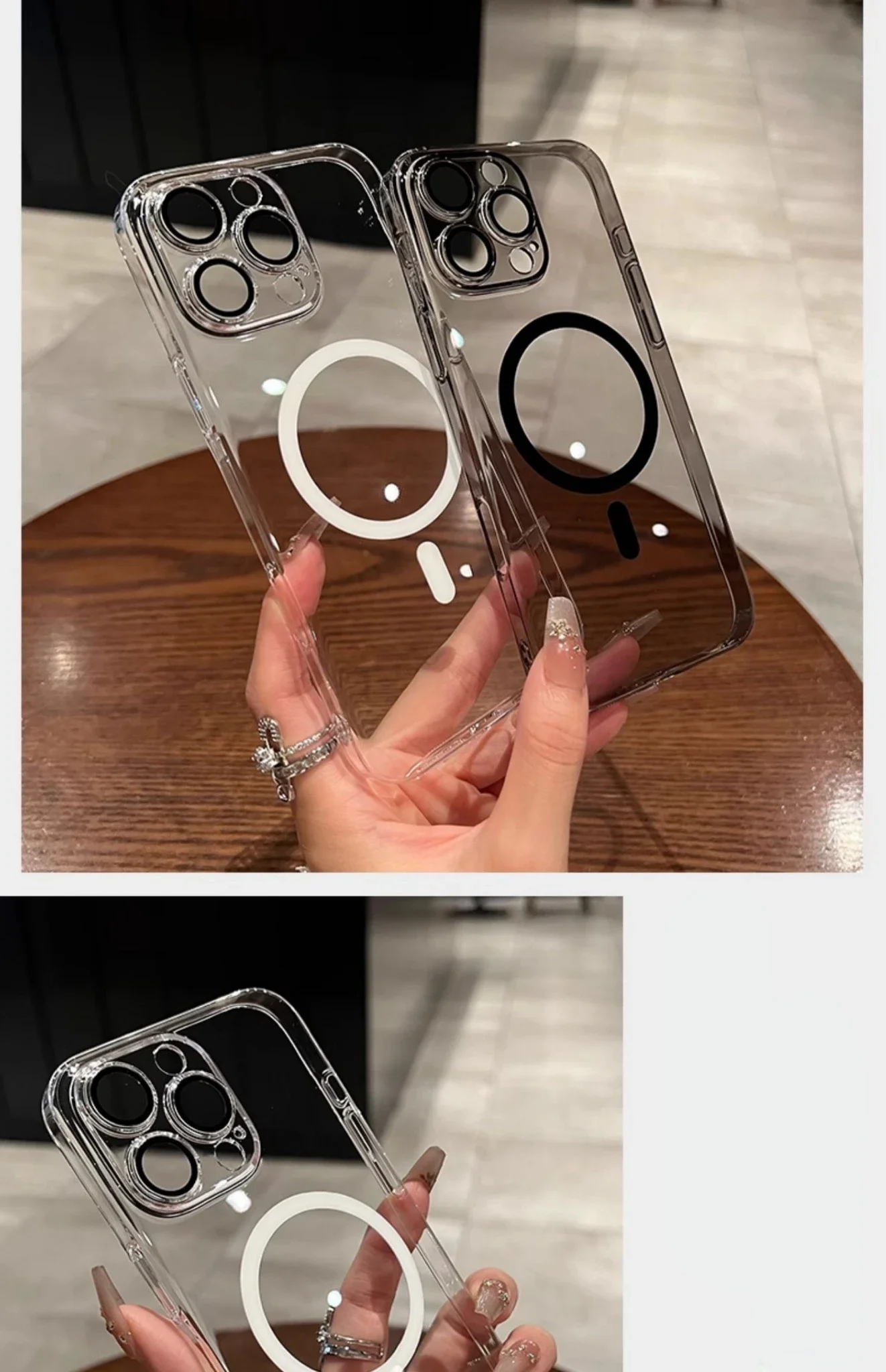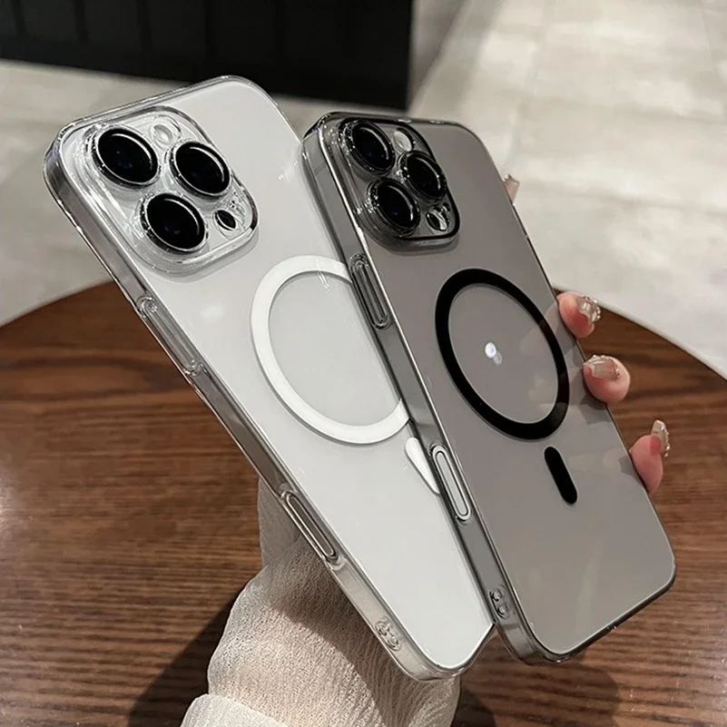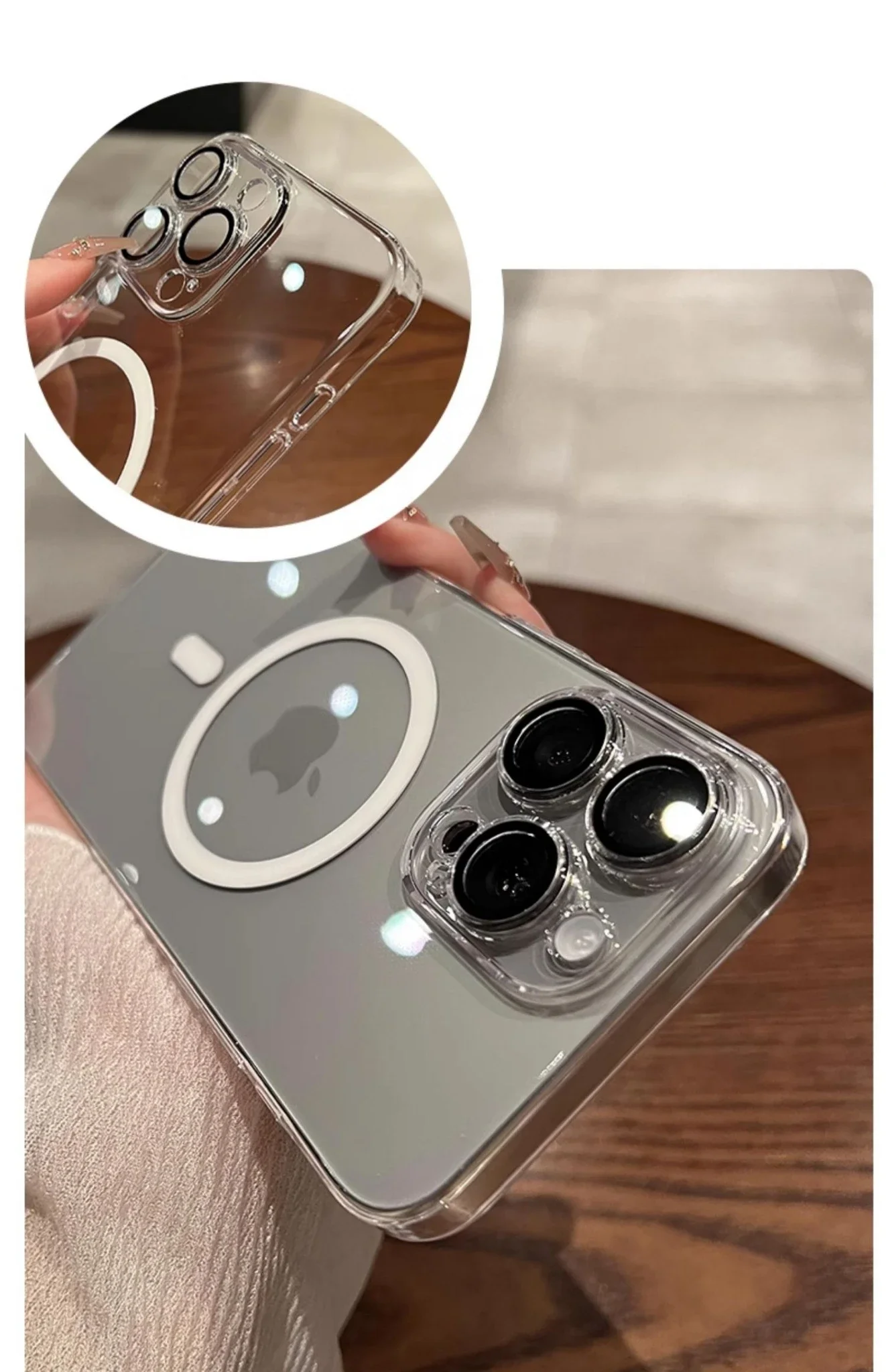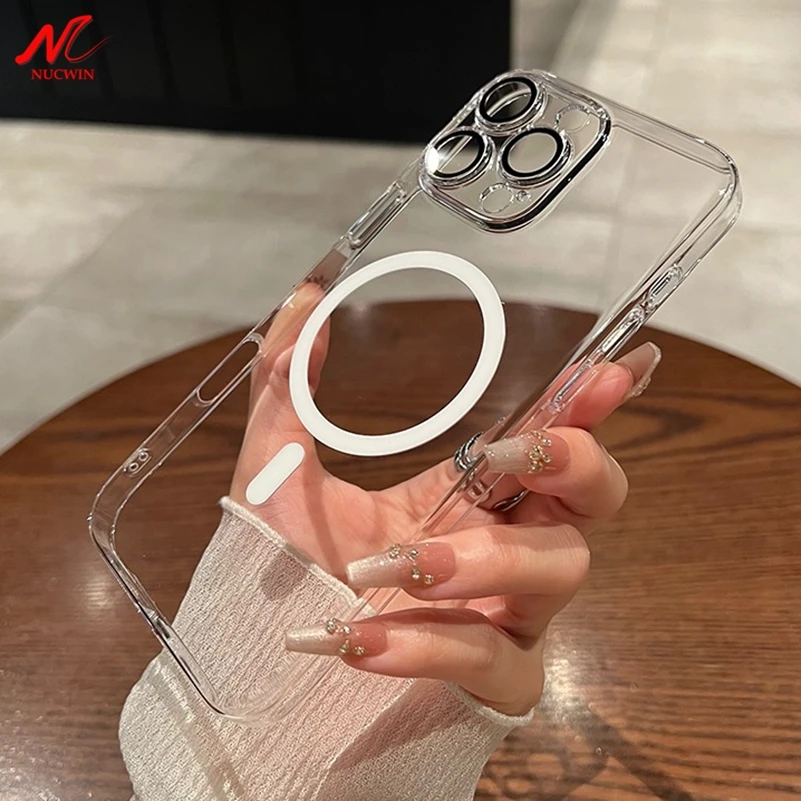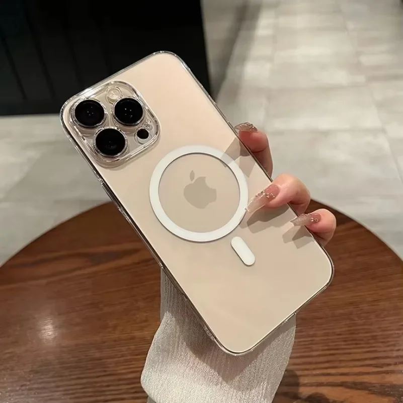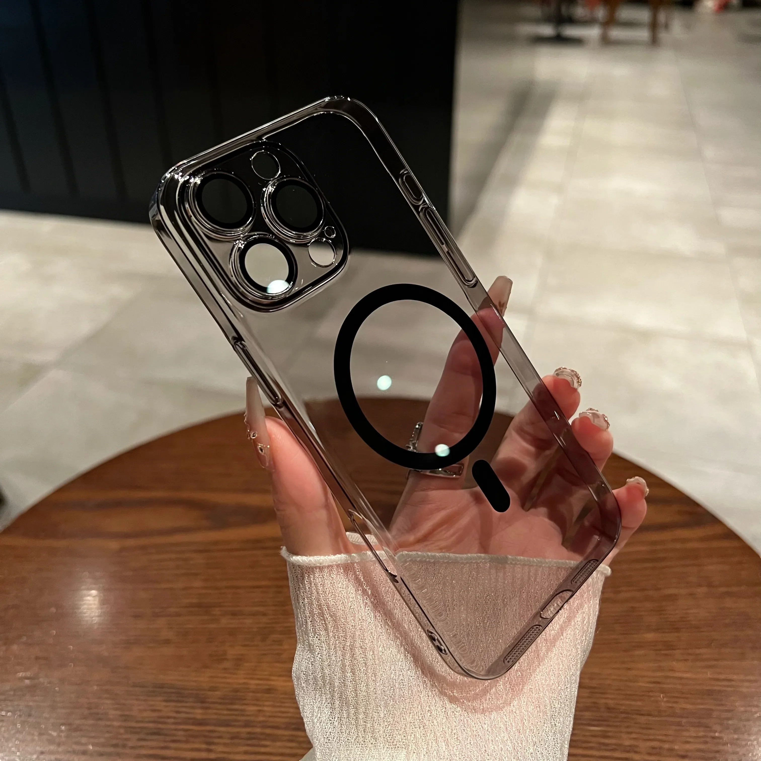 Comprar Funda Magsafe de cristal ultrafina para iPhone 16, 15, 12, 14, 13, Pro Max, 16 Plus, 13Pro, cubierta de carga inalámbrica con Protector de lente