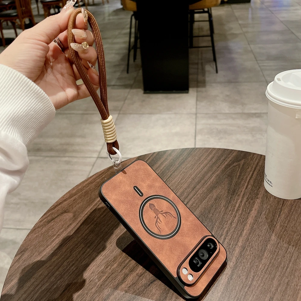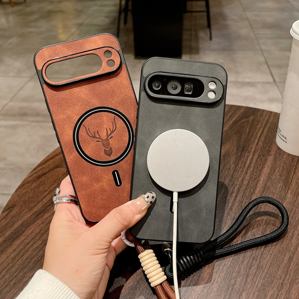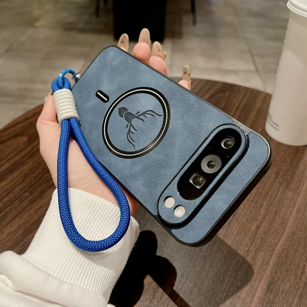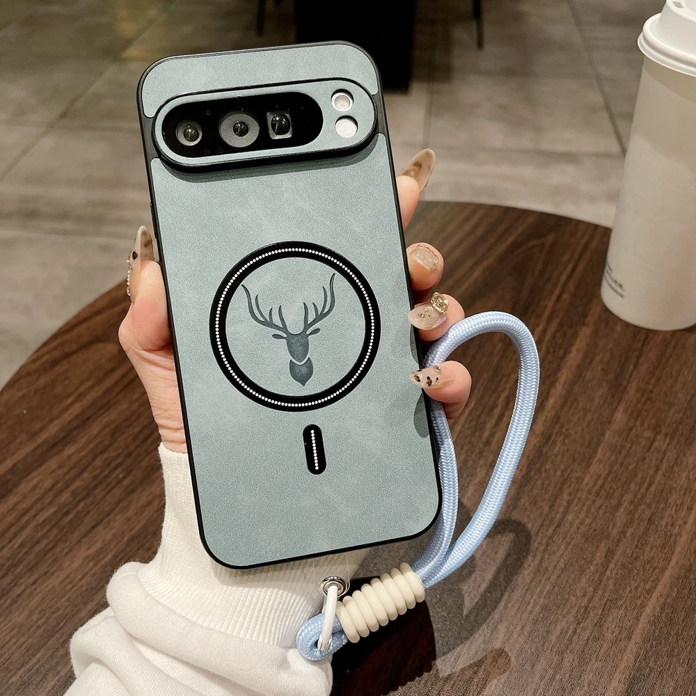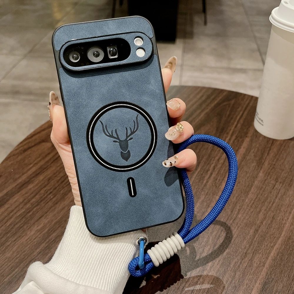 Comprar Funda Magsafe de cuero con ciervo de dibujos animados para Google Pixel 9A 9 Pro XL 8 7 Pro, funda de carga inalámbrica con cordón para pulsera para Pixel 8A 7A