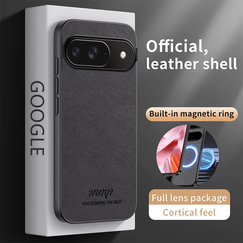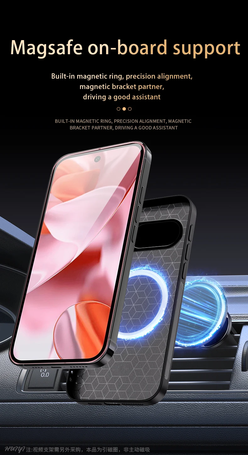 Comprar Funda Magsafe de cuero para Google Pixel 9 Pro XL, soporte magnético para coche, funda dura de silicona con carga inalámbrica para teléfono GooglePixel9ProXL