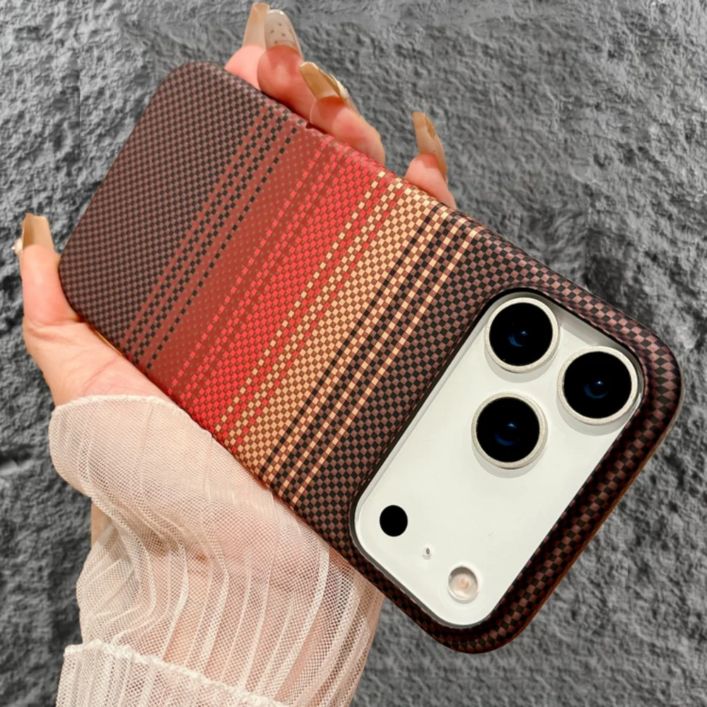 Funda de fibra de carbono mate para Magsafe para iPhone 17 Air 16 15 14 Plus 13 12 Pro Max 17Pro cubierta de armadura brillante de piel con carga inalámbrica